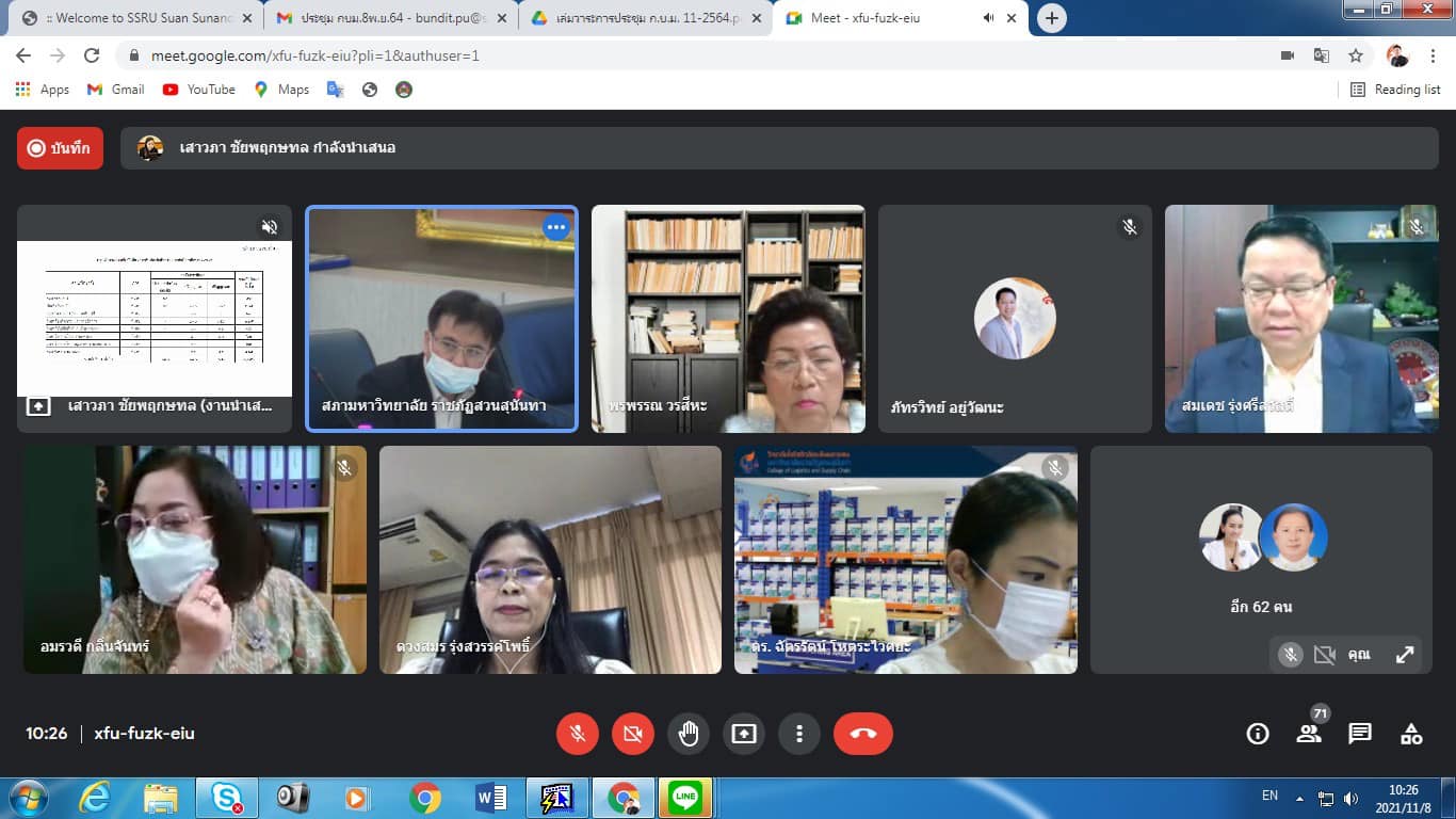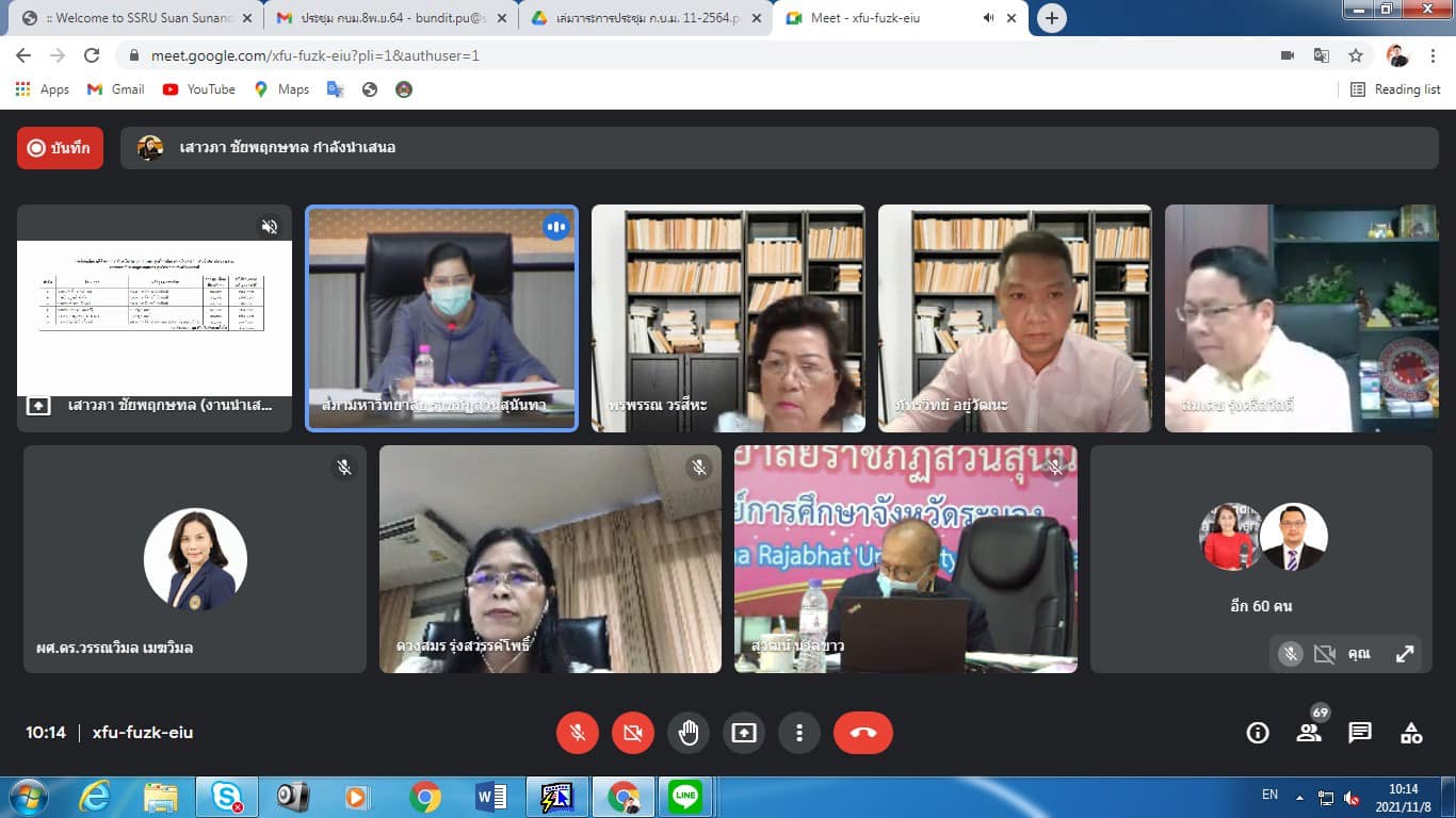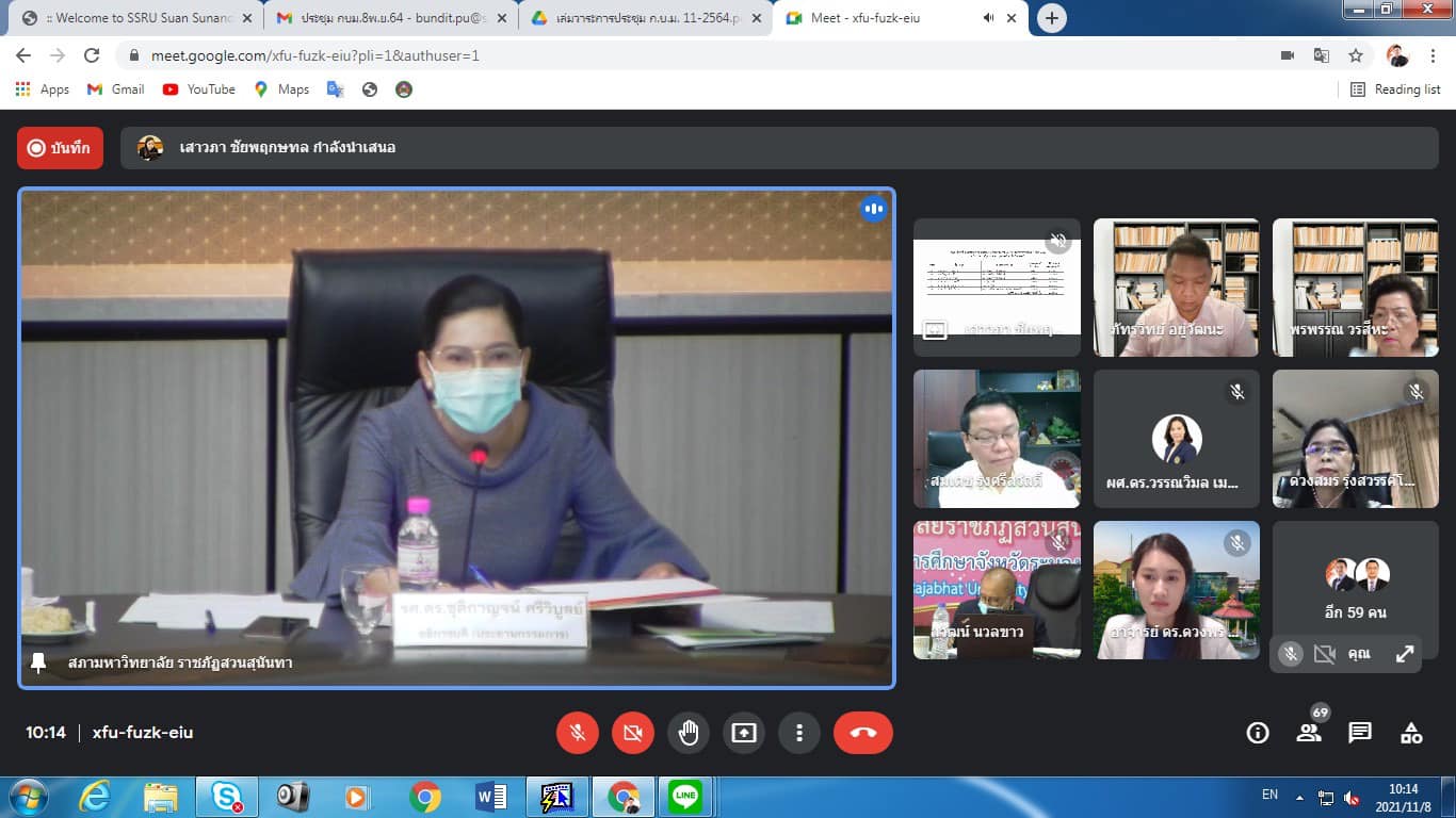 Monday, November 8, 2021 Assoc.Prof.Dr.Bundit Pungnirund, Dean of the College of Innovation and Management Attended the Executive Committee Meeting of Suan Sunandha Rajabhat University No. 11/2021, with Assoc.Prof.Dr.Chutikarn Sriviboon, President of Suan Sunandha Rajabhat University, Chaired the meeting at the Suan Sunandha Rajabhat University Council Meeting Room, Building 31, 5th Floor, and held an online meeting.