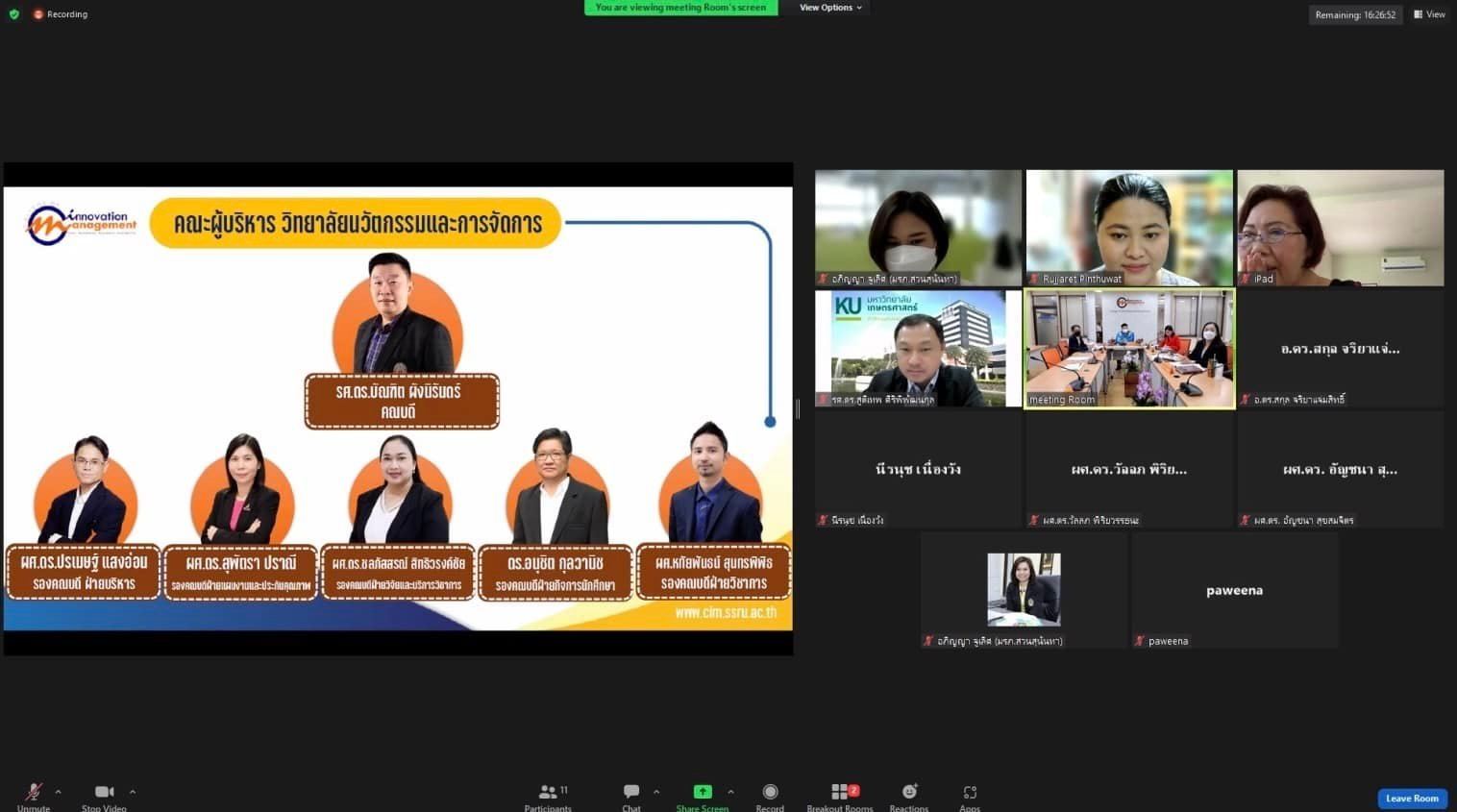 Thursday, August 18, 2022, 8:00 a.m. – 4:30 p.m. College of Innovation and Management, Suan Sunandha Rajabhat University. Receive internal educational quality assessment at the faculty level for the academic year 2021. At the meeting room, 2nd floor, Building 37 . and through the online system Zoom Meeting. With Associate Professor Dr. Bundit Phangnirand, Dean of the College of Innovation and Management. Welcome remarks to the Internal Education Quality Assessment Committee.