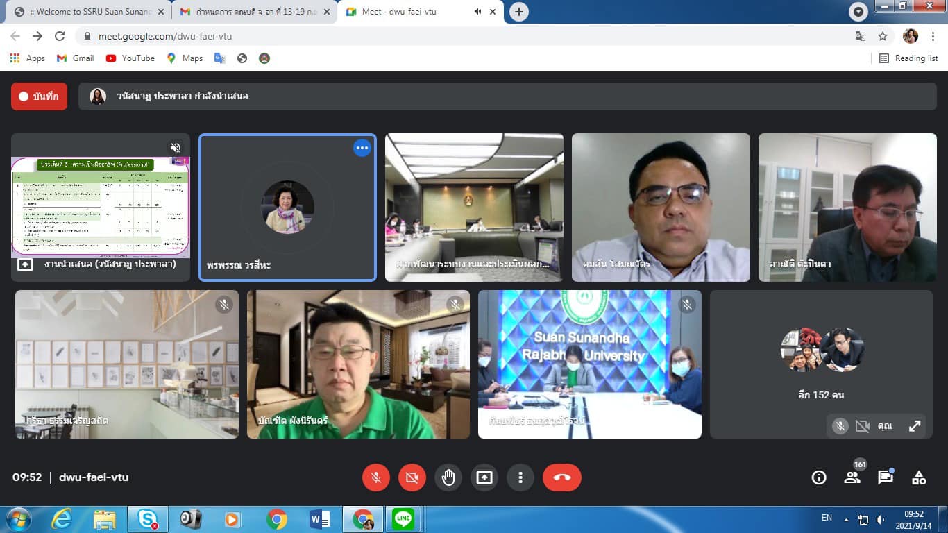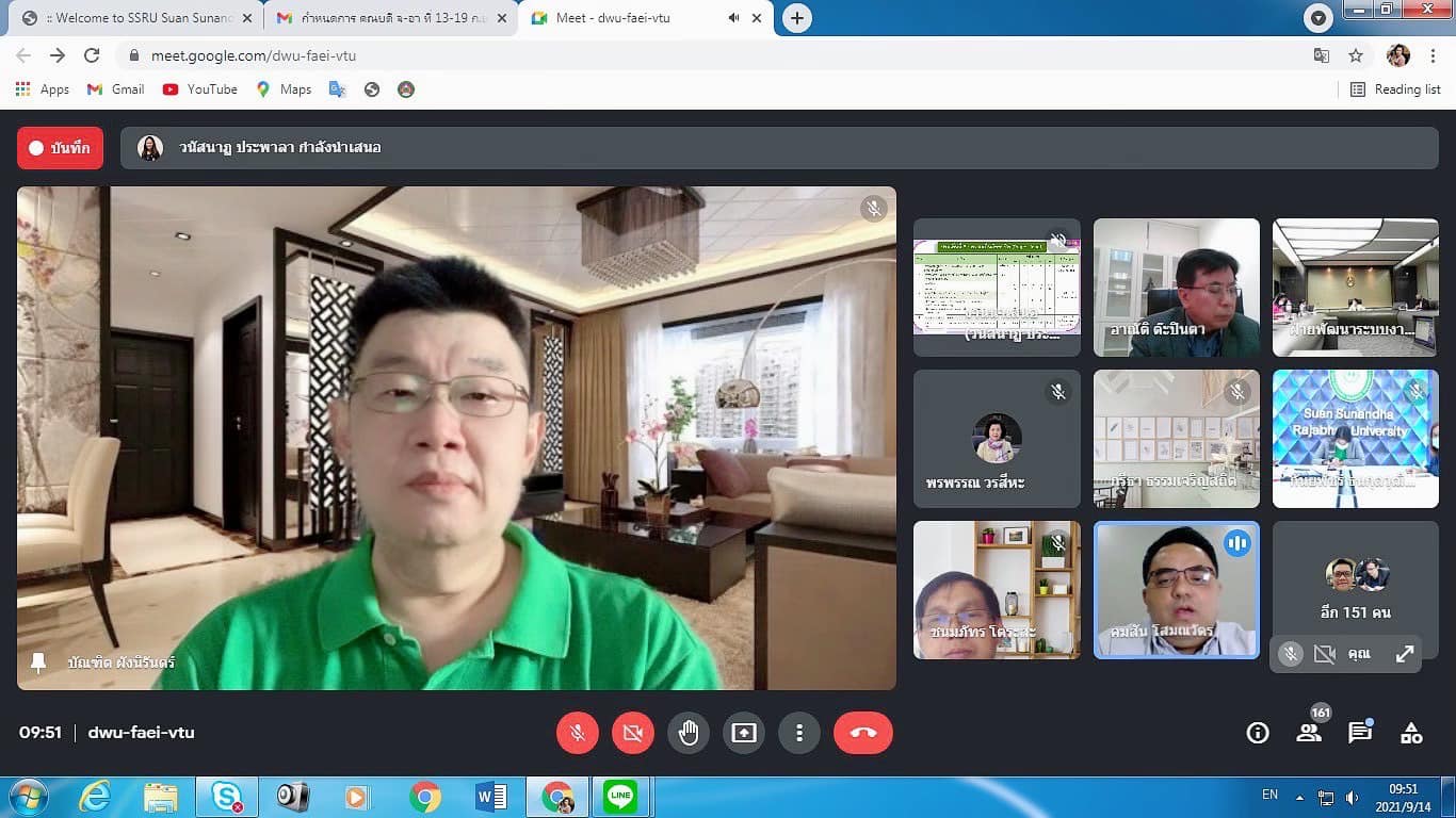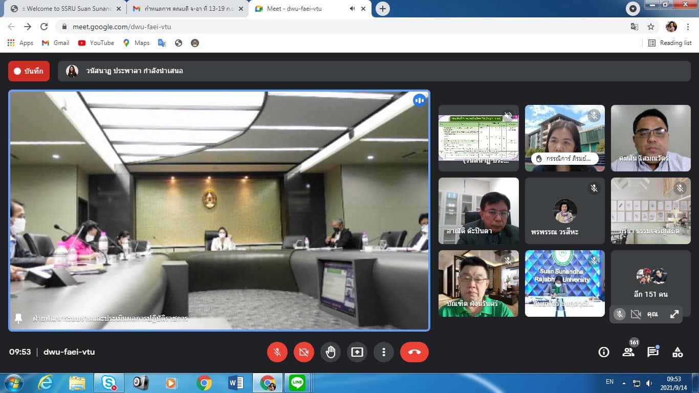 14 September 2021 Assoc. Prof. Dr. Bundit Phangnirand, Dean of the College of Innovation and Management attended the meeting to clarify the framework for evaluation of government performance Fiscal Year 2022 with Associate Professor Dr. Chutikarn Sriwiboon, President of Suan Sunandha Rajabhat University Chair the meeting in an online format.