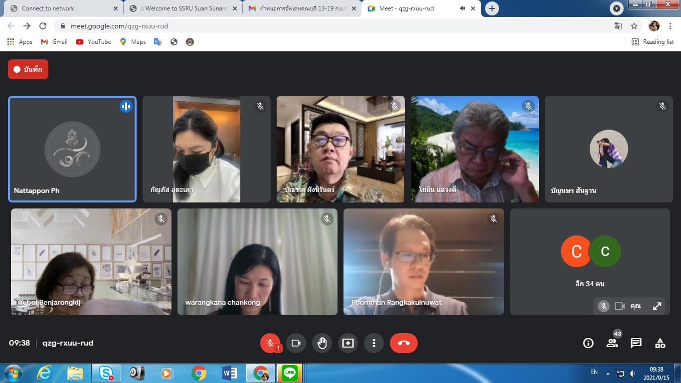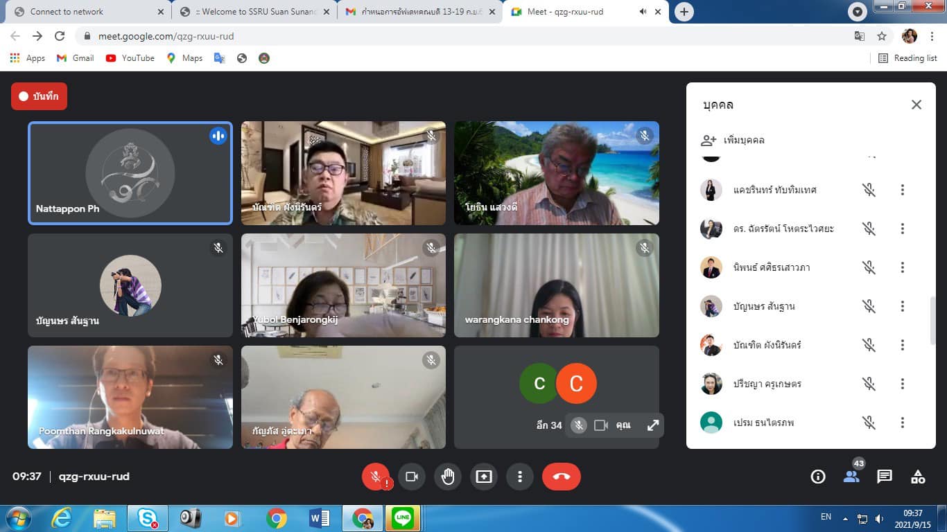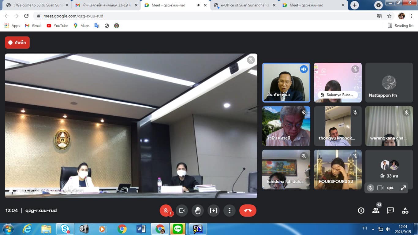 Wednesday, September 15, 2021 Assoc. Prof. Dr. Bundit Phangnirand, Dean of the College of Innovation and Management. Attended the Academic Council meeting of Suan Sunandha Rajabhat University No. 9/2564 .With Assoc. Prof. Dr. Chutikarn Sriwiboon, President of Suan Sunandha Rajabhat University as the chairman.The meeting was organized through the online system Google meet.