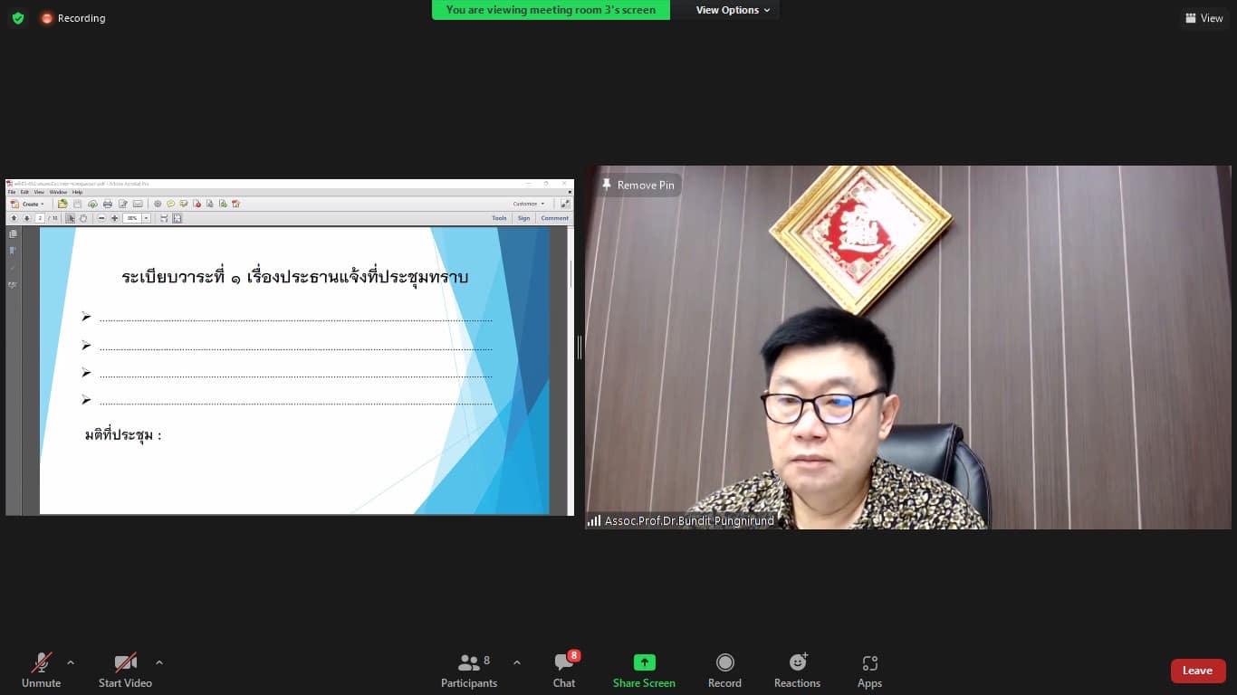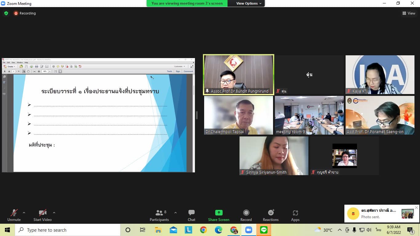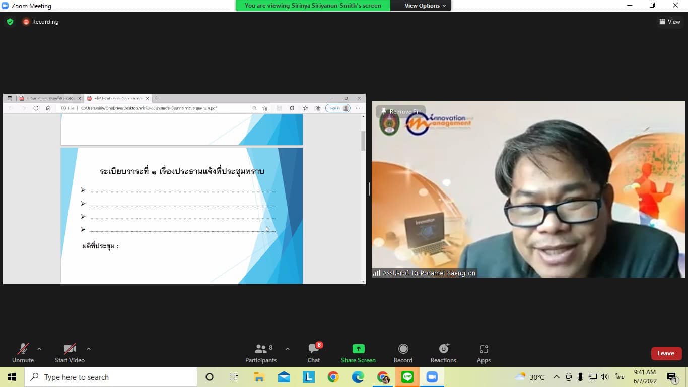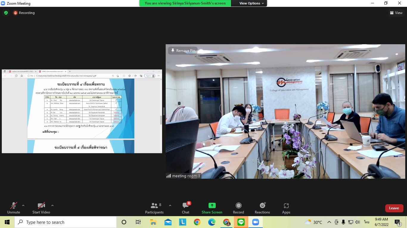 Assoc. Prof. Dr. Bundit Phangnirand, Dean of College of Innovation and Management attended the Implementation Committee meeting. Doctor of Philosophy Program in Management Innovation (Project China). at the Innovation and Management Conference Room, 2nd Floor, Mowadee Phithak Building and online program zoom.