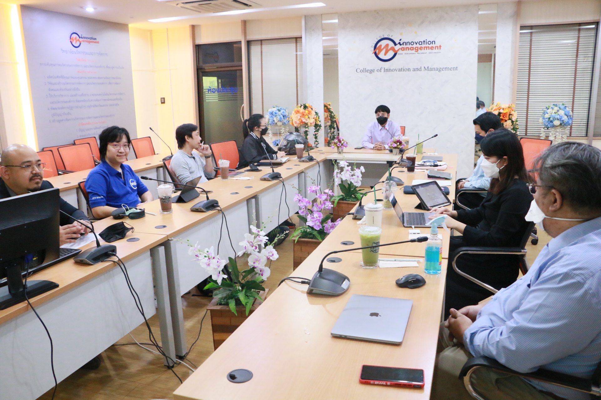 Thursday, May 26, 2022, College of Innovation and Management .Leaded by Associate Dean for Academic Affairs Asst. Prof. Hathaipan Soonthornpipit, Ajarn Phachok Lertasawapat, Ajarn Passara Sirikamonsilp, Ajarn Sathapat Gilaso and Ajarn Dr. Pannawat Chuwichian. Together with the private sector and government agency Meeting of the drafting committee of the Bachelor of Arts Program. Creative Media and Game Design Under the model of teaching and learning Sandbox. According to the policy of the Ministry of Higher Education, Science, Research and Innovation (TSU). At the main conference room of the College of Innovation and Management. Mewadee Phithak Building (Building 37).
