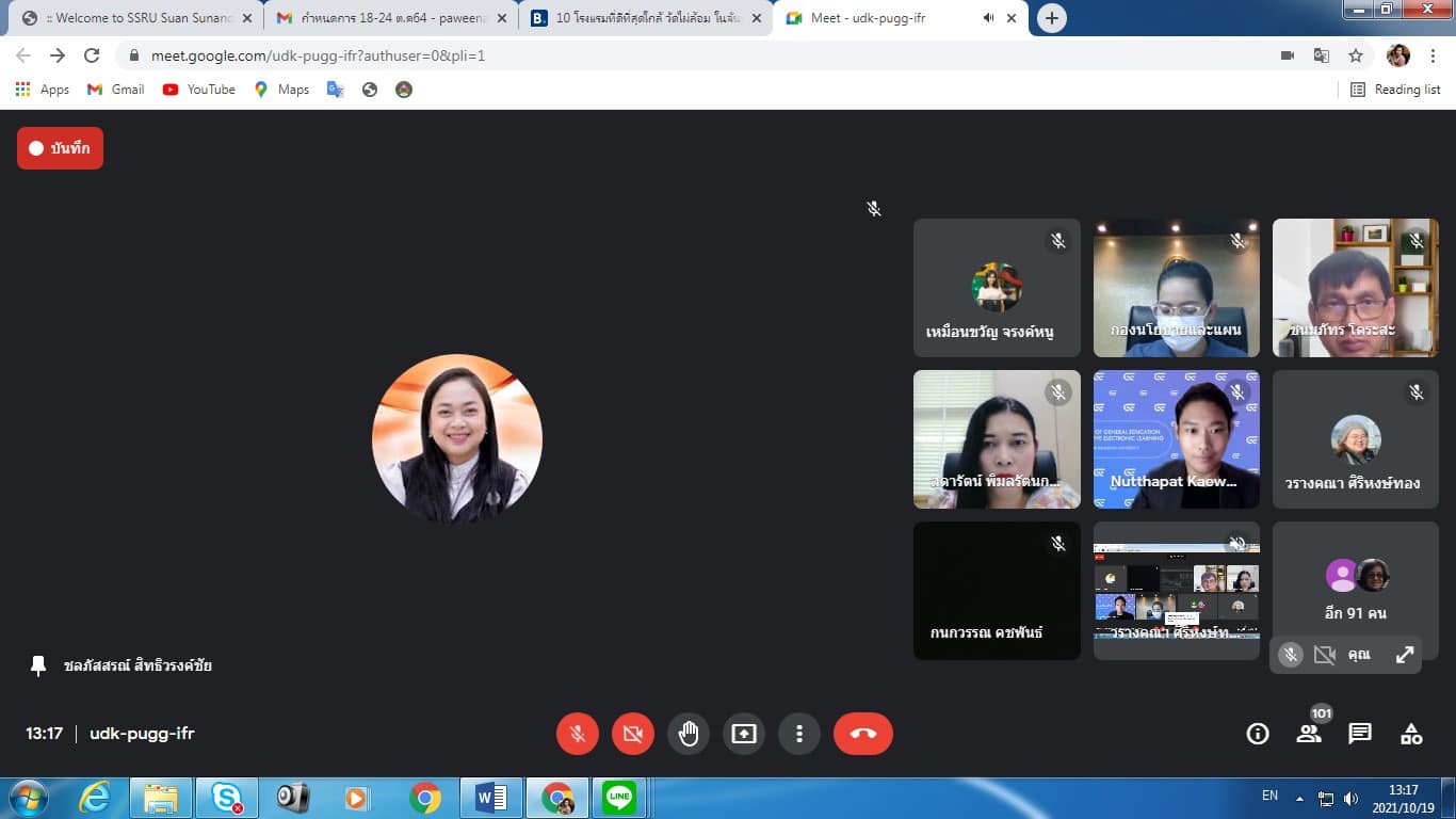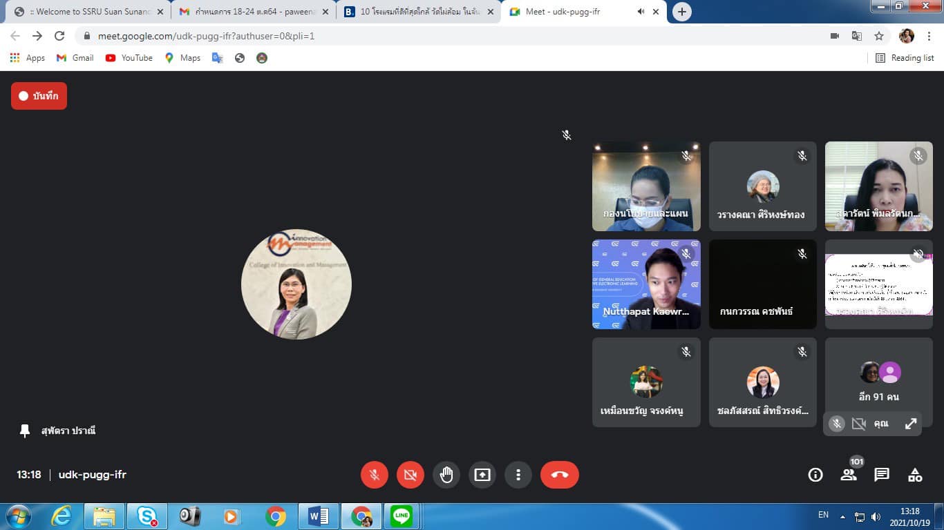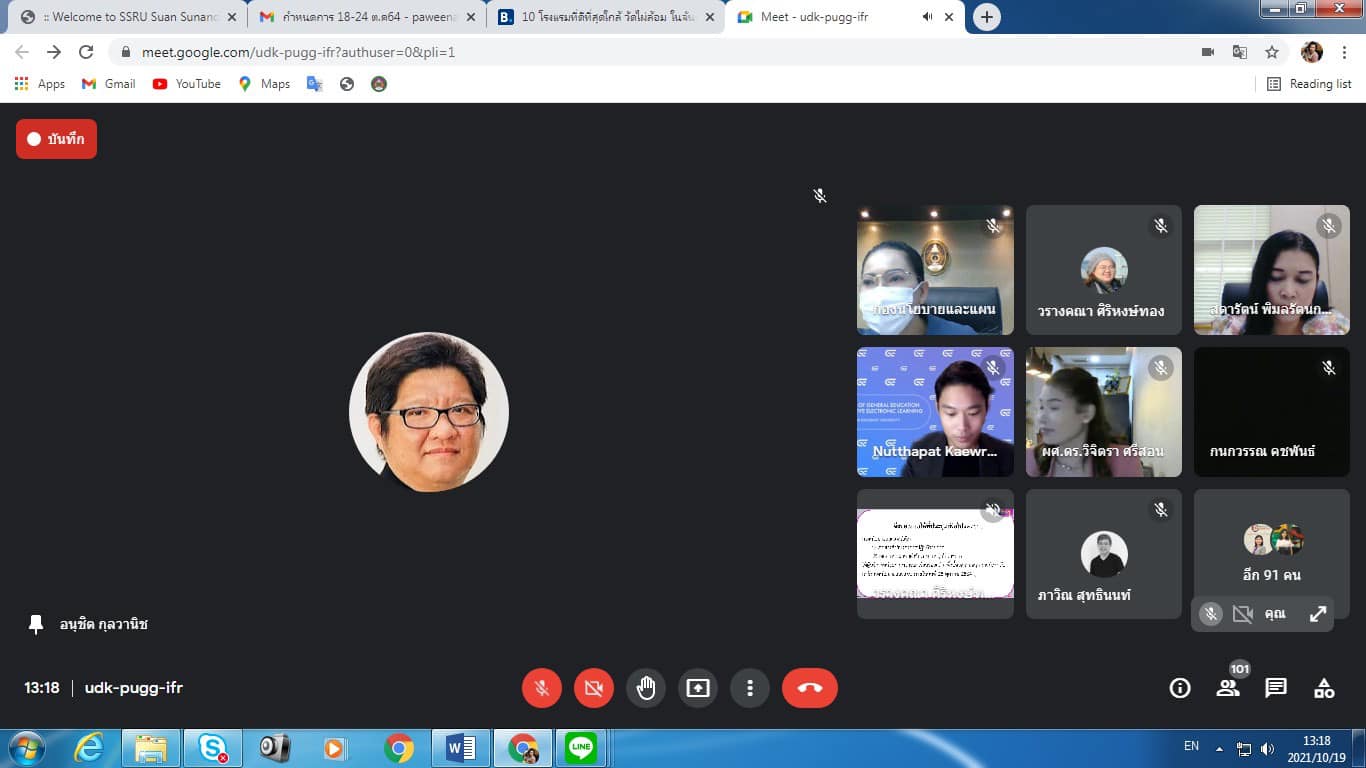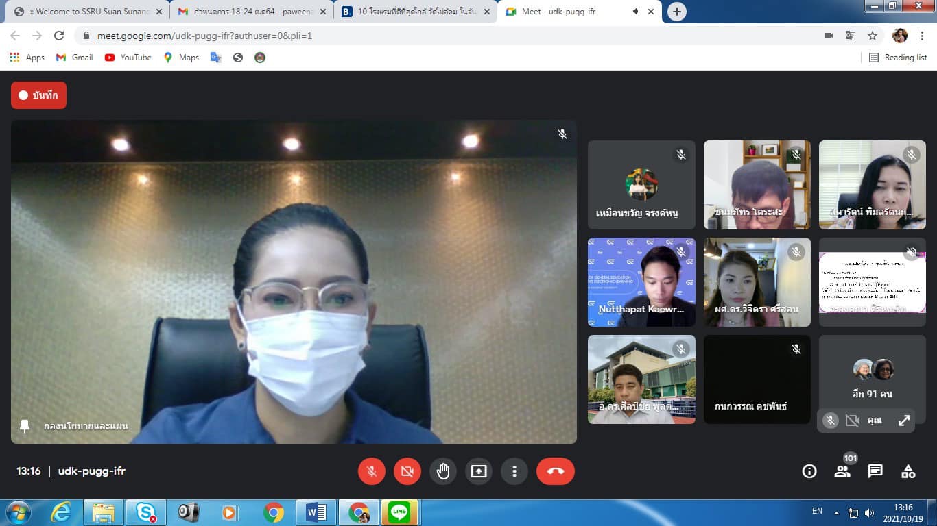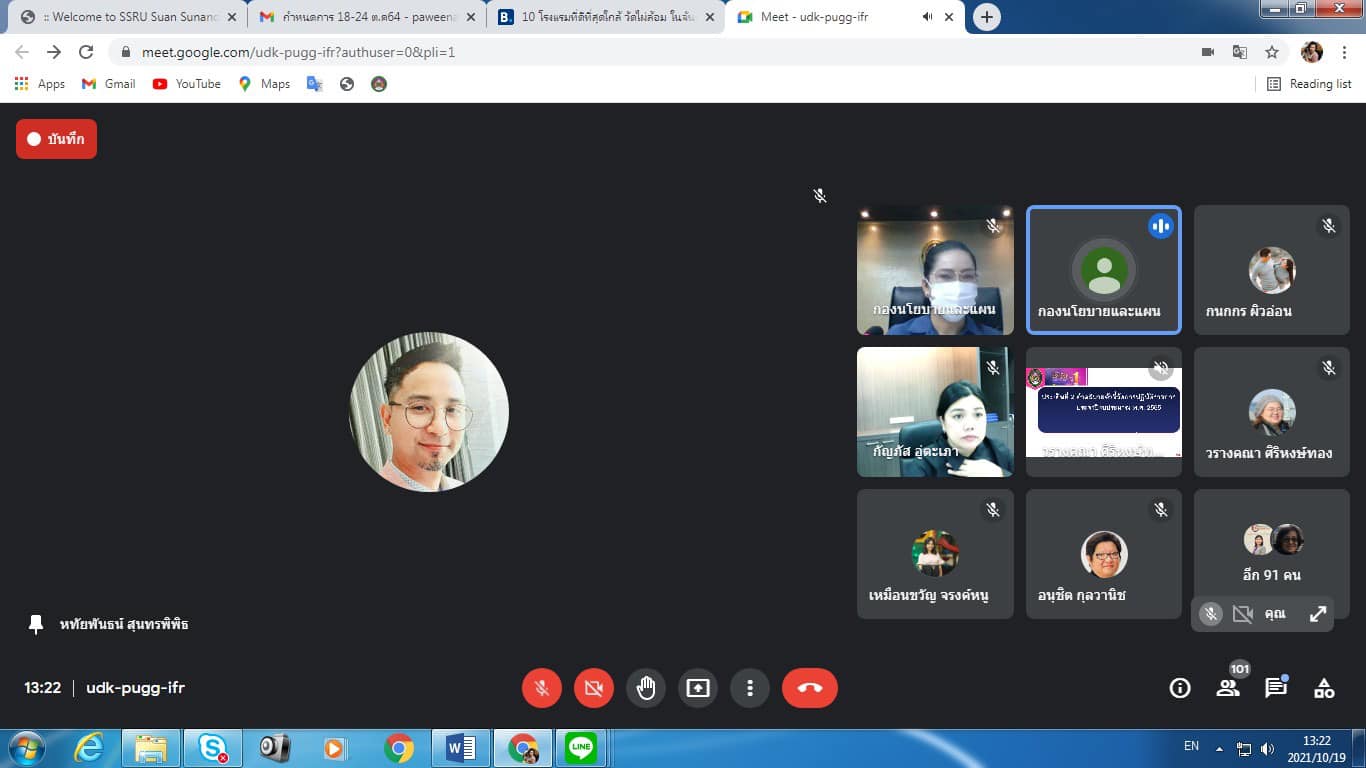 Tuesday, October 19, 2021 Assoc.Prof.Dr.Bundit Pungnirund, Dean of the College of Innovation and Management Suan Sunandha Rajabhat University along with Deputy Dean join the meeting To create an understanding of the transfer of indicators at the university level to the departments Fiscal Year 2022 with Assoc.Prof.Dr.Chutikarn Sriviboon, President of the University Chaired the meeting at the Council Meeting Room, Building 31 and via the online system Google Meet.