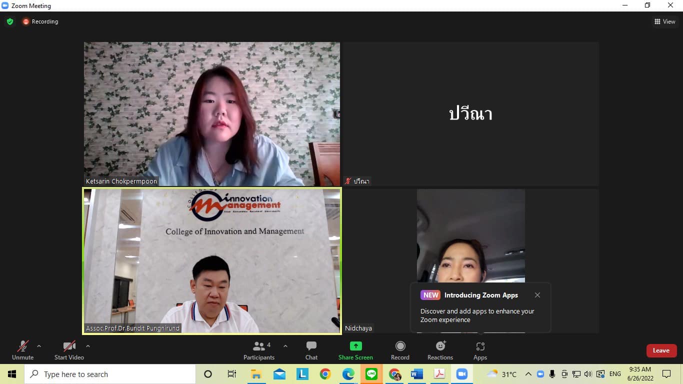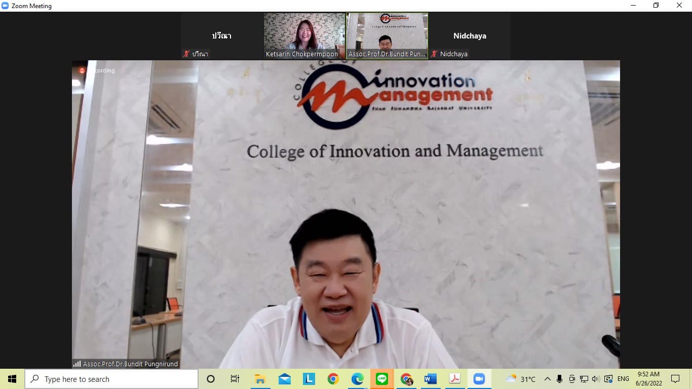 26 Jun 2022 Assoc. Prof. Dr. Bundit Phangnirand, Dean of the College of Innovation and Management to teach Ph.D. students Doctorate of Communication Arts program in Communication Department provides lectures in DCA 8603 Advanced Statistics for Communication Research. by organizing online teaching in the Zoom system