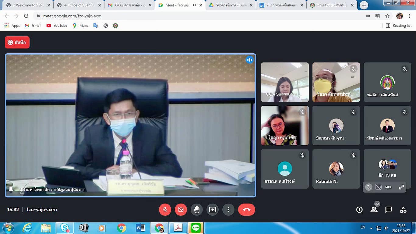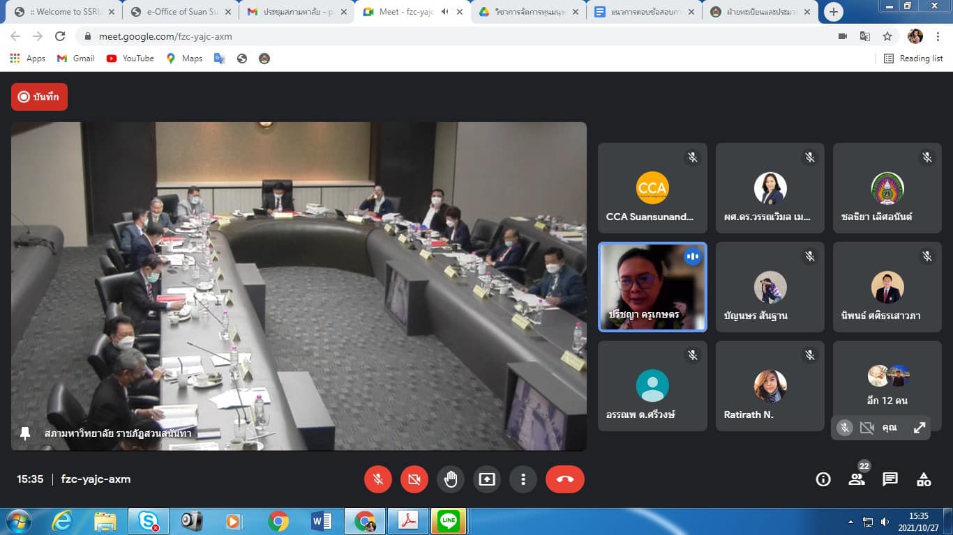 Wednesday, October 27, 2021 Assoc.Prof.Dr.Bundit Pungnirund, Dean of the College of Innovation and Management Attended the meeting of the Suan Sunandha Rajabhat Rajabhat University Council No. 10/2564 with Assoc. Prof. Dr. Ruedech Kerdwicha, President of Suan Sunandha Rajabhat University Council Chairman of the meeting at the University Council meeting room, 5th floor, Building 31 and meeting via online system (Google Meet)