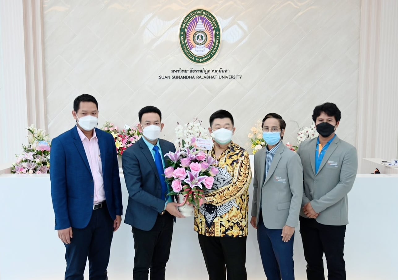 Friday, September 3, 2021 Assoc.Prof.Dr.Bundit Pungnirund, together with Associate Dean of the College of Innovation and Management Congratulations on giving a vase of flowers with assistant professor Dr. Jetsarit Angsukanchanakul On the occasion of being appointed to the position Vice Rector for Student Affairs Suan Sunandha Rajabhat University at the Office of the President, Building 31, 1st Floor