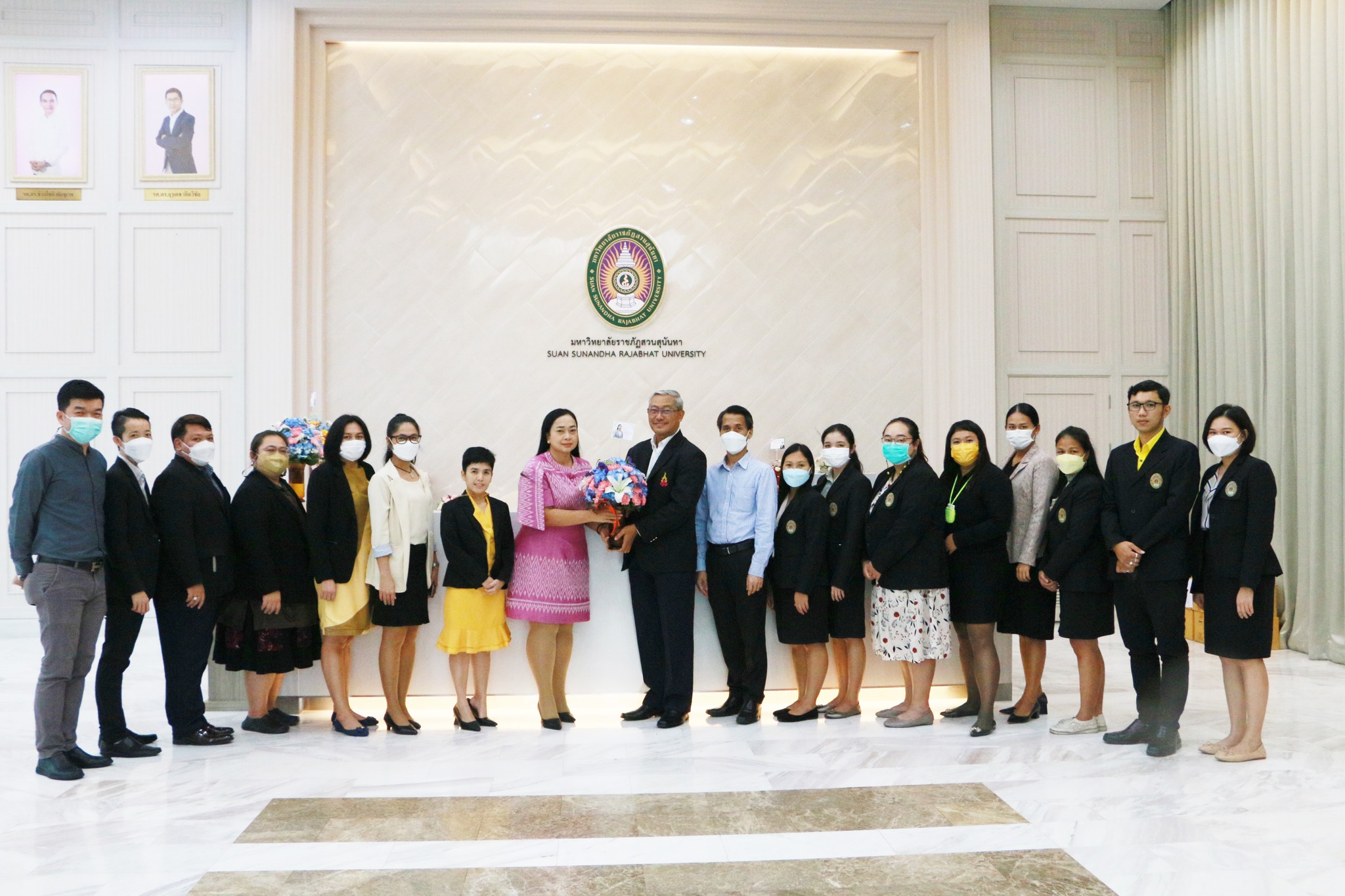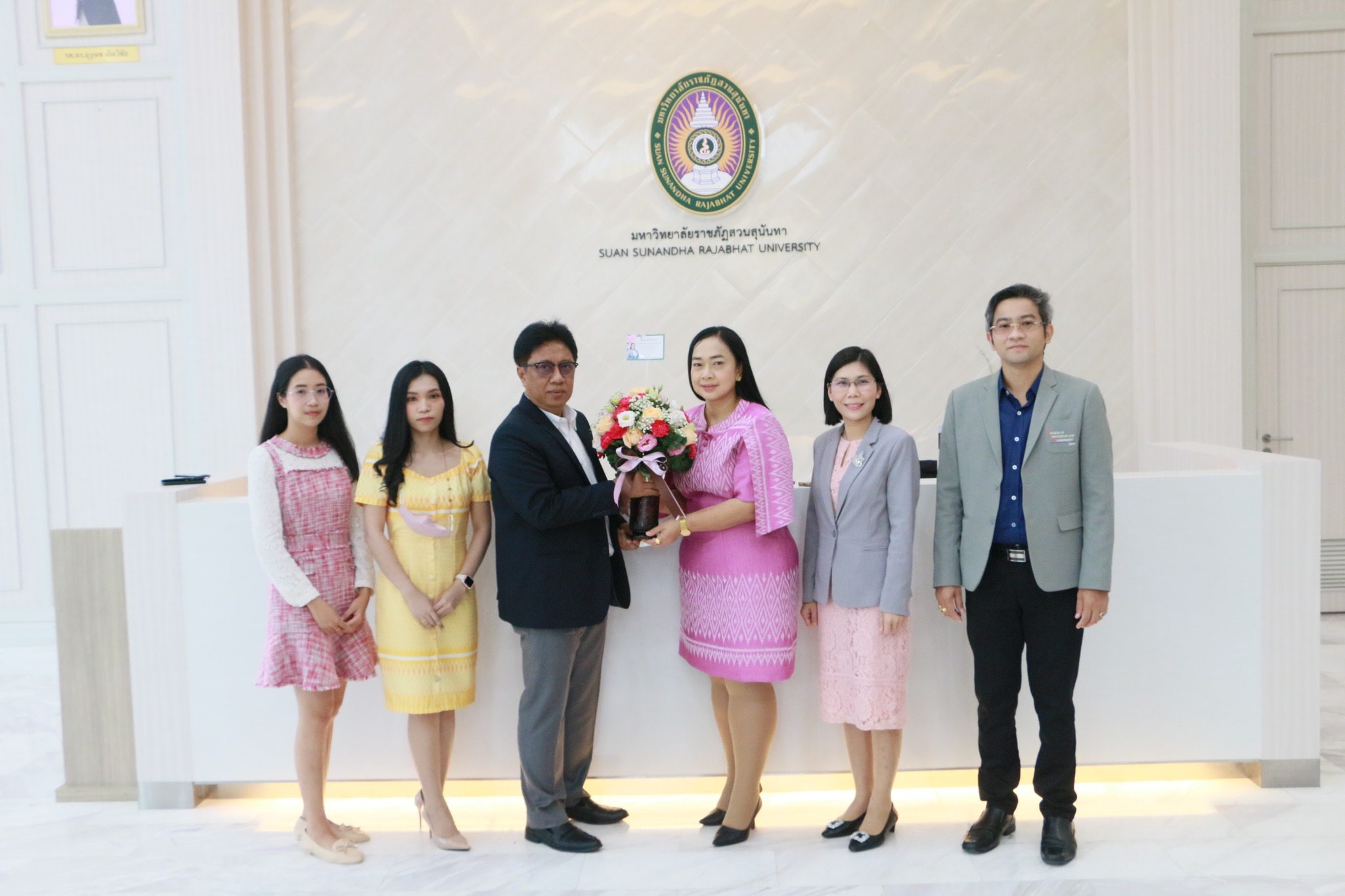 Vice Rector and Executive Committee various departments of Suan Sunandha Rajabhat University joined to congratulate Assistant Professor Dr. Chonlapasorn Sitthiwarongchai On the occasion of being appointed to the position Acting Dean of College of Innovation and Management Suan Sunandha Rajabhat University.