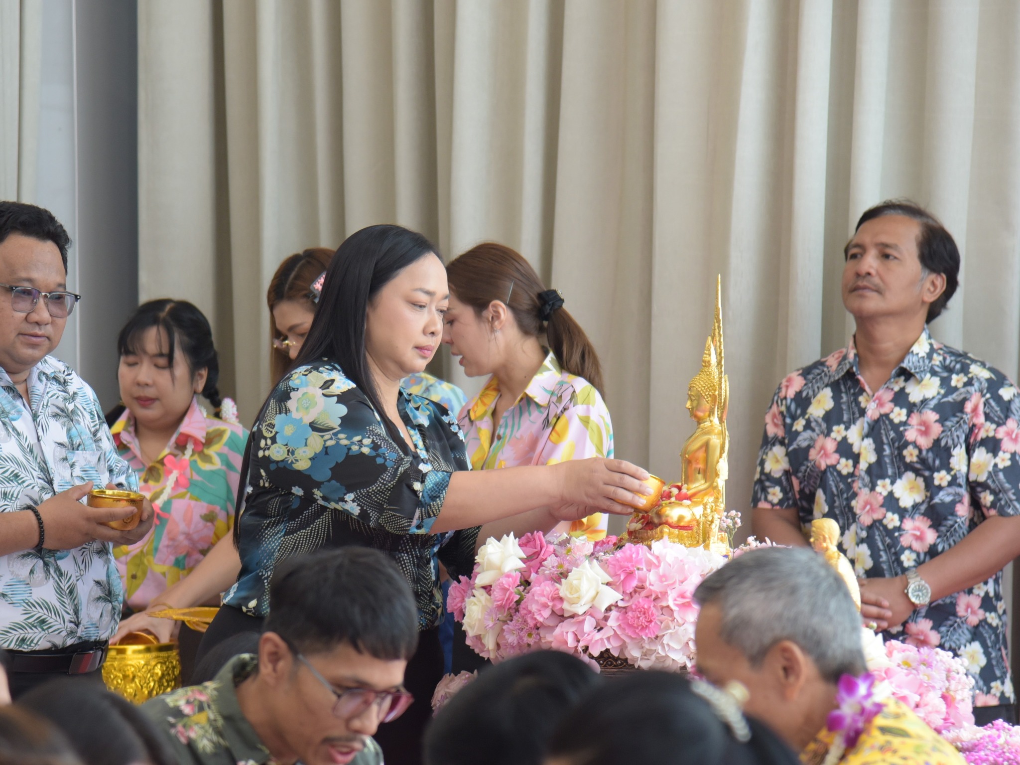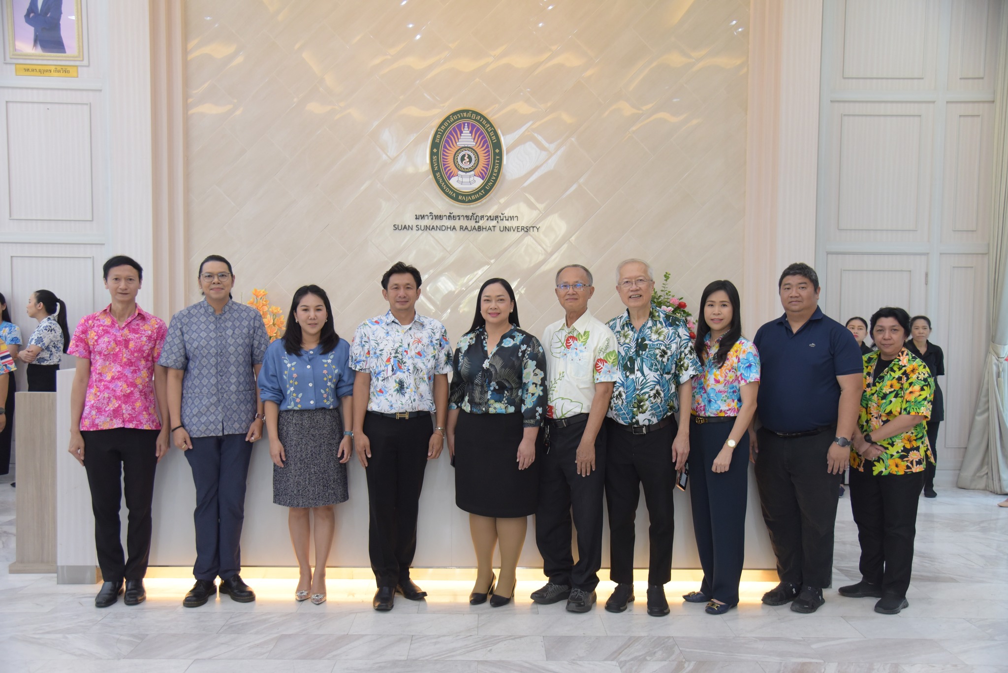 On April 7, 2026, Asst. Prof. Dr. Cholpassorn Sitthivorongchai, Dean of the College of Innovation and Management, together with the management team, faculty, and staff, attended the traditional Songkran ceremony. The team participated in bathing the Buddha image and the "Rod Nam Dam Hua" (water blessing) ceremony for Assoc. Prof. Dr. Luedech Girdwichai, Chairman of the University Council, and Assoc. Prof. Dr. Chutikarn Sriviboon, President of Suan Sunandha Rajabhat University. The ceremony, held to seek blessings and prosperity for the Thai New Year, took place at the Hall of Fame, Building 32, Suan Sunandha Rajabhat University.