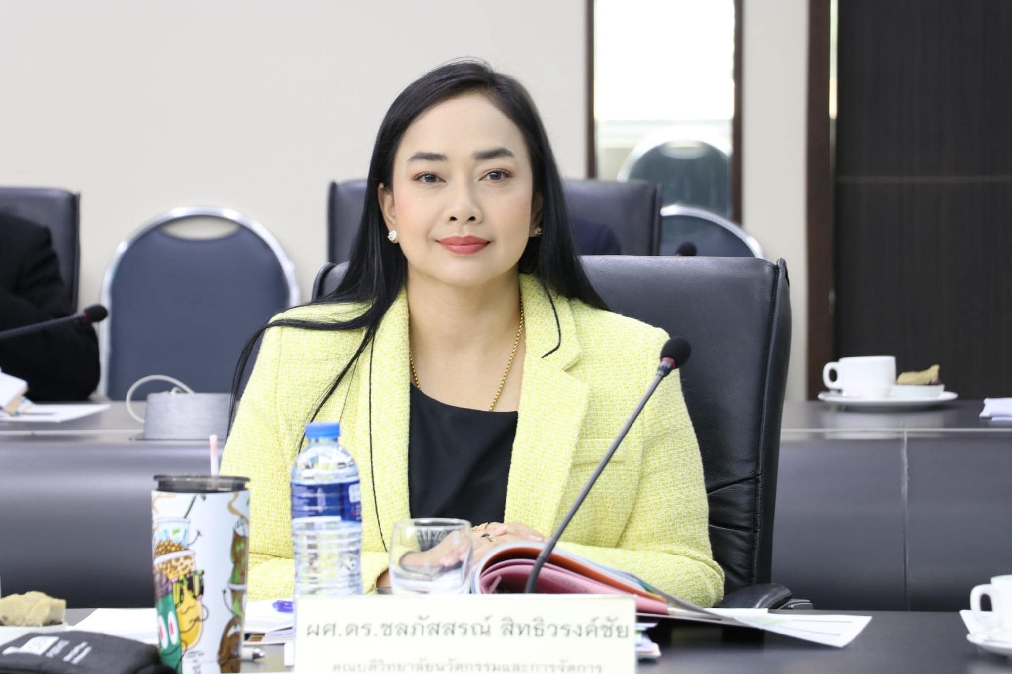 Suan Sunandha Rajabhat University Executive Meeting No. 9/2023 Monday, September 11, 2023 at Asst. Prof. Dr. Cholapasorn Sittivongchai Dean of the College of Innovation and Management, Suan Sunandha Rajabhat University Executive Committee Meeting No. 9/2023, Assoc. Prof. Dr. Chutikarn Sriwiboon, President, presided over at Suan Sunandha Rajabhat University Auditorium, Building 31, 5th Floor.