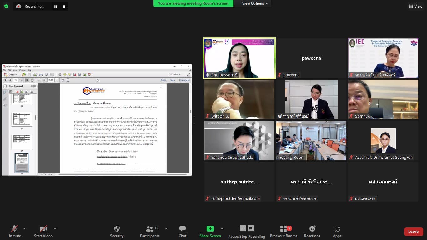 On August 20, 2022, 1:00 p.m. College of Innovation and Management, led by Associate Professor Dr. Bundit Phangnirand, Dean of the College of Innovation and Management. Organized a meeting of the College of Innovation and Management Committee Meeting No. 4/ 2022 . Assoc. Prof. Dr. Chutikarn Sriwiboon, President, presided over the meeting room of the College of Innovation and Management, Building 37, 2nd floor and online system. .