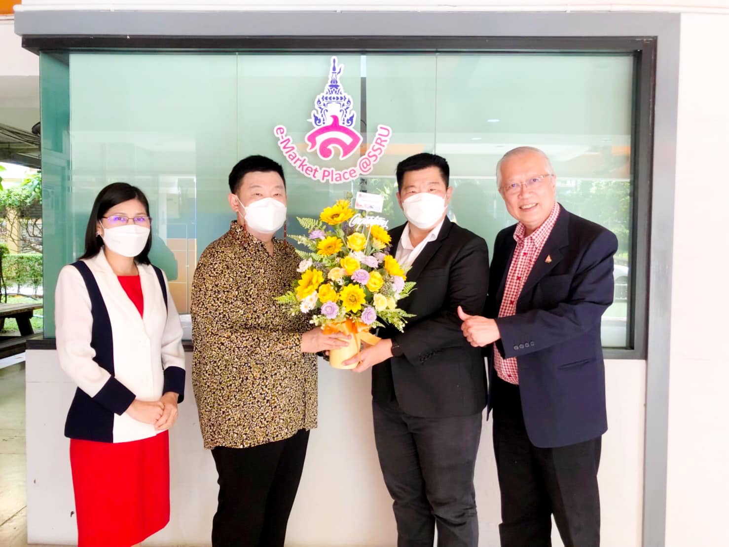 Assoc. Prof. Dr. Bundit Phangnirand, Dean of the College of Innovation and Management, along with Asst. Prof. Dr. Thanapol Kotthan, Chair of the Doctoral Philosophy Program, and Asst. Prof. Dr. Supattra Pranee, Associate Dean for Planning and Quality Assurance Congratulations on giving a vase of flowers to Mr. Sakul Jariyachamsit Lecturer in Tourism Management Doctoral student, Doctor of Philosophy program Management Innovation On the occasion of having successfully passed the 5 thesis defense exams. On behalf of the Doctor of Philosophy program Management Innovation College of Innovation and Management Suan Sunandha Rajabhat University Therefore, I would like to congratulate you on this occasion.