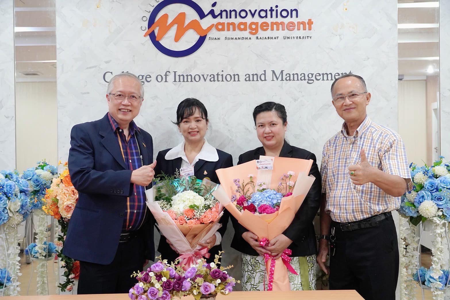Asst. Prof. Dr. Thanaphon Kotthan, Chairman of the Doctor of Philosophy Program, together with Asst. Prof. Dr. Chaithanatkon Phawit Phiriyakrit course teacher Congratulations to Ms. Paweena Sribunruang and Ms. Suida Wonganawat, Ph.D. students in the Doctor of Philosophy program. Management Innovation On the occasion of having successfully passed the 5 thesis defense exams. On behalf of the Doctor of Philosophy program Management Innovation College of Innovation and Management Suan Sunandha Rajabhat University Therefore, I would like to congratulate you on this occasion.