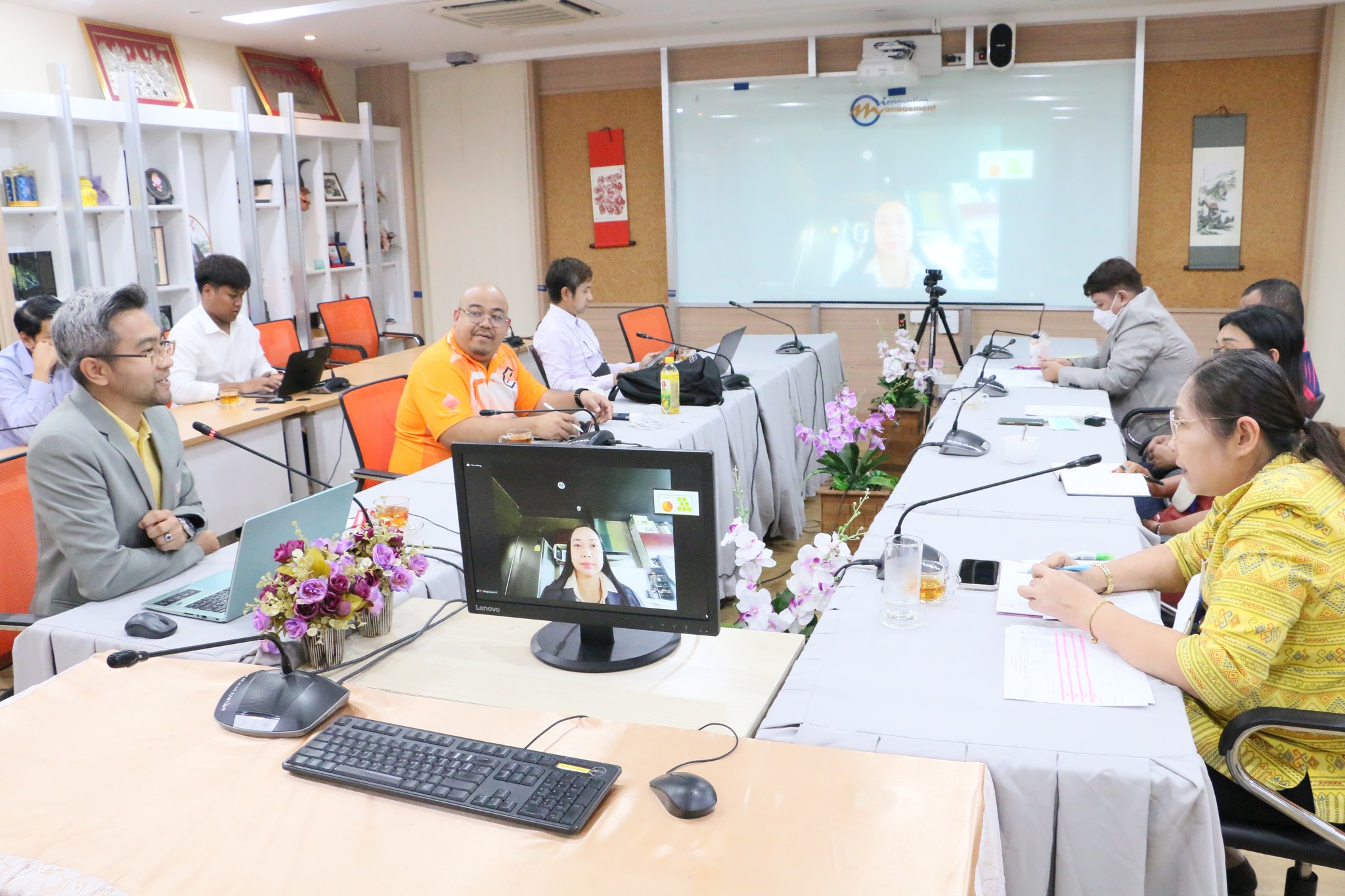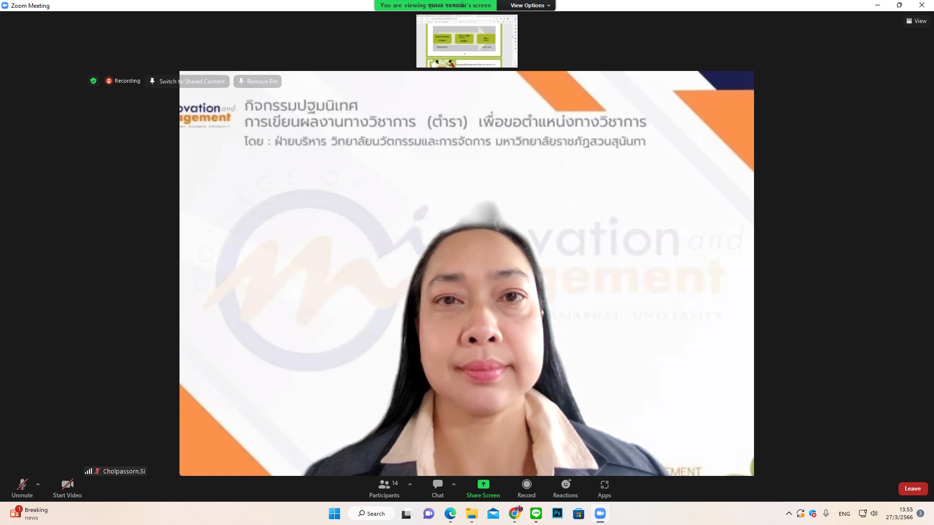 On Monday, March 27th, 2023 at 1:30 PM, the Administration and Planning of College of Innovation and Management, led by Asst.Prof.Dr.Chumpon Rodjam deputy dean for Administration and Planning organized an orientation program for academic writing of textbooks to apply for an academic position. Asst. Prof. Dr. Cholpassorn Sitthiwarongchai, Dean of the College of Innovation and Management presided over the event, which took place at Hemwadeepidak meeting room, 2nd floor, building 37, College of Innovation and Management as well as online via the ZOOM Cloud Meeting platform.