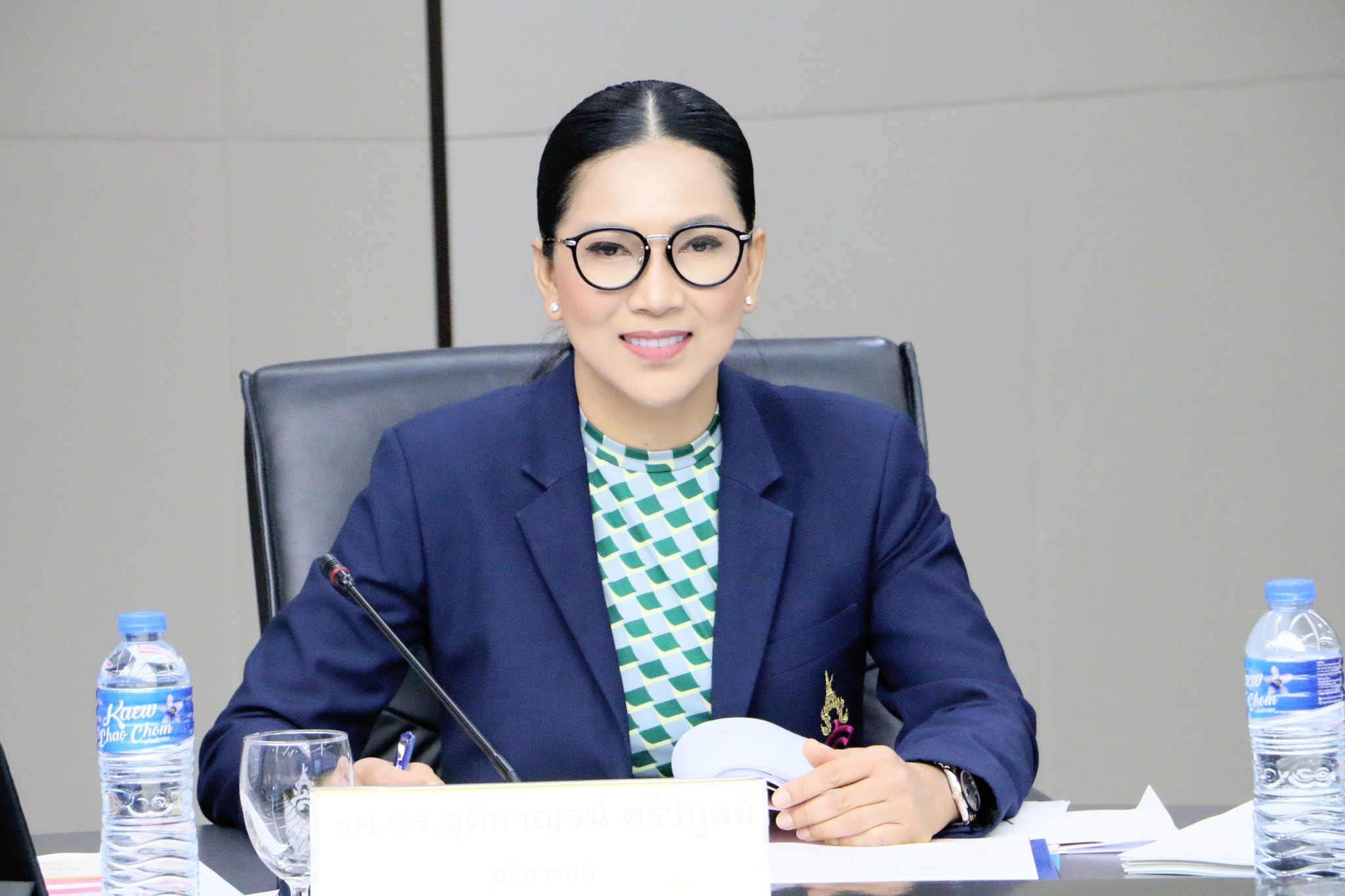 March 22, 2023, 1:30 p.m. The agenda is presented by Assistant Professor Dr. Cholpassorn Sitthiwarongchai, the Dean of the College of Innovation and Management and Assistant Professor Hathaipan Soonthornpipit, Deputy Dean for Academic Affairs. The meeting was held in the meeting room of the Suan Sunandha Rajabhat University Council, building 31, 5th floor, and was presided over by Associate Professor Dr. Ruedej Kerdvichai, President of the University Council.
