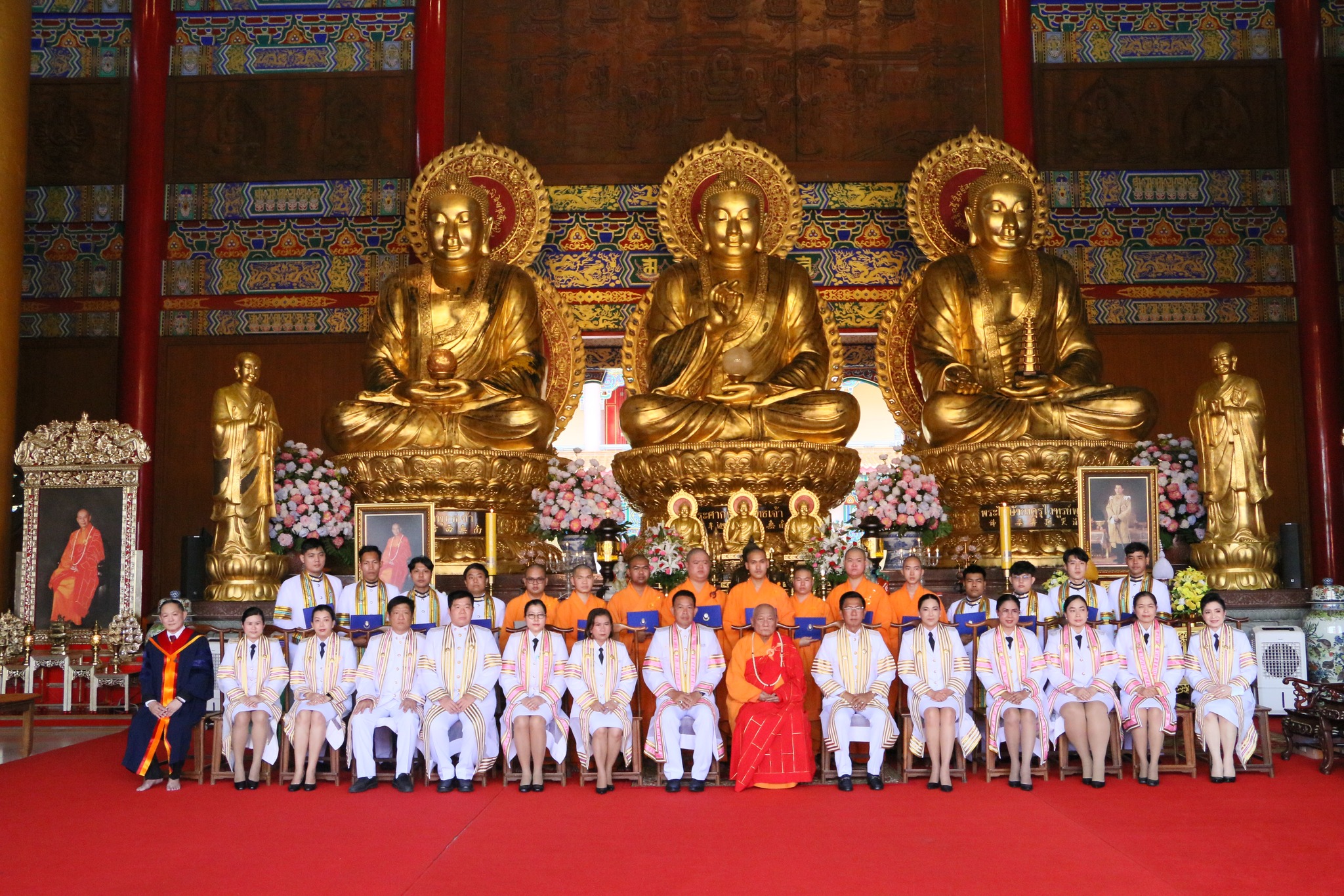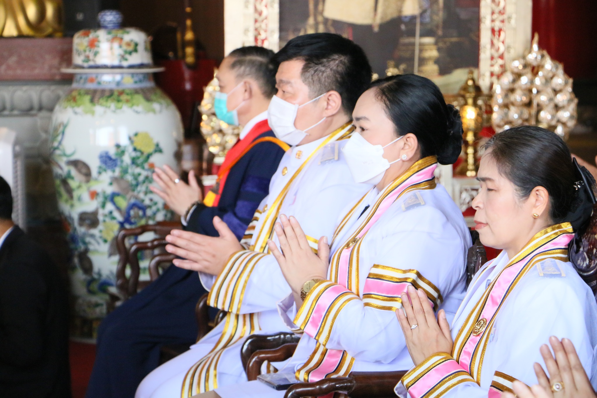 Asst. Prof. Dr. Chonlaphatsorn Sittiwarongchai Dean of the College of Innovation and Management along with Ajarn Dr. Anuchit Kulwanich, Associate Dean for Student Affairs, Ajarn Dr. Sakul Jariyachamsit Associate Dean for Planning and Quality Assurance and Ajarn Wareeya Klangsaeng attended the ceremony to prosper Mutita, monks, students, new graduates, bachelor's degree graduates From Suan Sunandha Rajabhat University at the chapel, 3rd floor, Wat Boromracha Kanchanapisek Anusorn Bang Bua Thong District Nonthaburi Province