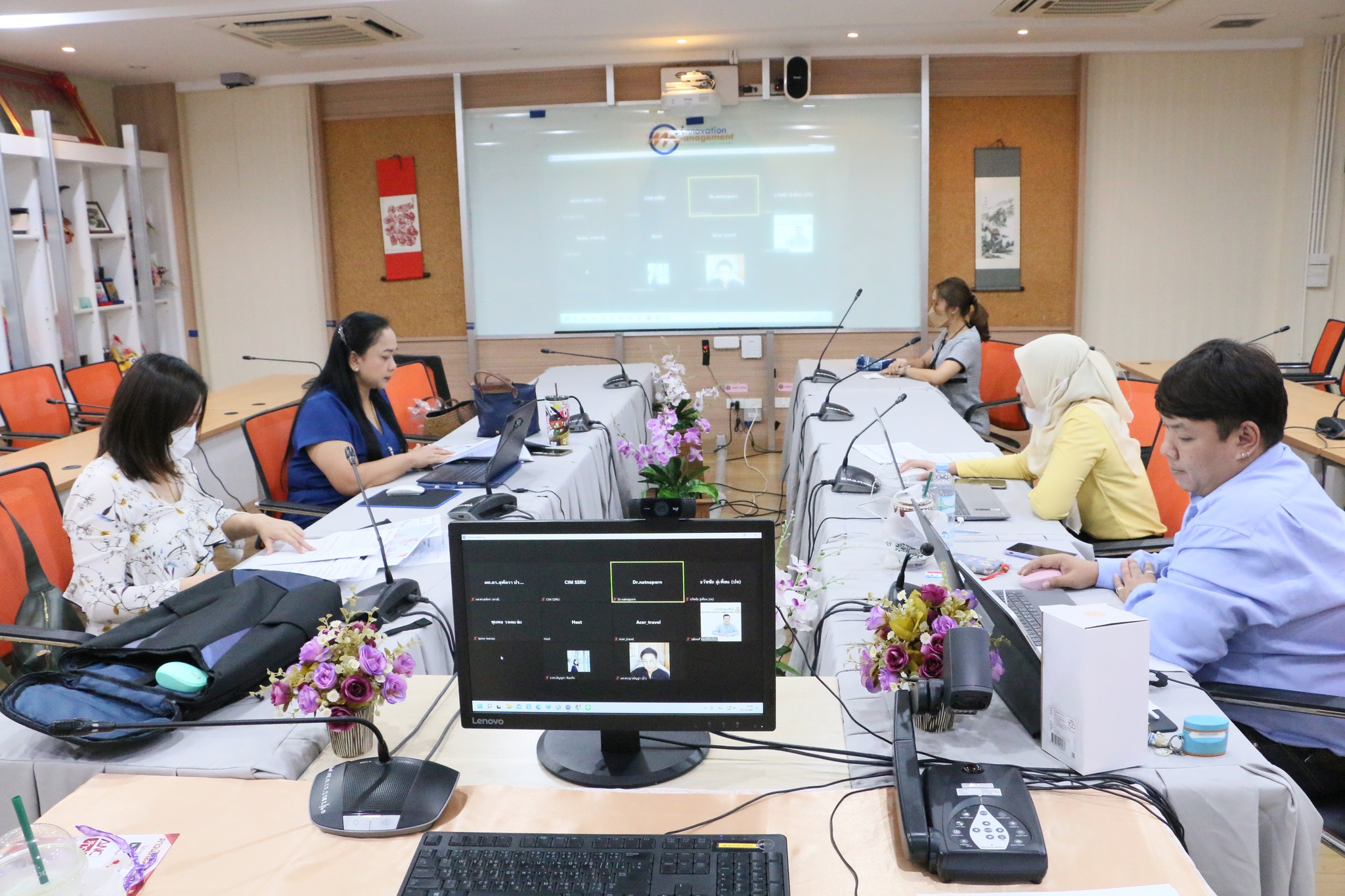 Monday 20 March 2023 College of Innovation and Management, Suan Sunandha Rajabhat University in collaboration with Research and Development Institute Suan Sunandha Rajabhat University and Thailand Career Competency Research and Development Institute organize the professional competency exam for researchers level 8 at the College of Innovation and Management, 2nd floor, Building 37, and in an online format Zoom Meeting by Assistant Professor Dr. Cholpassorn Sitthiwarongchai. This exam was also attended by the Dean of the College of Innovation and Management, the Associate Dean, and faculty members from the College of Innovation and Management.