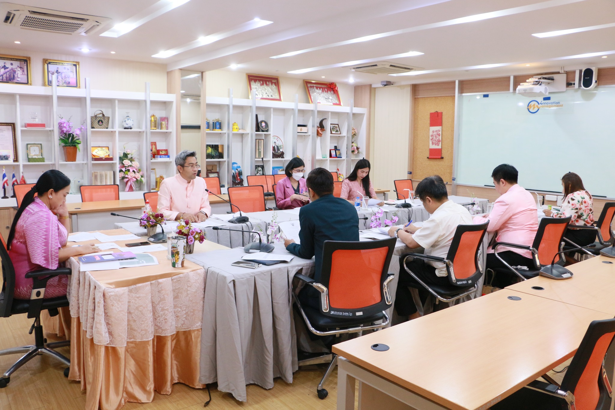 Thursday, November 10, 2022, at 1:30 p.m. College of Innovation and Management Hold a meeting of the college administrators. To drive the College's operation to be effective, the meeting was chaired by Asst. prof. Dr. Cholpassorn Sitthiwarongchai, Acting Dean of the College of Innovation and Management. Hemawadee Pitak Building (Building 37)