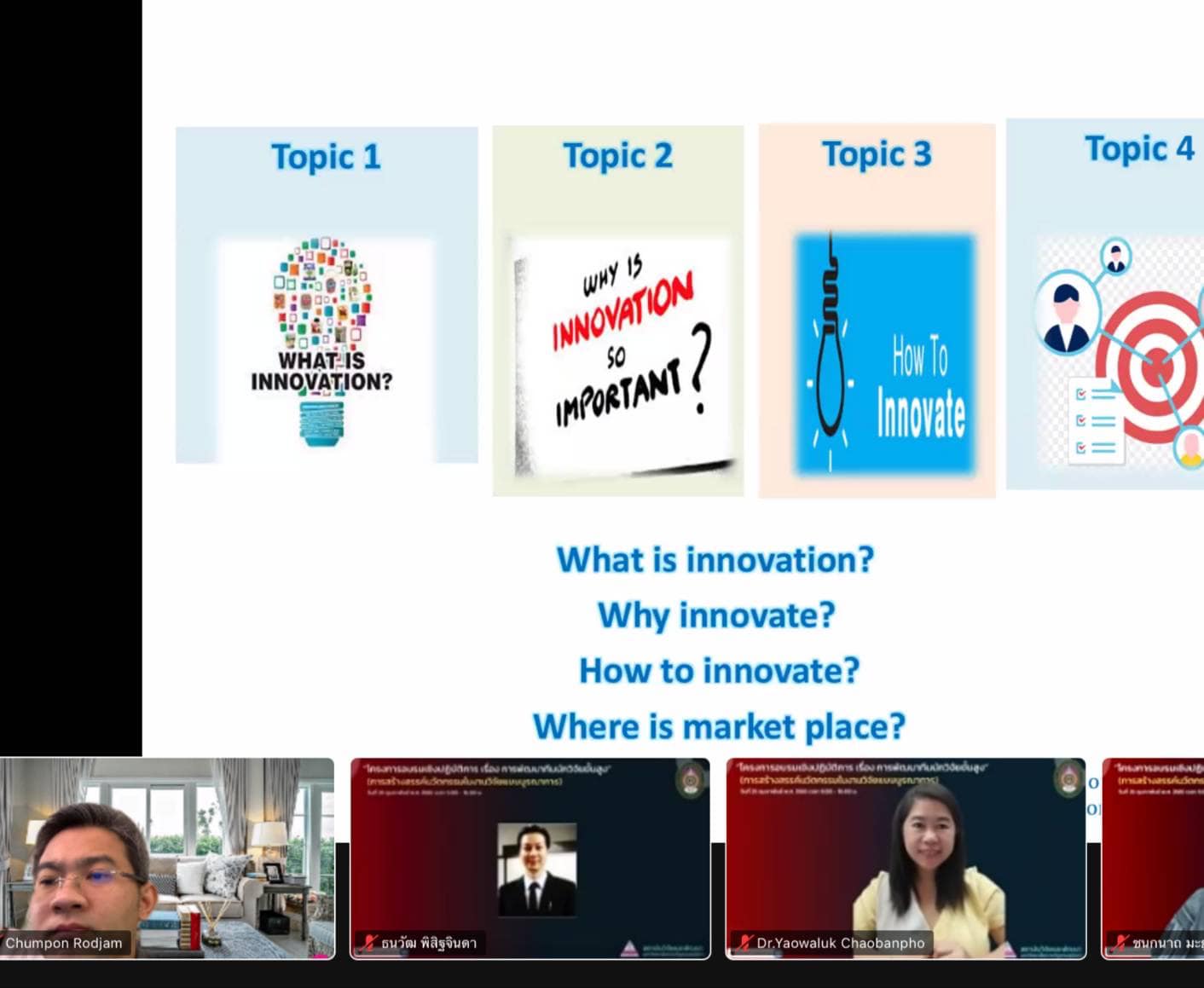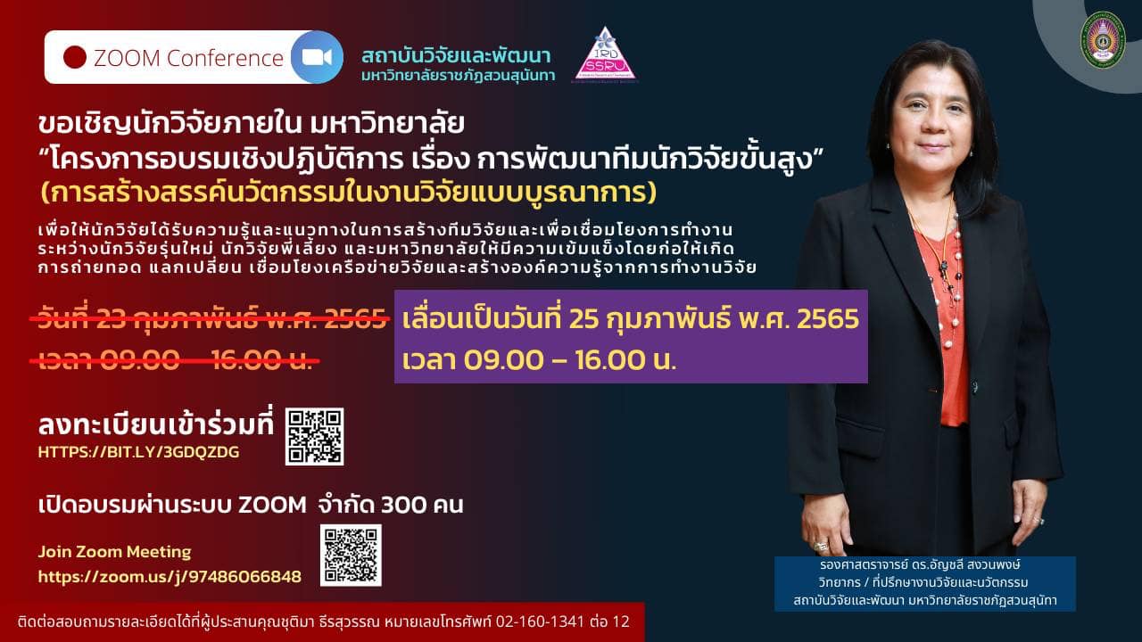 Faculty of M.B.A. Program (Human Capital Management Innovation and Entrepreneurship). Participated in a training workshop on "Development of an Advanced Research Team" on February 25, 2022, from 9:00 a.m. - 4:00 p.m., organized by the Research and Development Institute. Suan Sunandha Rajabhat University.