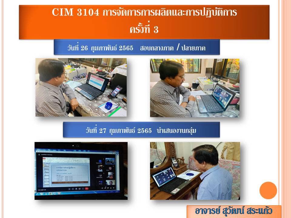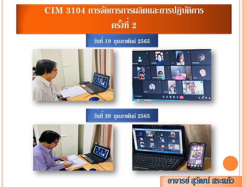 Atmosphere of online learning CIM3104. Production and Operations Management Lectures by Ajarn Suwat Sakaeo, Department of Quality Management. College of Innovation and Management. Special Program, Suan Sunandha Rajabhat University Ranong Provincial Education Center.