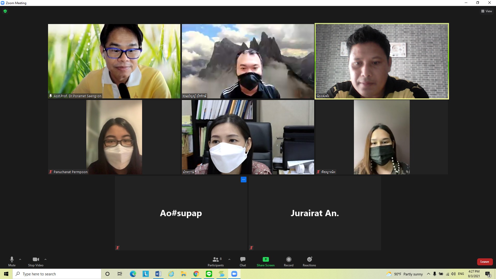 On August 3, 2021 at 3:00 p.m. College of Innovation and Management Organize a meeting to follow up on the results of government work according to the government official certification Fiscal Year 2021, Fiscal Year 2021, around 10 months, with Assistant