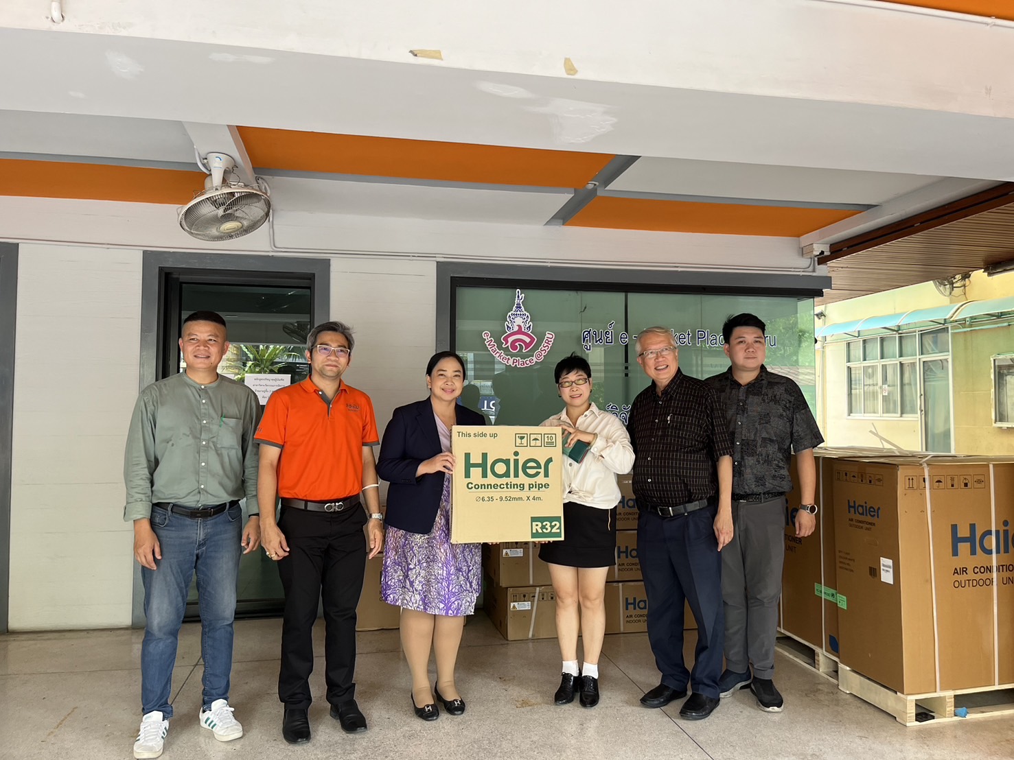 Tuesday 21 May 2024 Assistant Professor Dr. Chonlapasorn Sittivarongchai Dean of the College of Innovation and Management along with Assistant Professor Dr. Chumpol Rodjam, Deputy Dean for Administration Assistant Professor Dr. Thanaphon Kotha, Chairman of the Doctor of Philosophy Program in Management Innovation Received 7 air conditioners from Miss Yanhong Geng, Executive Chairman of Tai Anju Haier Family Company Limited, distributor of Haier electrical appliances in Thailand. To be installed in classrooms, Building 37, College of Innovation and Management. Suan Sunandha Rajabhat University.