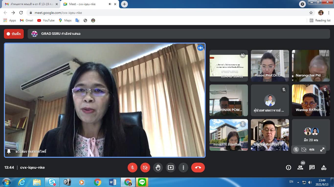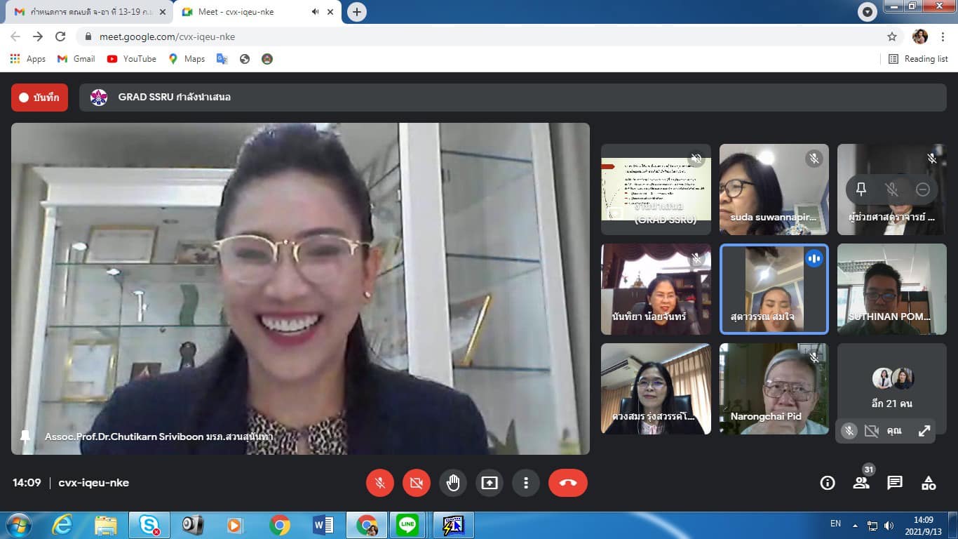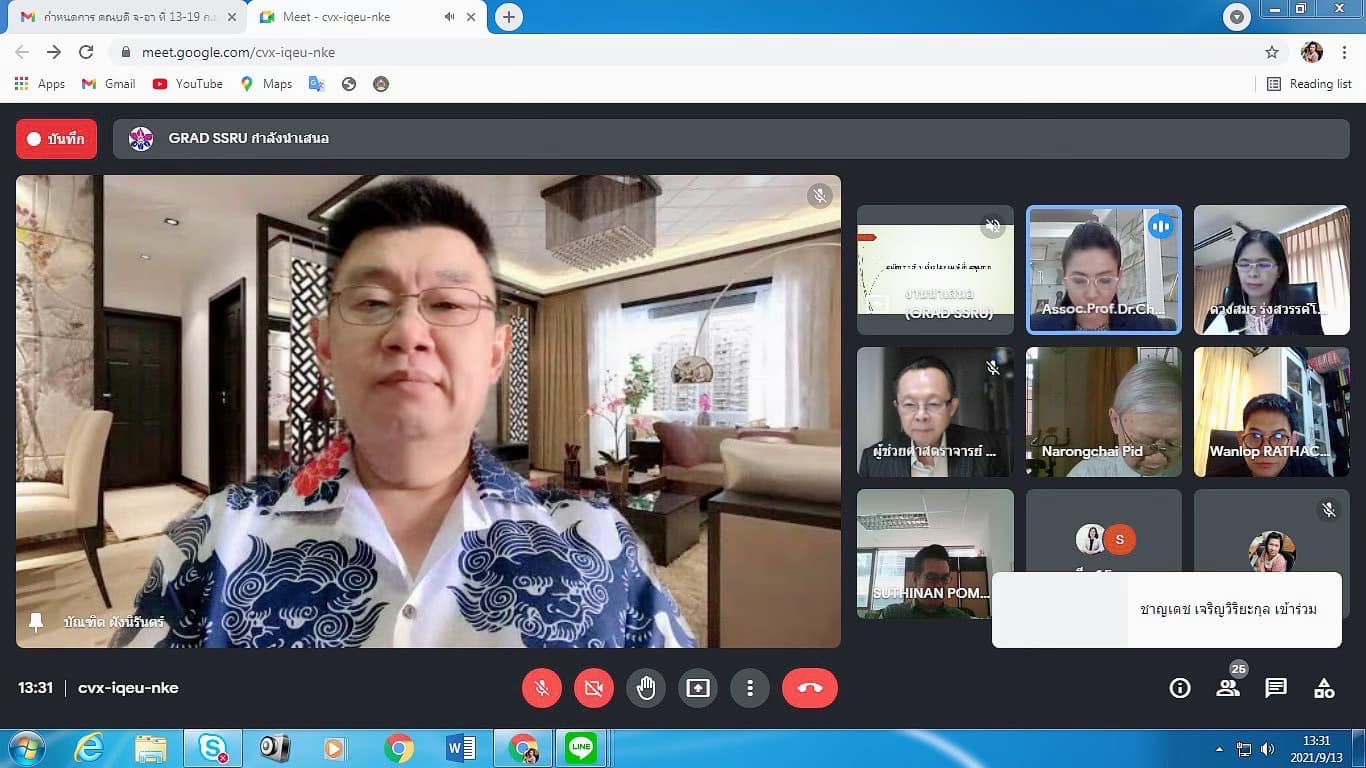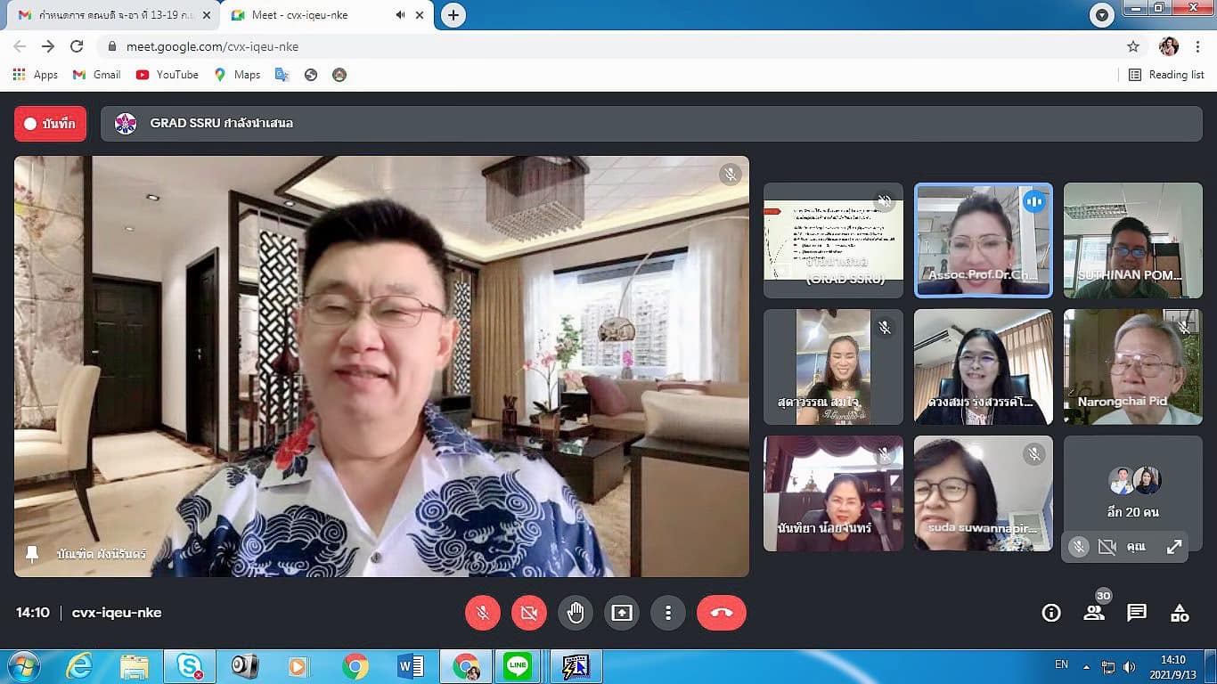 13 September 2021 Assoc.Prof.Dr.Bundit Pungnirund, Dean of the College of Innovation and Management Attended the Graduate School Board Meeting No. 9/21 with Assoc.Prof.Dr.Chutikarn Sriviboon, President of Suan Sunandha Rajabhat University chair the meeting in online format