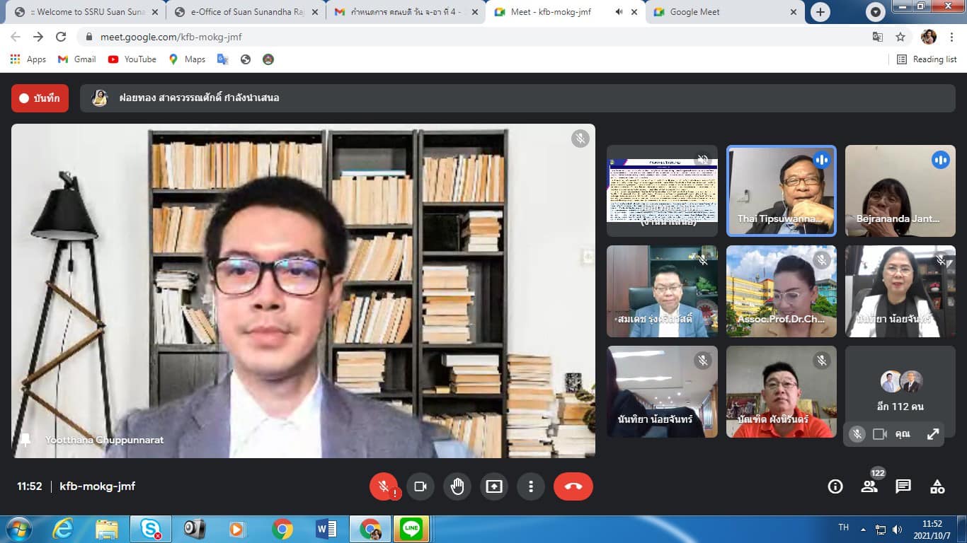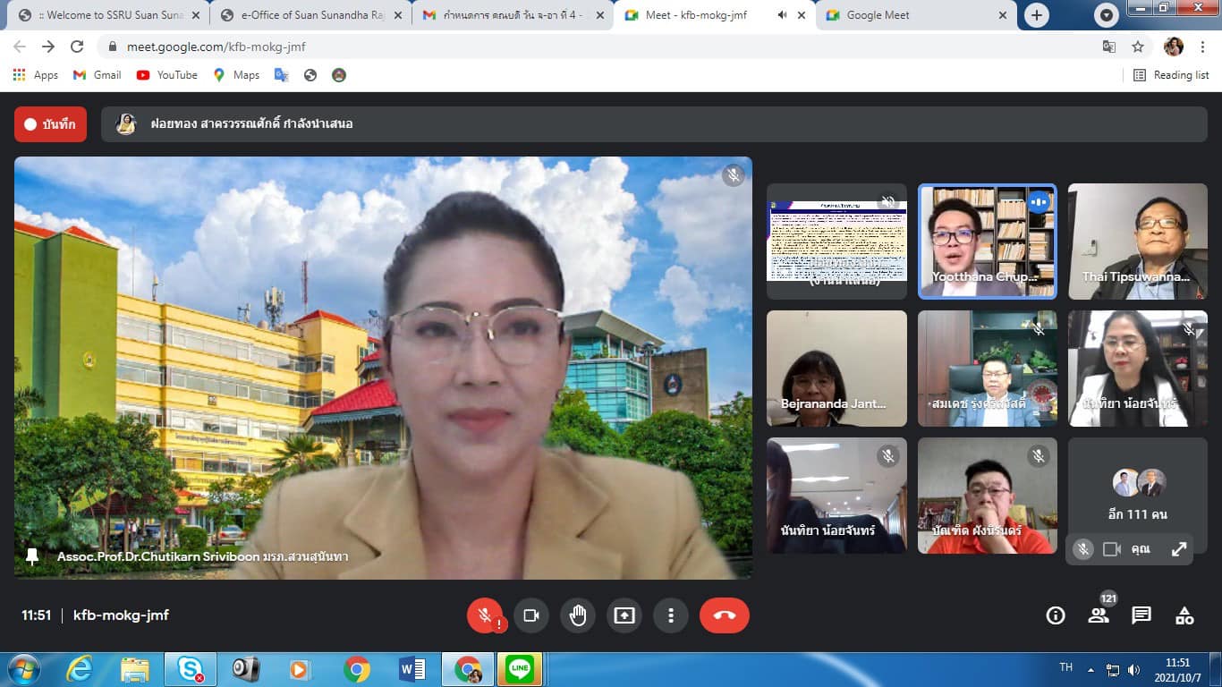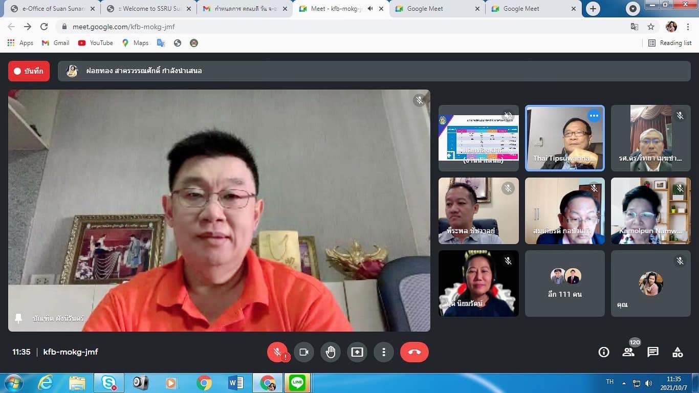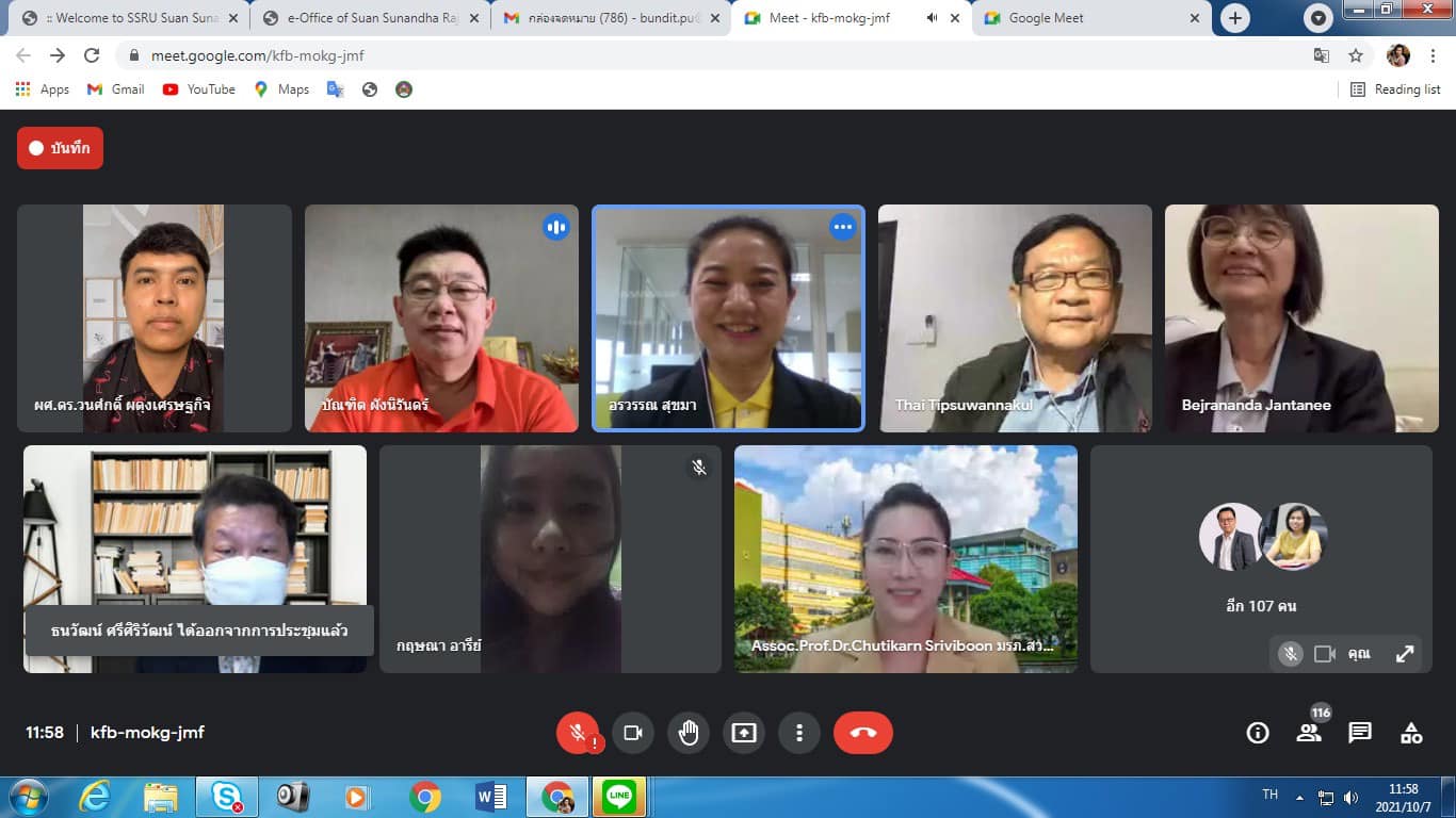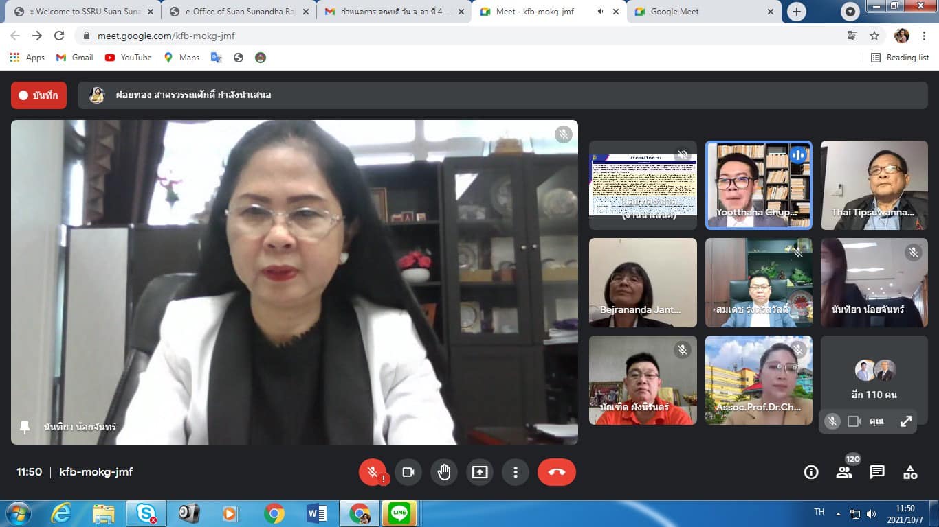 On October 7, 2021, Assoc. Prof. Dr. Bundit Phangnirand, Dean of the College of Innovation and Management Along with the management team attended the summary of the internal educational quality assessment Suan Sunandha Rajabhat University Academic year 2020 via online meeting system, Google Meet program