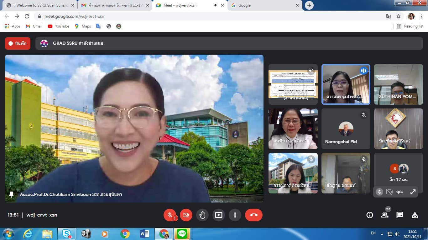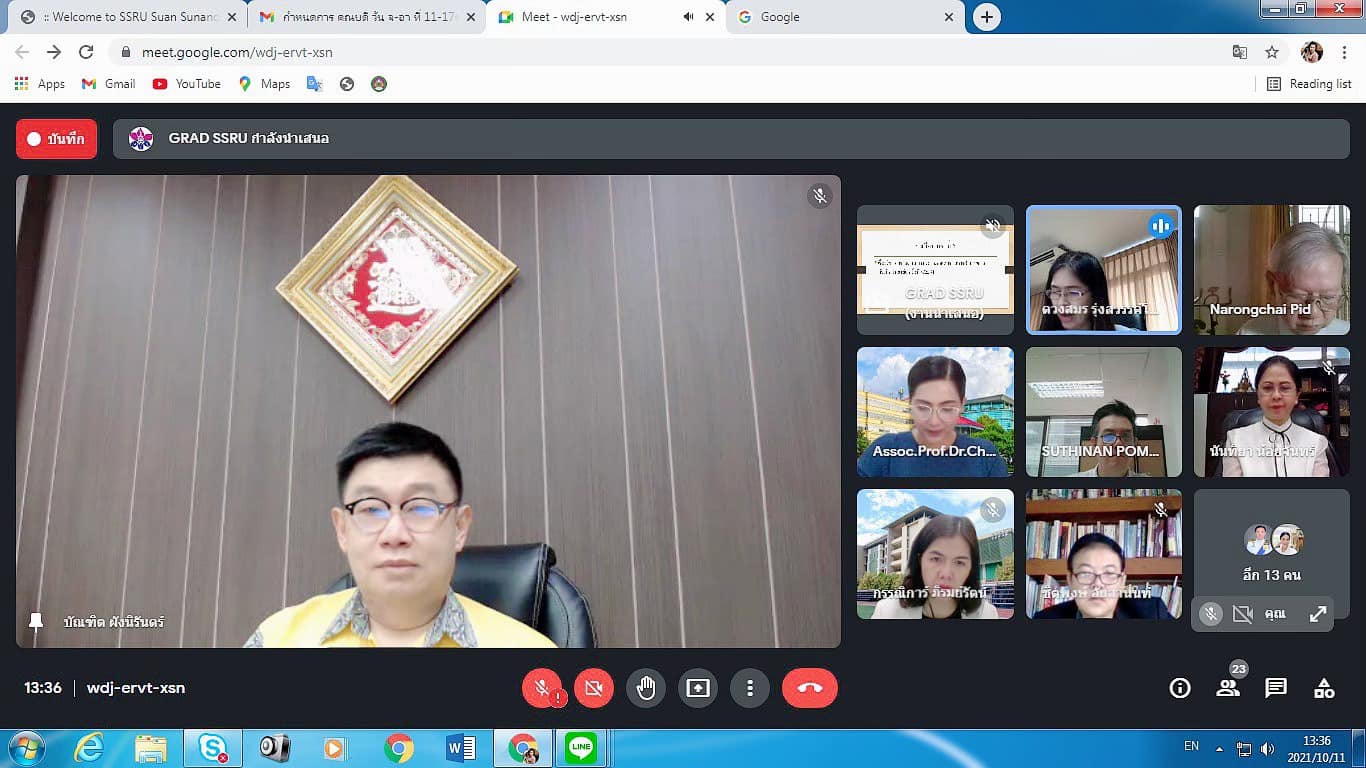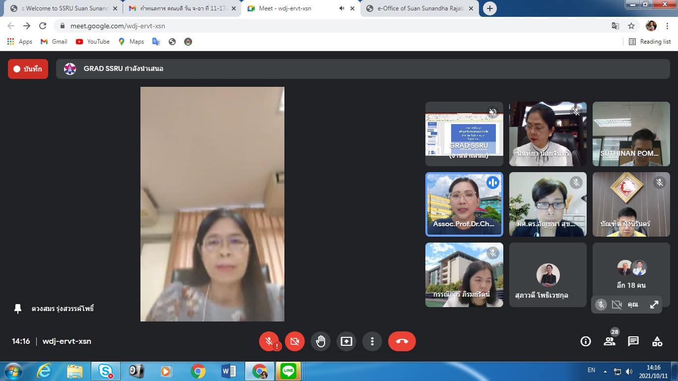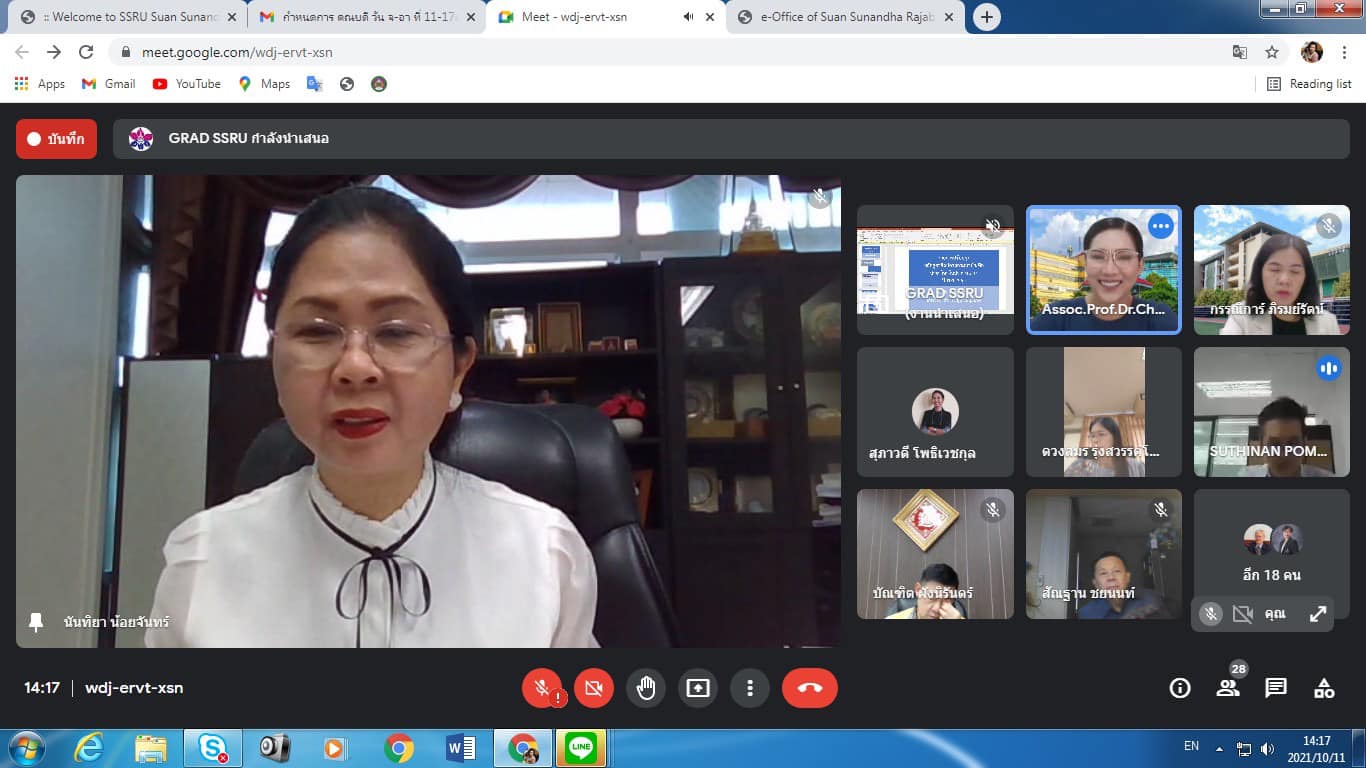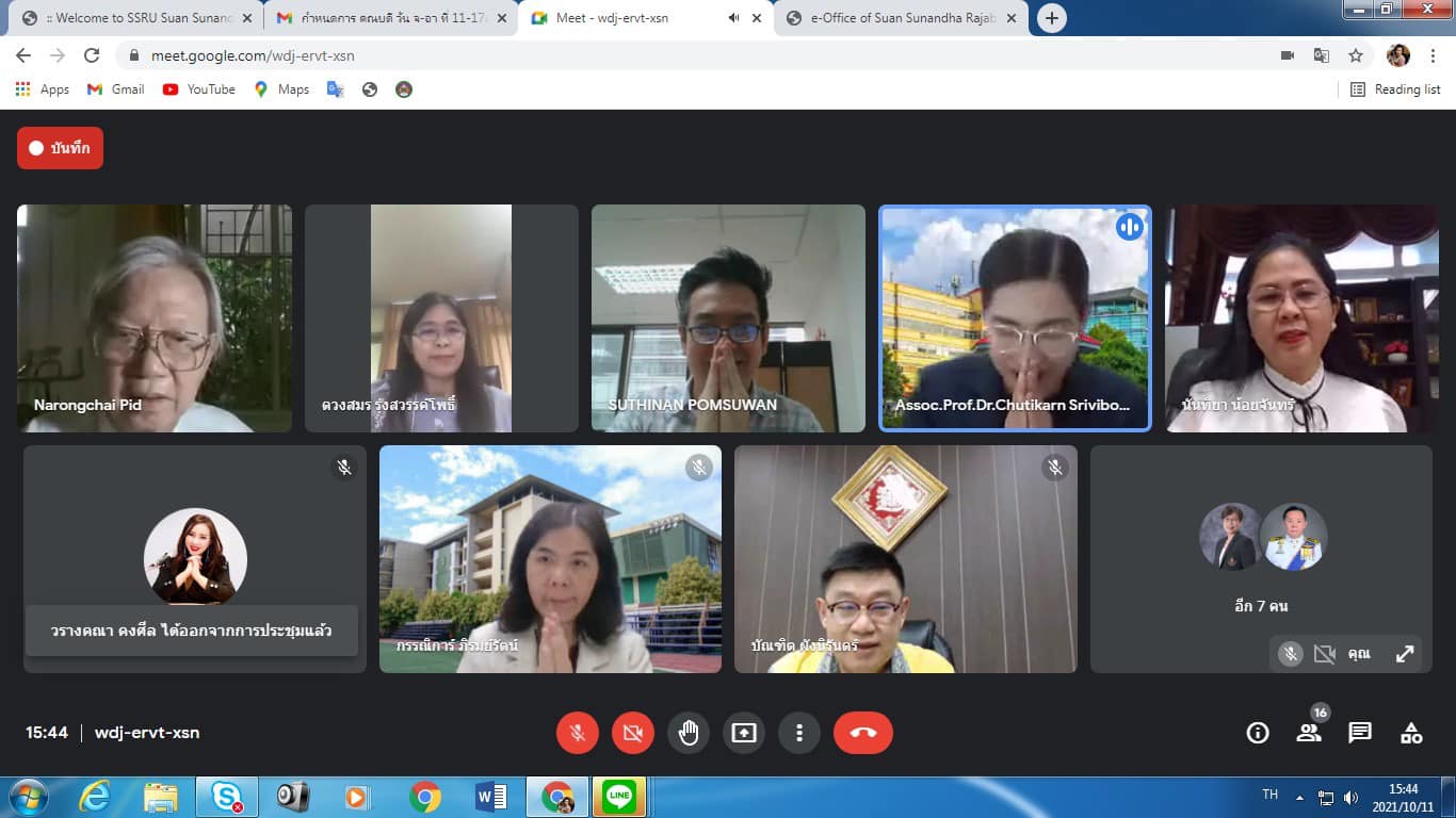 October 11, 2021 Assoc.Prof.Dr.Bundit Pungnirund, Dean of the College of Innovation and Management Attended the Graduate School Board Meeting No. 9/21 with Assoc.Prof.Dr.Chutikarn Sriviboon, President of Suan Sunandha Rajabhat University chair the meeting in online format