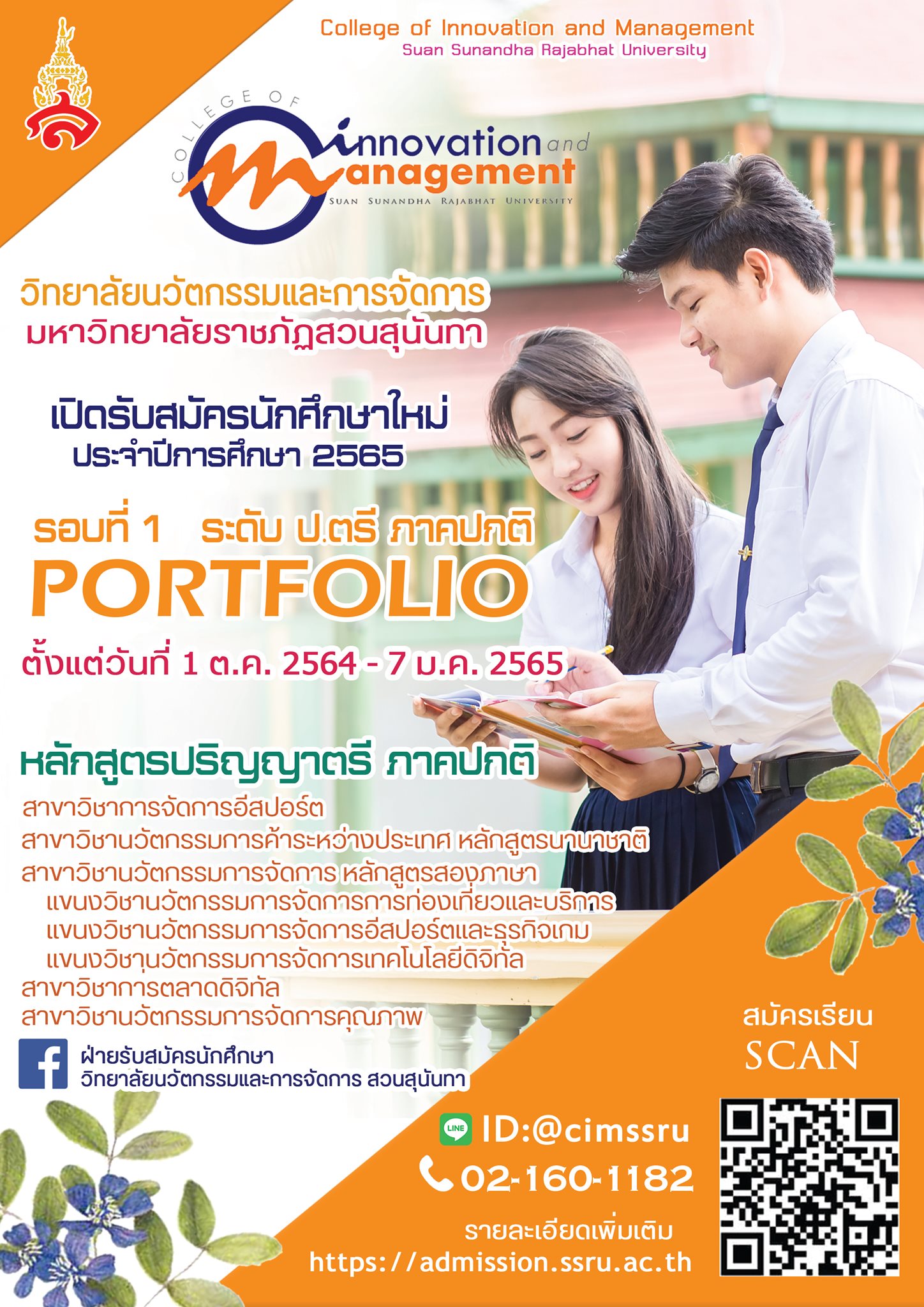 College of Innovation and Management Suan Sunandha Rajabhat University Open to recruit students for regular semester, bachelor's degree Academic Year 2022 (Round 1 Portfolio)