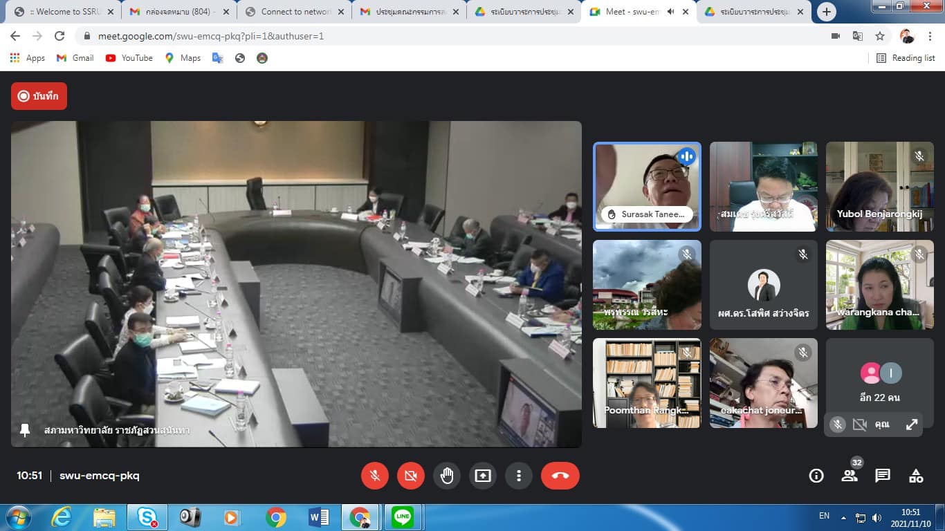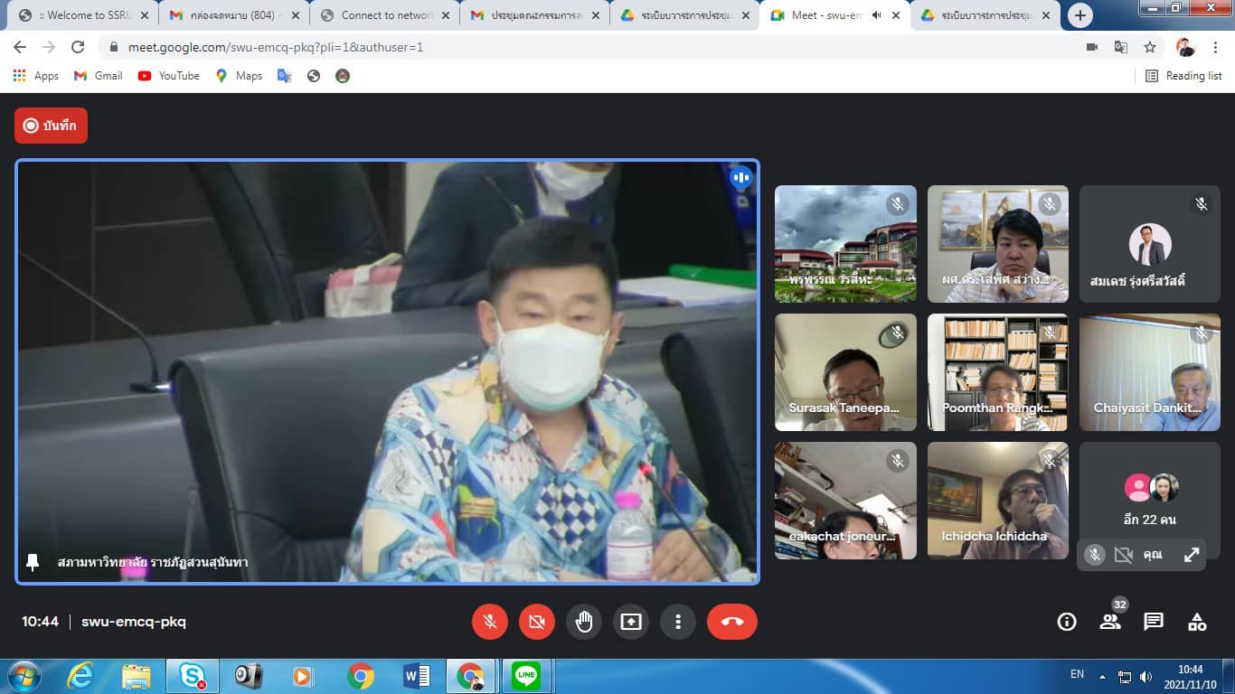 10 Nov 2021 Assoc.Prof.Dr.Bundit Pungnirund, Dean of the College of Innovation and Management Attended the meeting of Suan Sunandha Rajabhat University Academic Council No. 11/2564, chaired by Assoc.Prof.Dr.Chutikarn Sriviboon, President of Suan Sunandha Rajabhat University as the chairman.The meeting was organized through the online system Google meet..