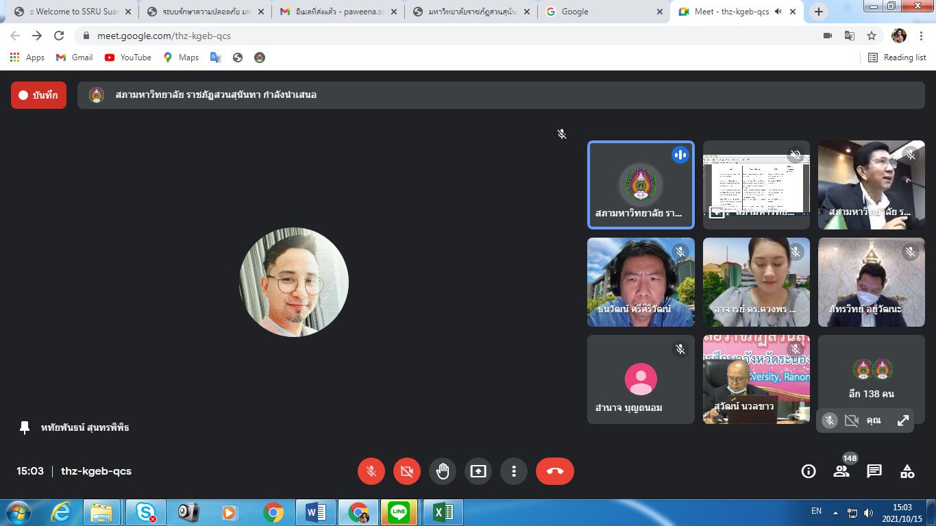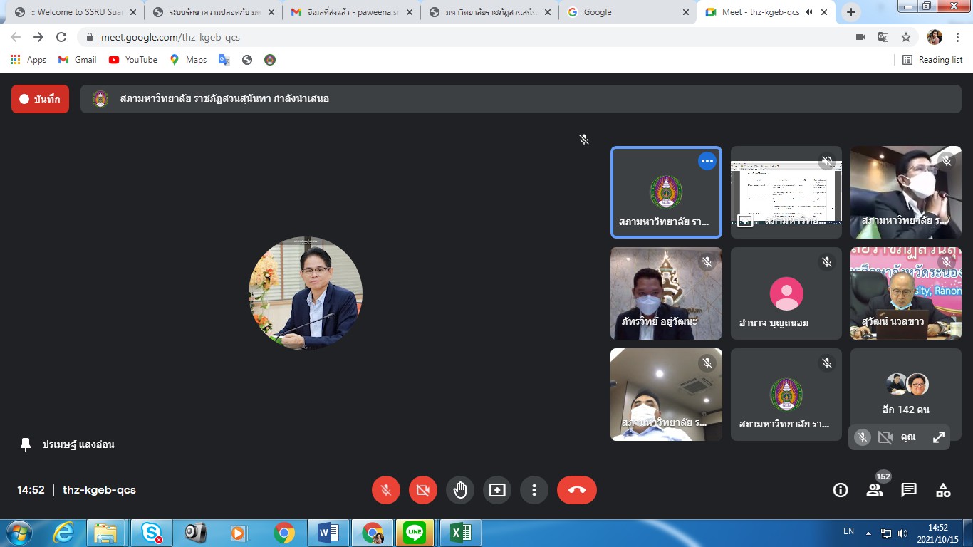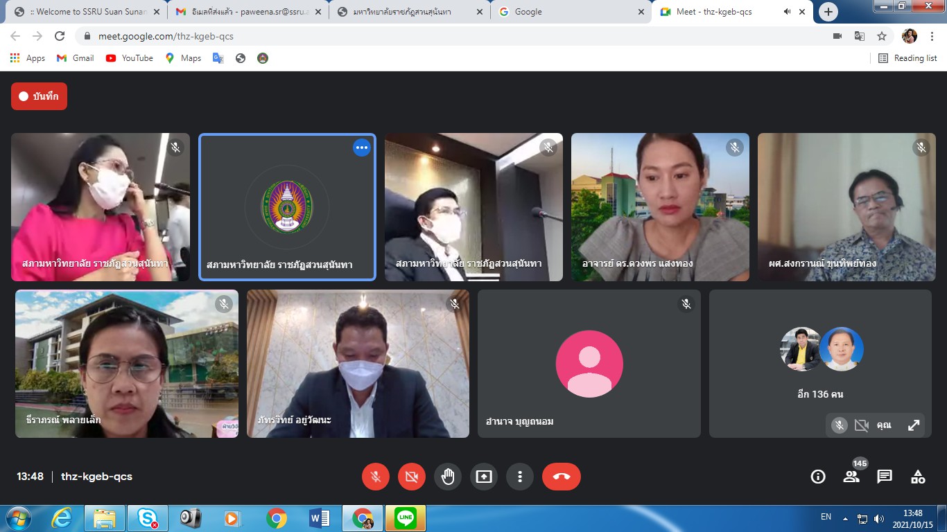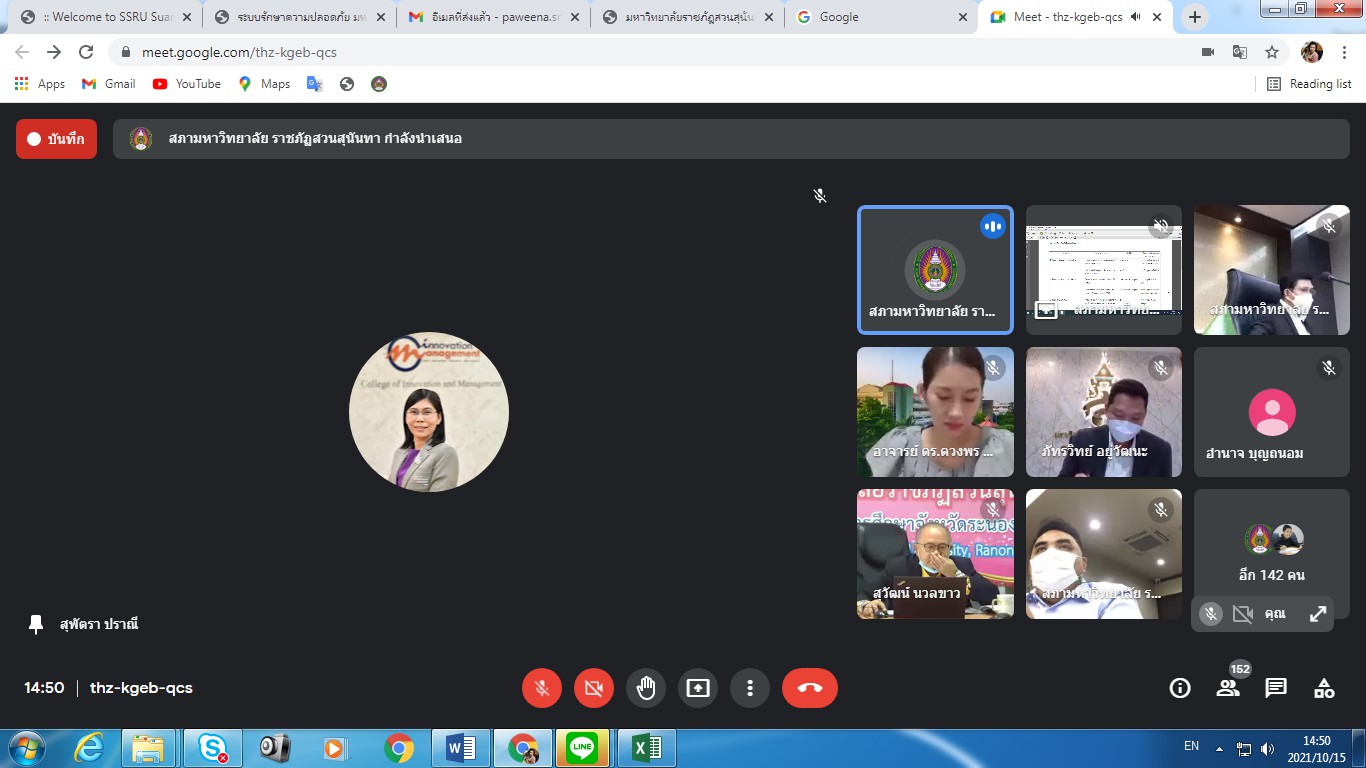 Friday, October 15, 2021 Assoc.Prof.Dr.Bundit Pungnirund, Dean of the College of Innovation and Management along with Deputy Dean join the meeting Crisis-Opportunity Analysis Suan Sunandha Rajabhat University No. 2/2021, with Associate Professor Dr. Rudej Kerdvichai, President of the Suan Sunandha Rajabhat Rajabhat University Council as chairman at the University Council Meeting Room, Building 31, Floor 5 and online meeting via Google Meet.
