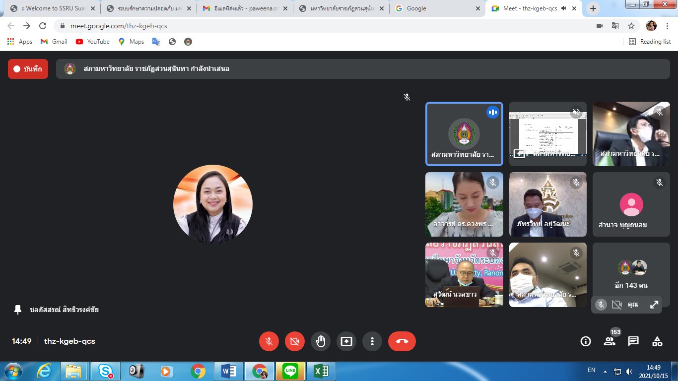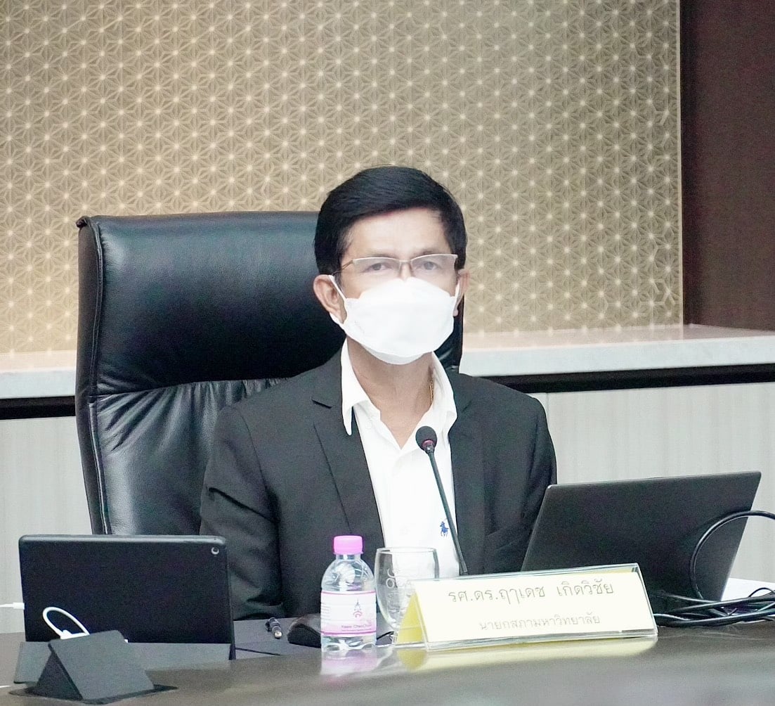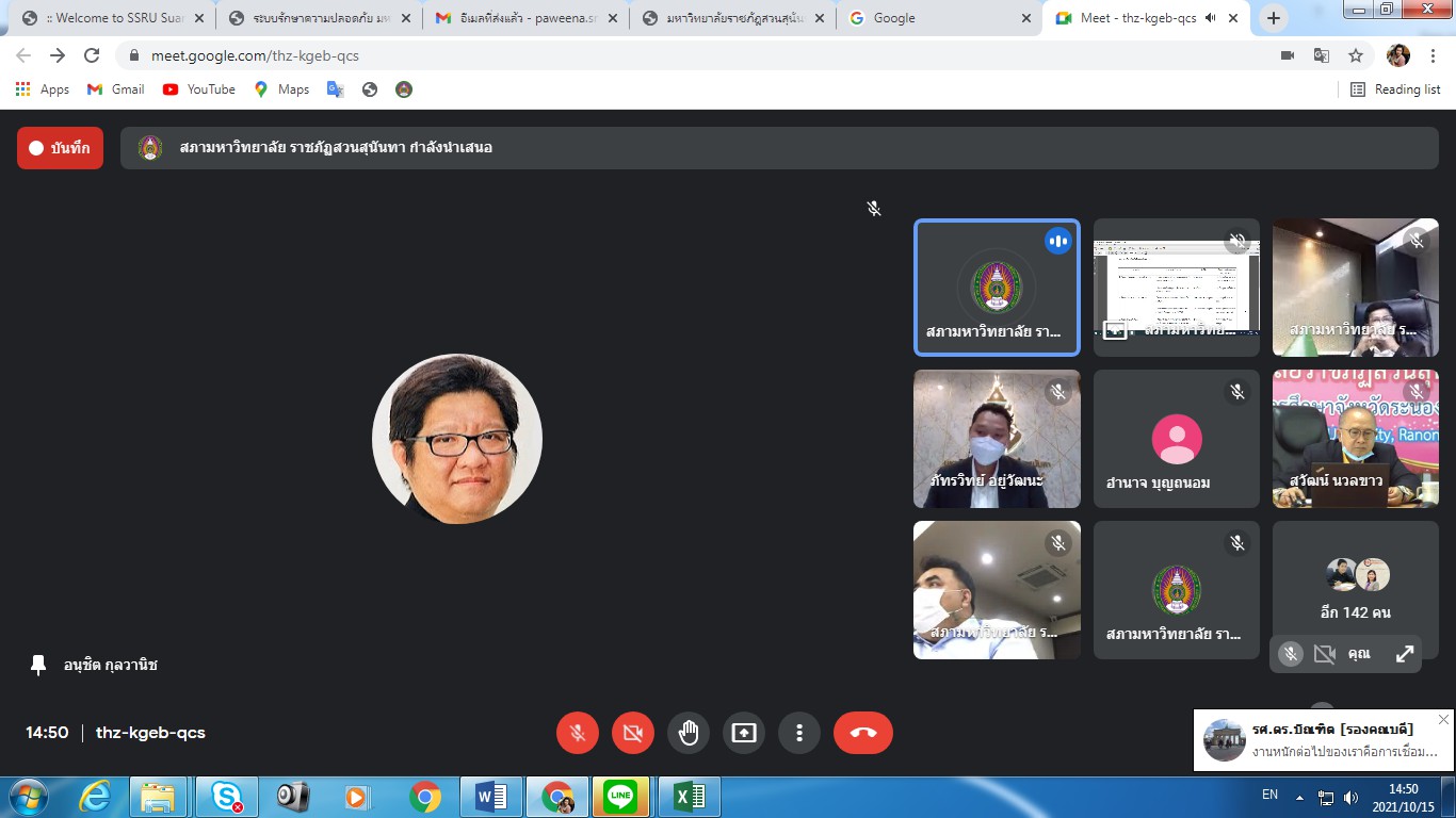 Friday, October 15, 2021 Assoc.Prof.Dr.Bundit Pungnirund, Dean of the College of Innovation and Management along with Deputy Dean join the meeting Crisis-Opportunity Analysis Suan Sunandha Rajabhat University No. 2/2021, with Associate Professor Dr. Rudej Kerdvichai, President of the Suan Sunandha Rajabhat Rajabhat University Council as chairman at the University Council Meeting Room, Building 31, Floor 5 and online meeting via Google Meet.