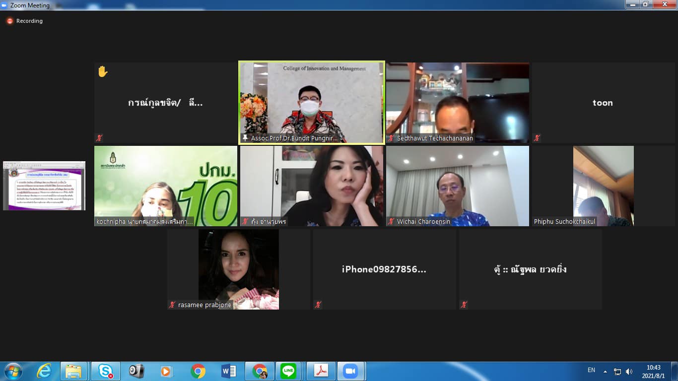 On August 1, 2021, Assoc.Prof.Dr.Bundit Pungnirund Phangnirand, Dean of the College of Innovation and Management Honored to be a teacher In the course of advanced management innovation research methodology to students of the Doctor of Philosophy program Innovation and Management by teaching through online Due to the epidemic situation of the Covid-19 virus