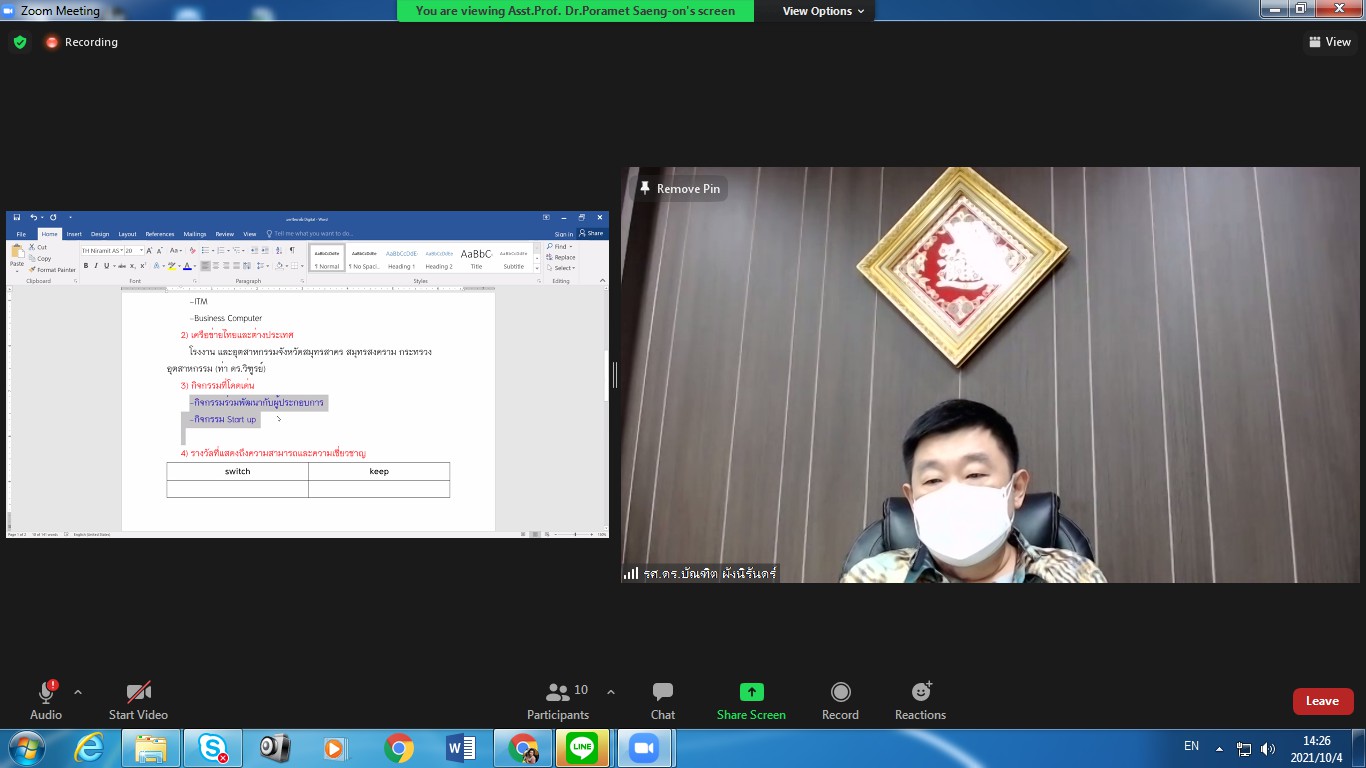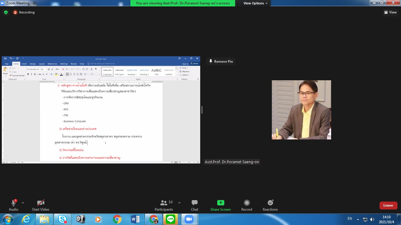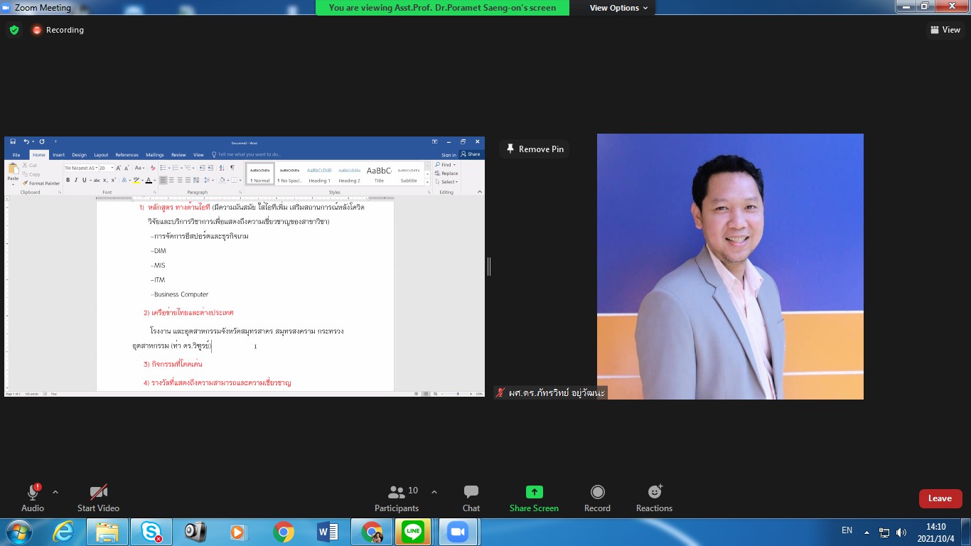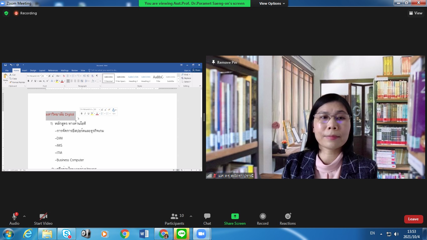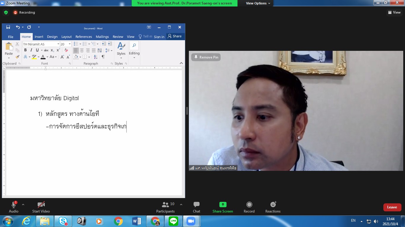 October 4, 2021 College of Innovation and Management Suan Sunandha Rajabhat University Organized a meeting on the direction indicators of the College of Innovation and Management, chaired by Assoc.Prof.Dr.Bundit Pungnirund, Dean of the meeting. This meeting received great cooperation from the management team, the head of the office. attend the meeting in unison