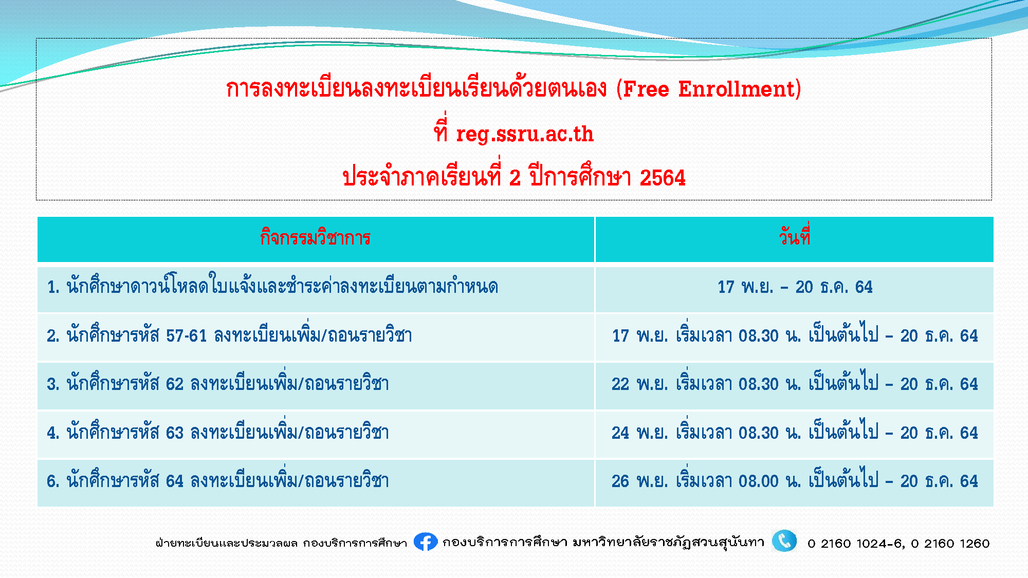 Self-registration (Free Enrollment) for the second semester of the academic year 2021 at reg.ssru.ac.th