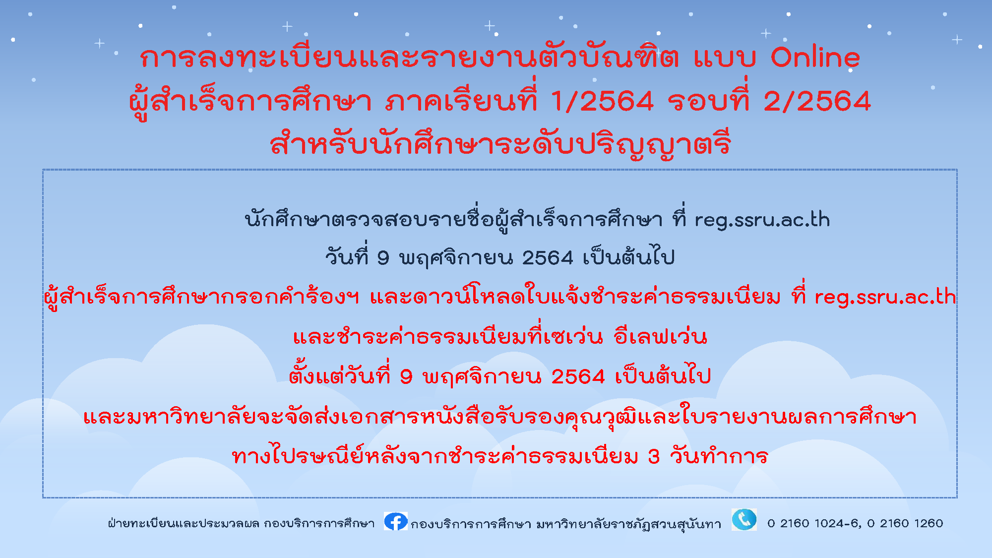 ***Registration and report to graduates to receive important educational documents Academic year 2021, round 2/21 for bachelor's and master's degree students at www.reg.ssru.ac.th ***