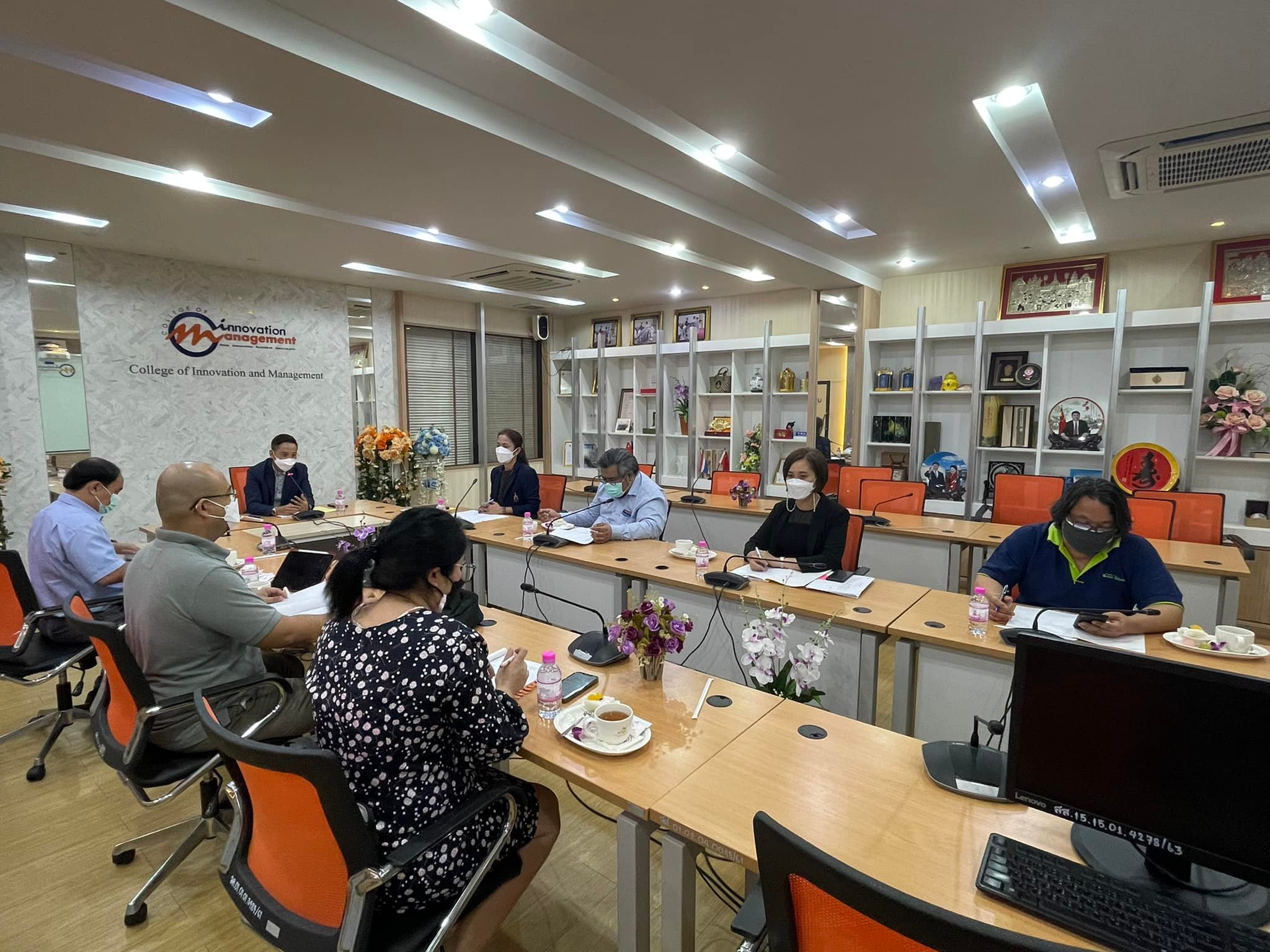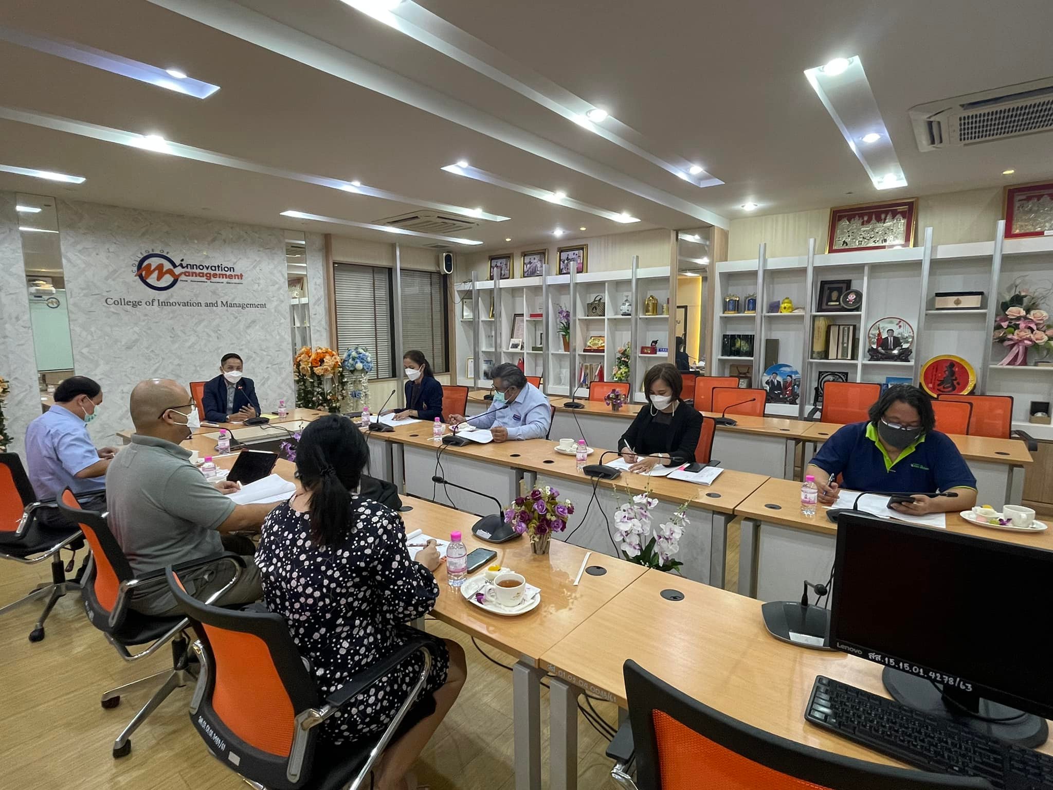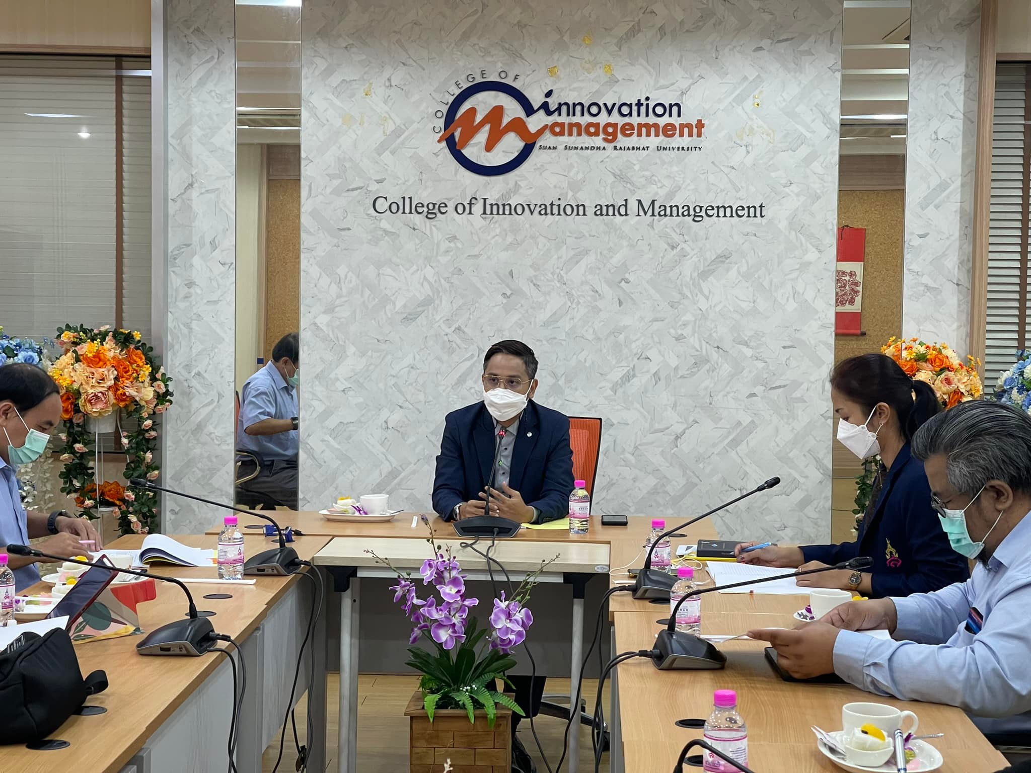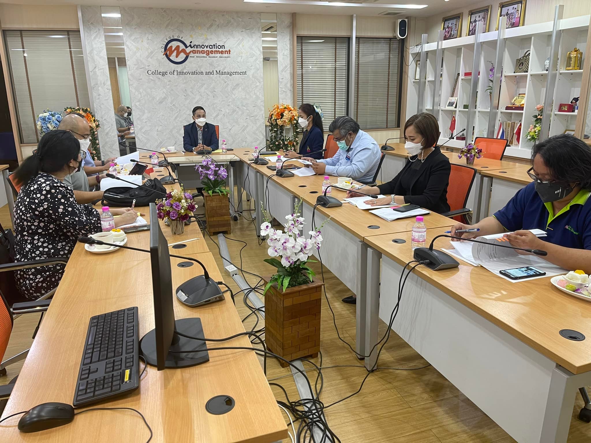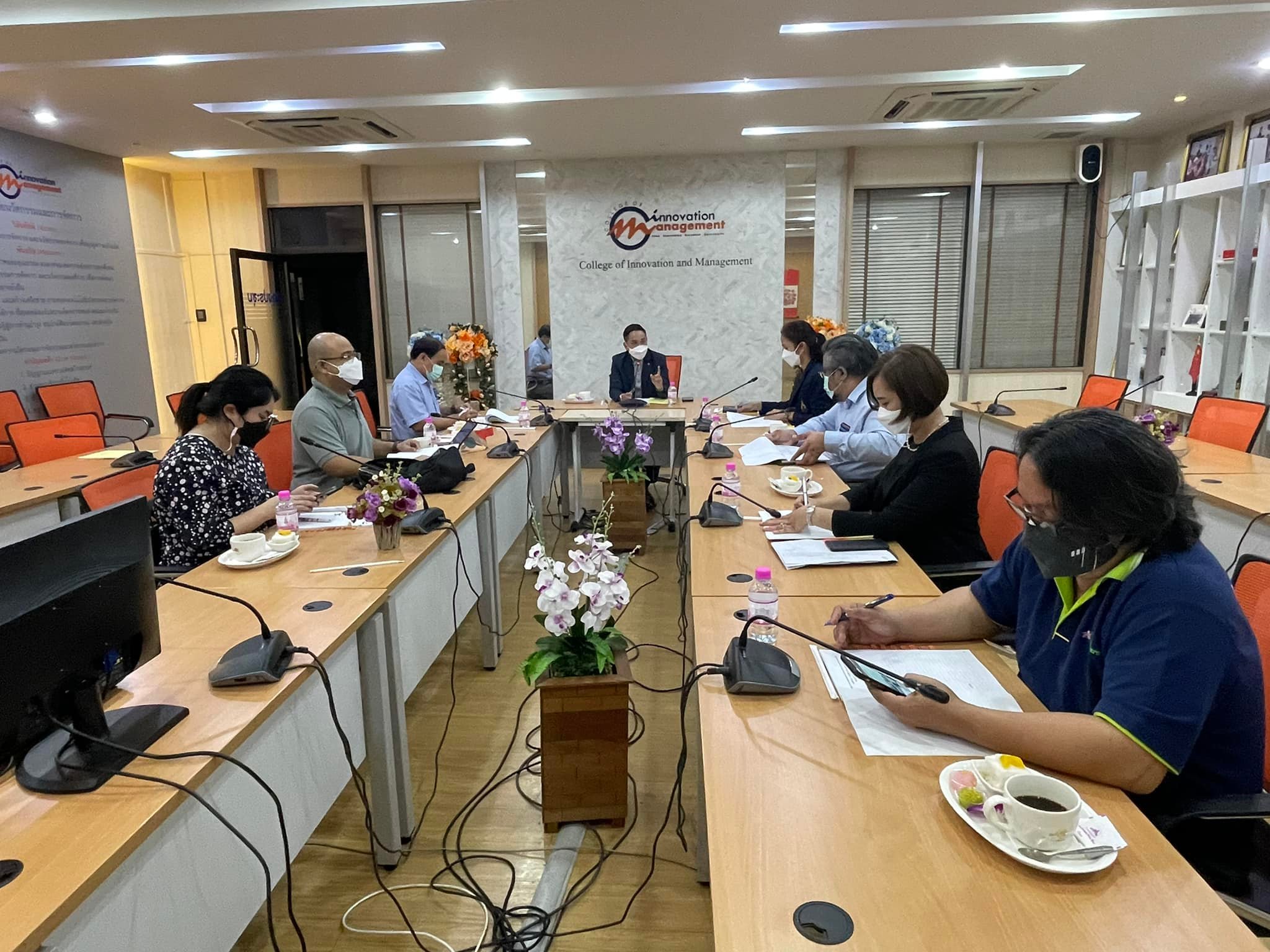 Good Thursday, November 18, 2021, Academic Department, College of Innovation and Management arrange a meeting to approve the results for semester 1/2564, with Asst.Prof.Hathaipun Soonthornpipit, Associate Dean for Academic Affairs Chaired the meeting at the main conference room, 2nd floor, College of Innovation and Management. Mewadee Phithak Building (Building 37)