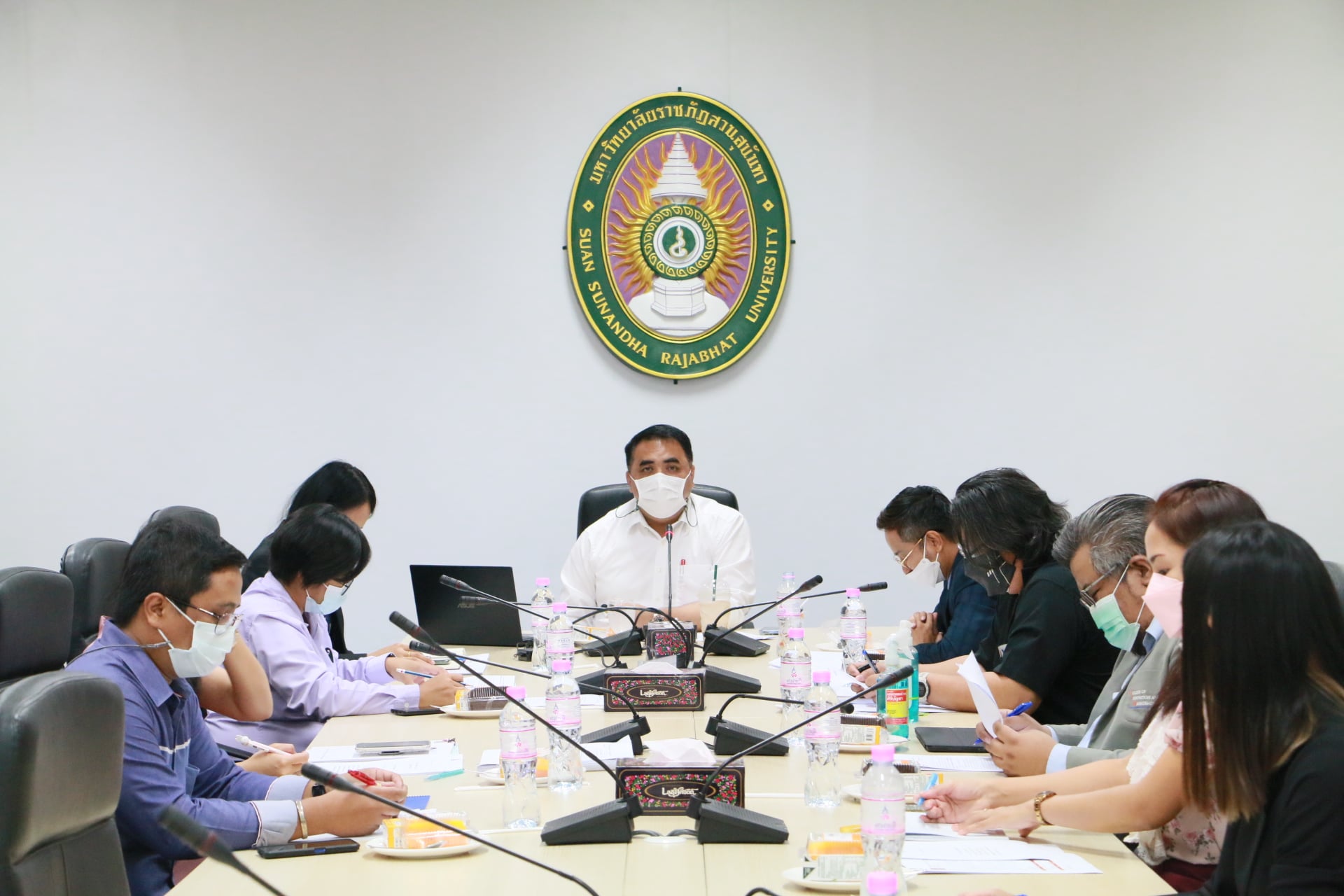 22 November 2021 at 13.00 Asst. Prof. Hathaipan Soonthornpipit, Associate Dean for Academic Affairs College of Innovation and Management along with academic staff Attending the meeting to explain the indicators operating guidelines 1.4.9 Number of courses that are taught in conjunction with agencies or establishments and indicators 1.4.10 Number of instructors and students who manage learning and work in the agency or establishments, with Asst. Prof. Dr. Komsan Somanwat, Vice President of Nakhon Pathom Campus presided over the meeting with personnel Education Service Division Nakhon Pathom Campus Office at Kaew Chao Chom Conference Room, 4th Floor, College of Communication Arts Building Nakhon Pathom Campus