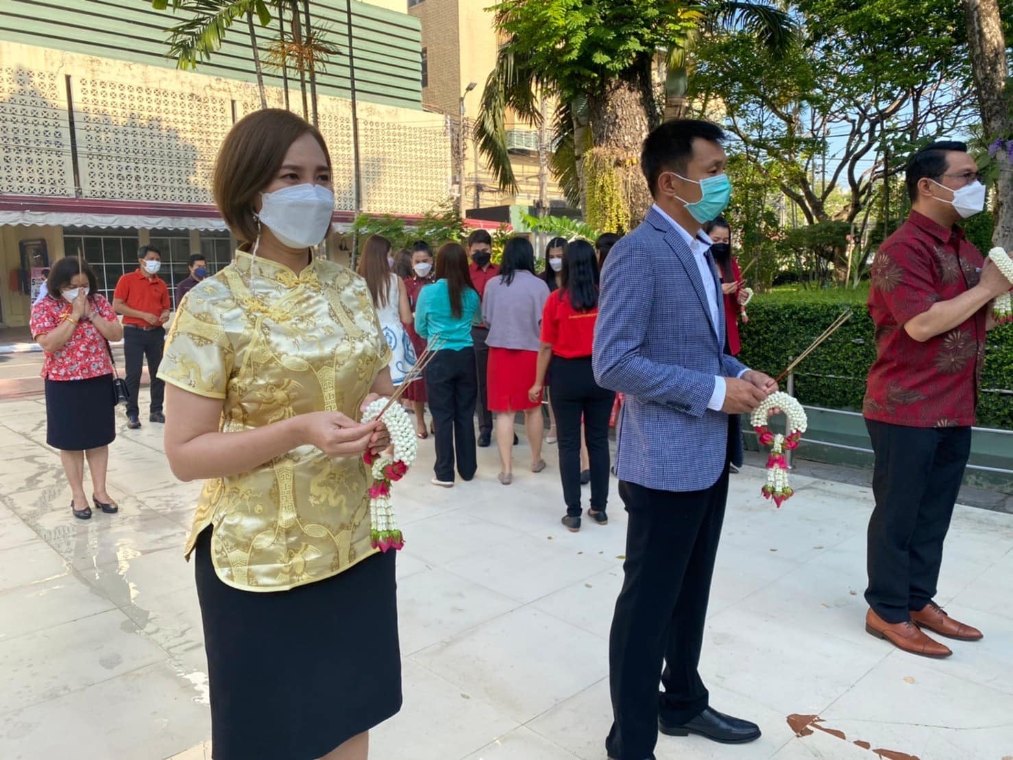 Mis. Naruemon Chomchom, Head of Business Information Management Participate in the annual Chinese New Year's ceremonies for the year 2016, worshiping Buddha images. and pay homage to Queen Sunandha Kumariratana with Associate Professor Dr. Ruedech Kerdwichai, President of Suan Sunandha Rajabhat University Council. presided over the ceremony at the Royal Monument Her Majesty Queen Sunandha Kumariratana Phra Borommaratchathewi Suan Sunandha Rajabhat University