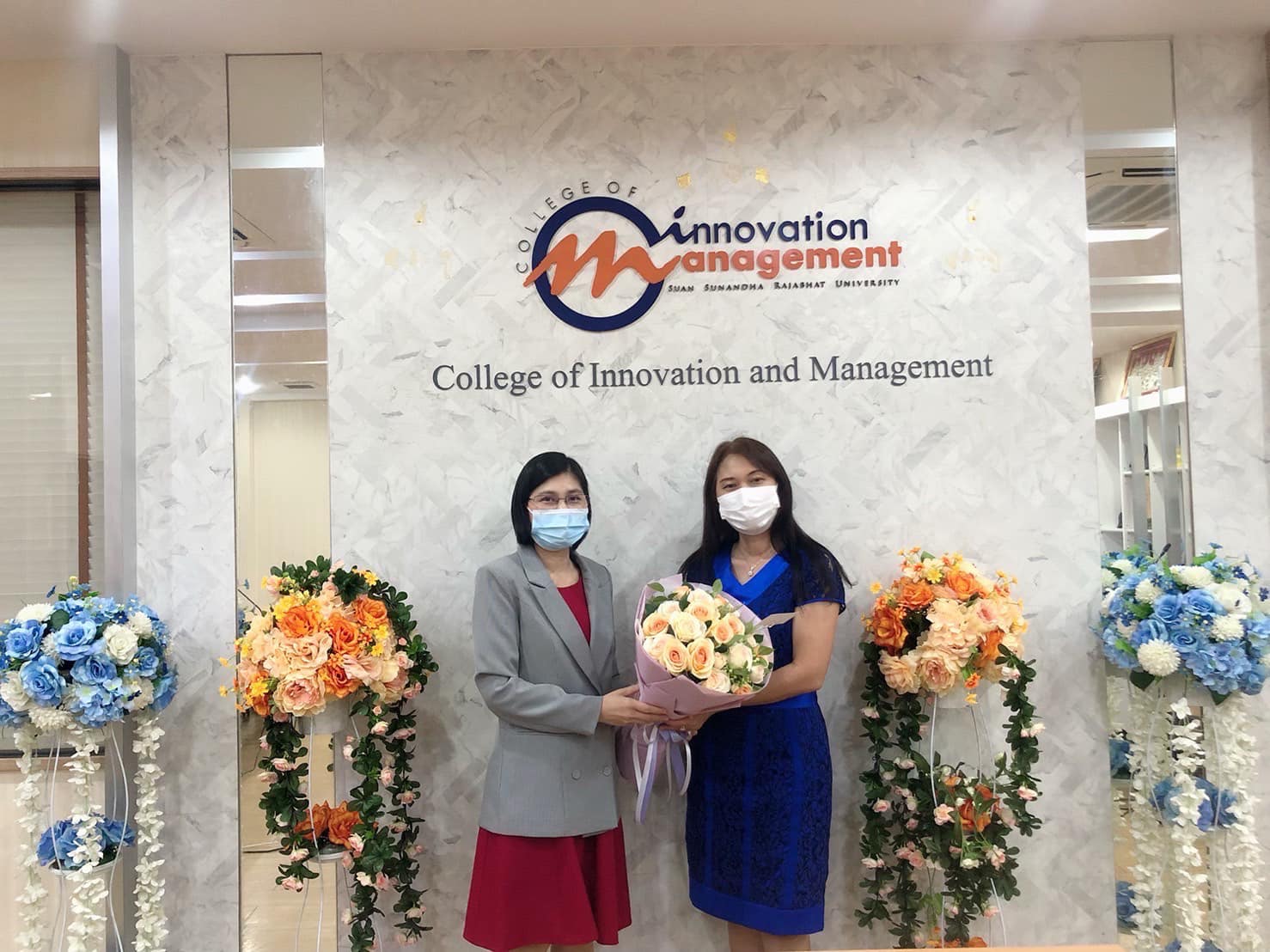 Wednesday 2 January 2022 Asst. Prof. Dr. Supattra Pranee, Associate Dean for Planning and Quality Assurance College of Innovation and Management Congratulations on giving bouquets of flowers to Asst. Prof. Dr. Chayanan Kerdphithak on the occasion of being appointed to the position "Assistant Professor"
