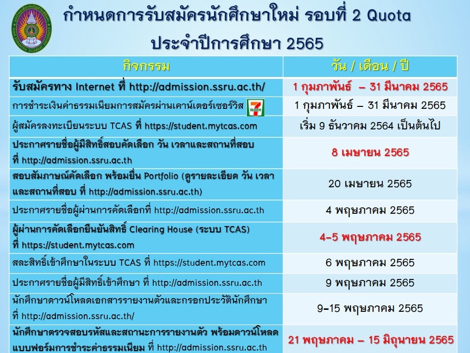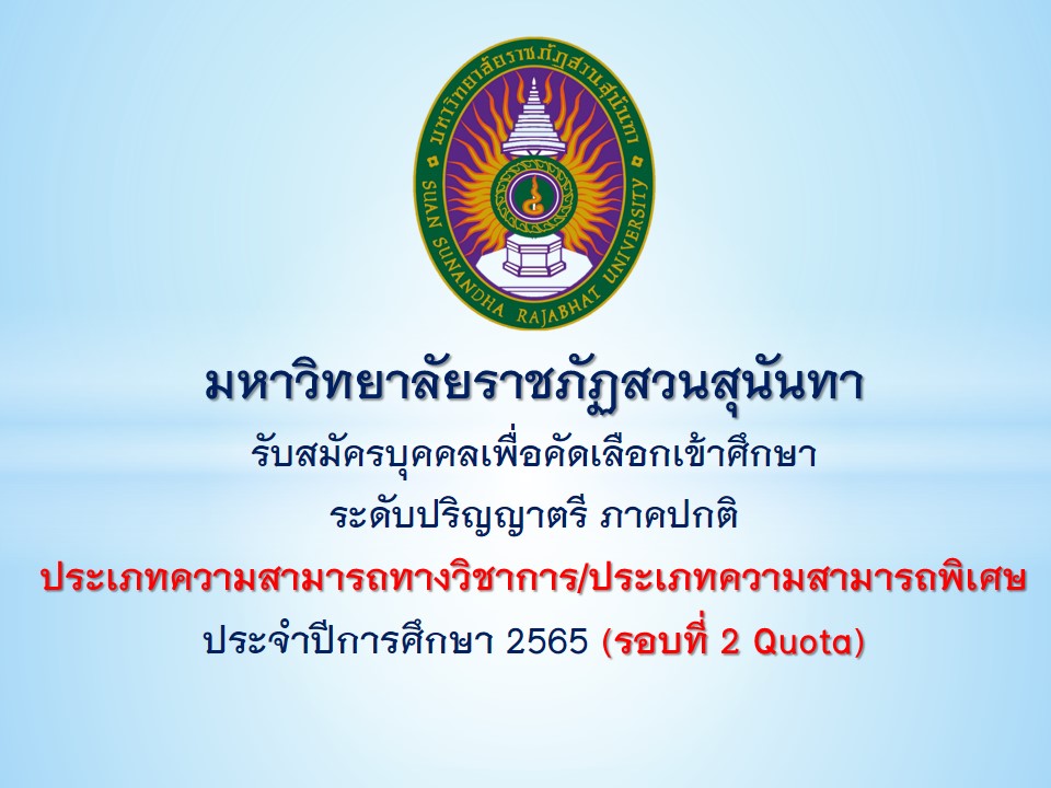 Suan Sunandha Rajabhat University Open to recruit students for regular semester, bachelor's degree Academic Talent Type/ Talent Type Academic Year 2022 (Round 2 Qouta)