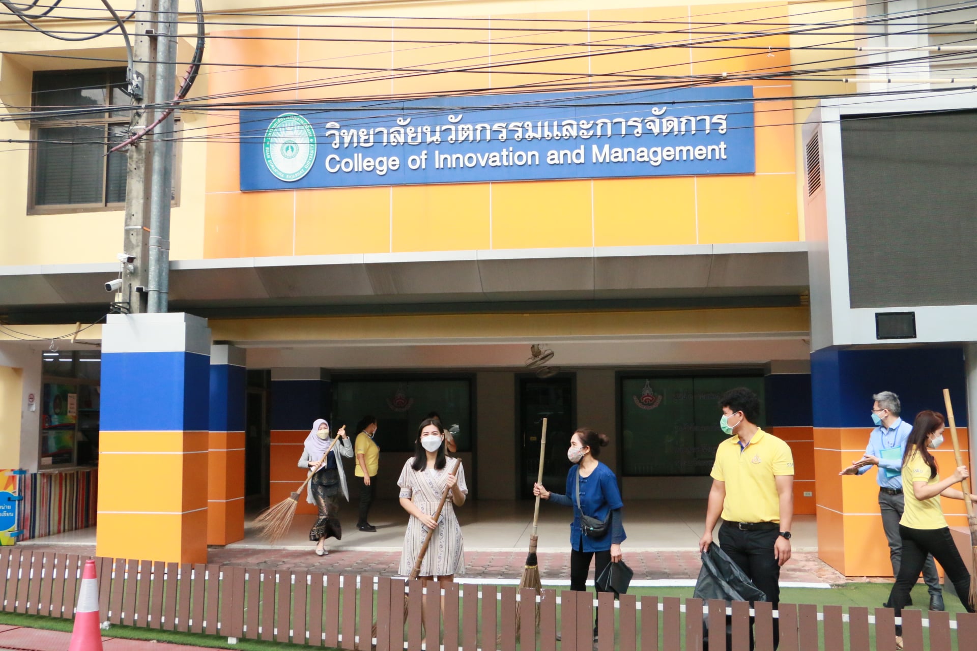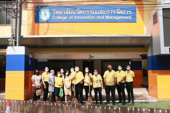Friday, December 3, 2021, College of Innovation and Management, led by Assoc.Prof.Dr.Bundit Pungnirund, Dean of the College of Innovation and Management with teacher head of the office and staff.participate in volunteer activities "Knowing love and unity environmental protection improve the quality of life", which is an activity on the occasion of the birthday of His Majesty the King Maha Bhumibol Adulyadej the Great, National Day and Father's Day, December 5, 2021 at the College of Innovation and Management Activity Ground Mewadee Phithak Building (Building 37)