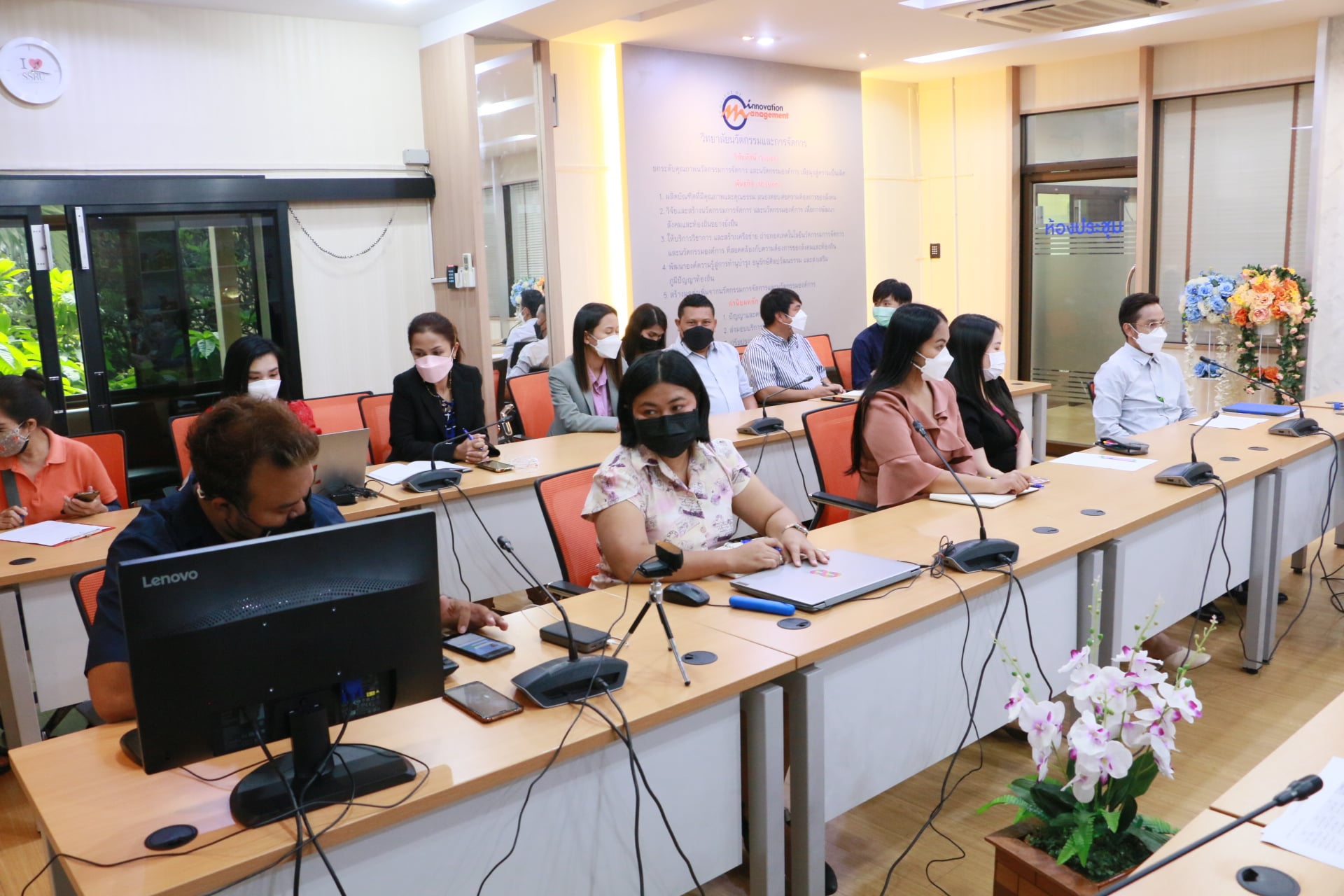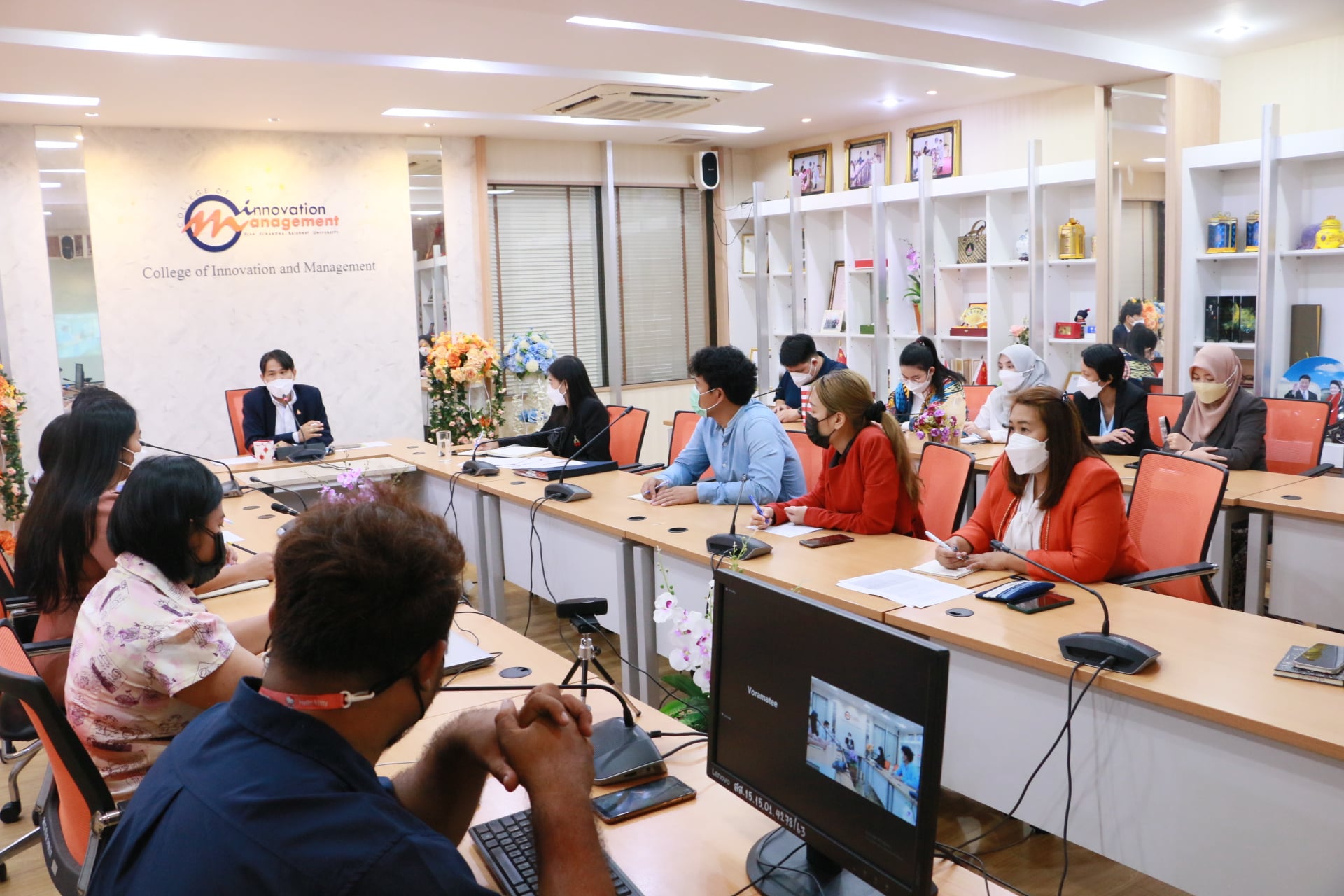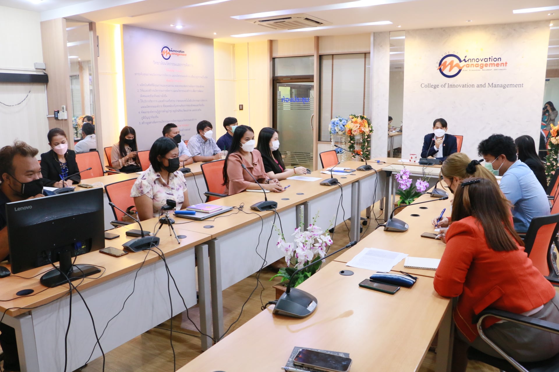 December 9, 2021 College of Innovation and Management Organize a meeting for academic support personnel for semester 2/2564 at the main conference room on the 2nd floor Mewadee Phithak Building (Building 37) with Assistant Professor Dr. Paramet Sang-on, Associate Dean for Administration chair the meeting to deliver the policy into practice and drive the operation of the College to be efficient in all aspects and all parties.