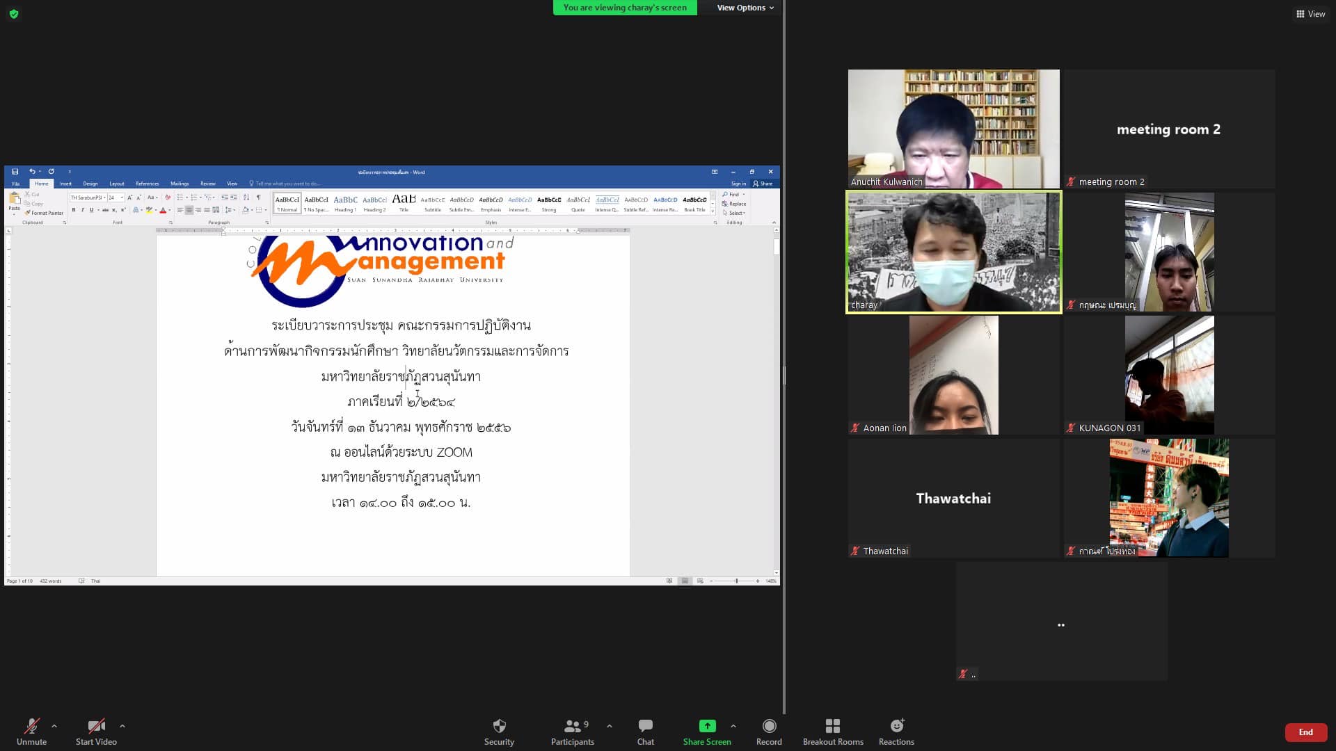 December 13, 2021 Student Affairs Department College of Innovation and Management organizes a meeting of the Performance Committee Student Activities Development College of Innovation and Management Suan Sunandha Rajabhat University 2nd semester 2/2564 with Dr.Anuchit Kullawanich, Deputy Dean for Student Affairs as the chairman via online Zoom Meeting