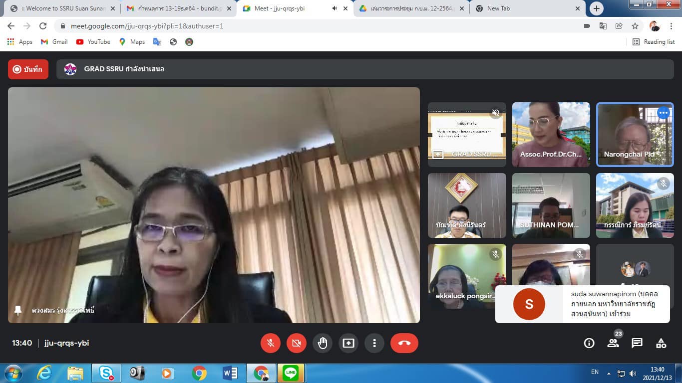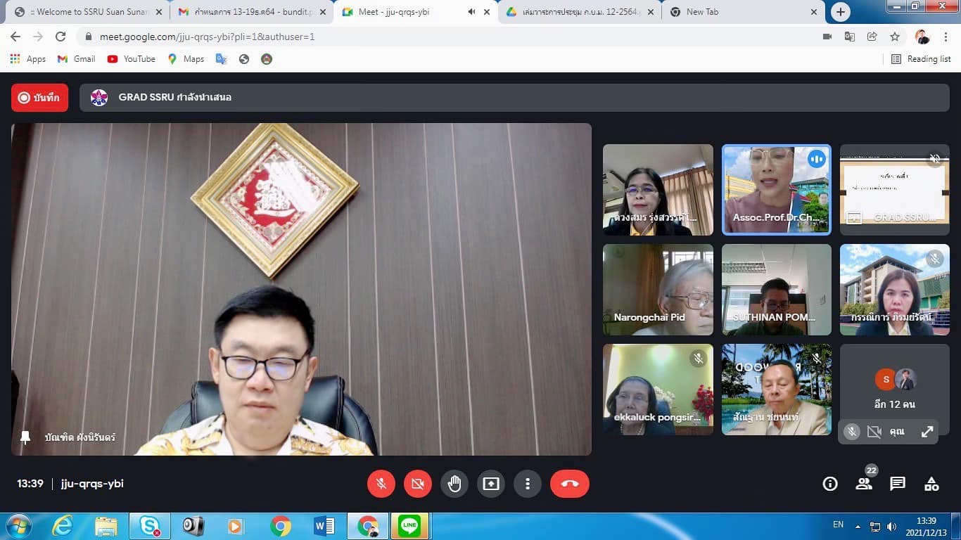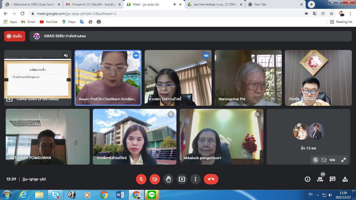 December 13, 2021 Assoc.Prof.Dr.Bundit Pungnirund, Dean of the College of Innovation and Management Attended the Graduate School Board Meeting No. 12/2564 with Assoc.Prof.Dr.Chutikarn Sriviboon, President of Suan Sunandha Rajabhat University chair the meeting in online form