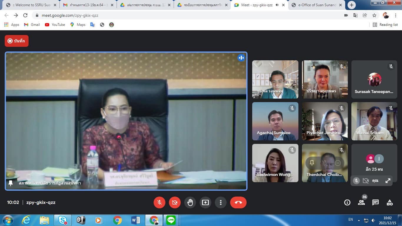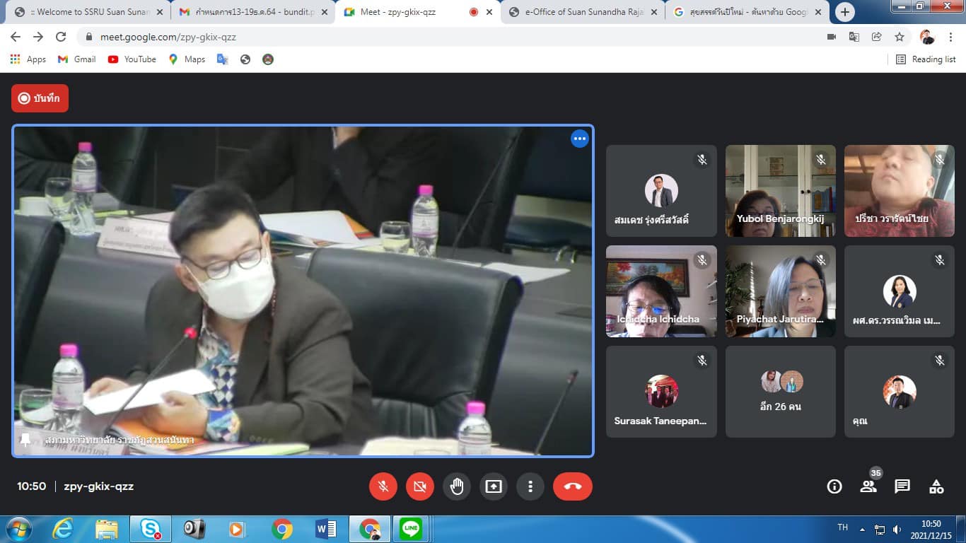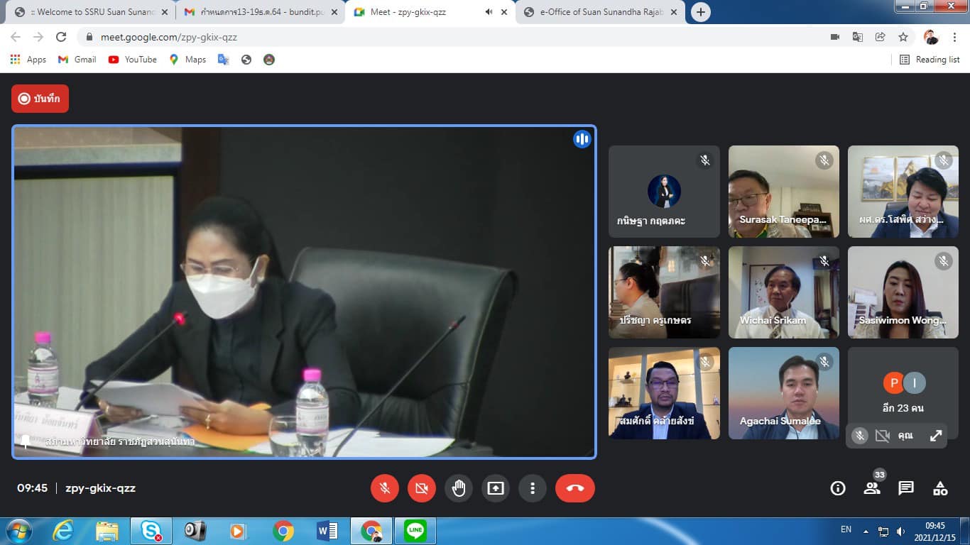 December 15, 2021 Assoc.Prof.Dr.Bundit Pungnirund, Dean of the College of Innovation and Management Attended the Academic Council Meeting of Suan Sunandha Rajabhat University No. 12/2564 with Assoc.Prof.Dr.Chutikarn Sriviboon, President of Suan Sunandha Rajabhat University as the chairman at the University Council Meeting Room, Floor 5, Building 31 and online system Google meet