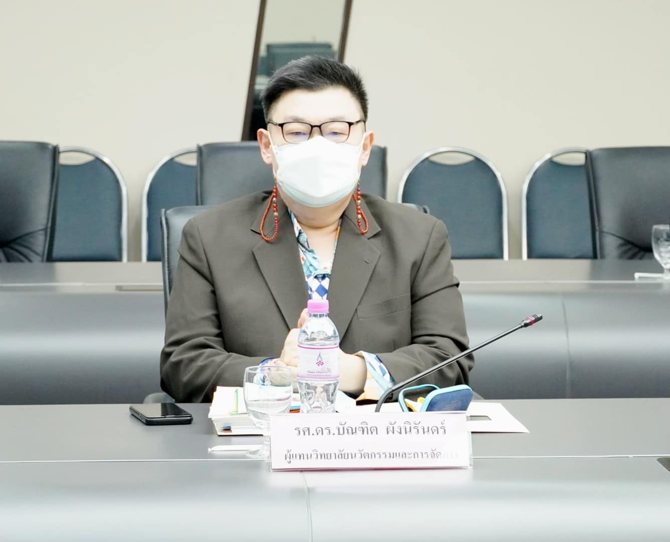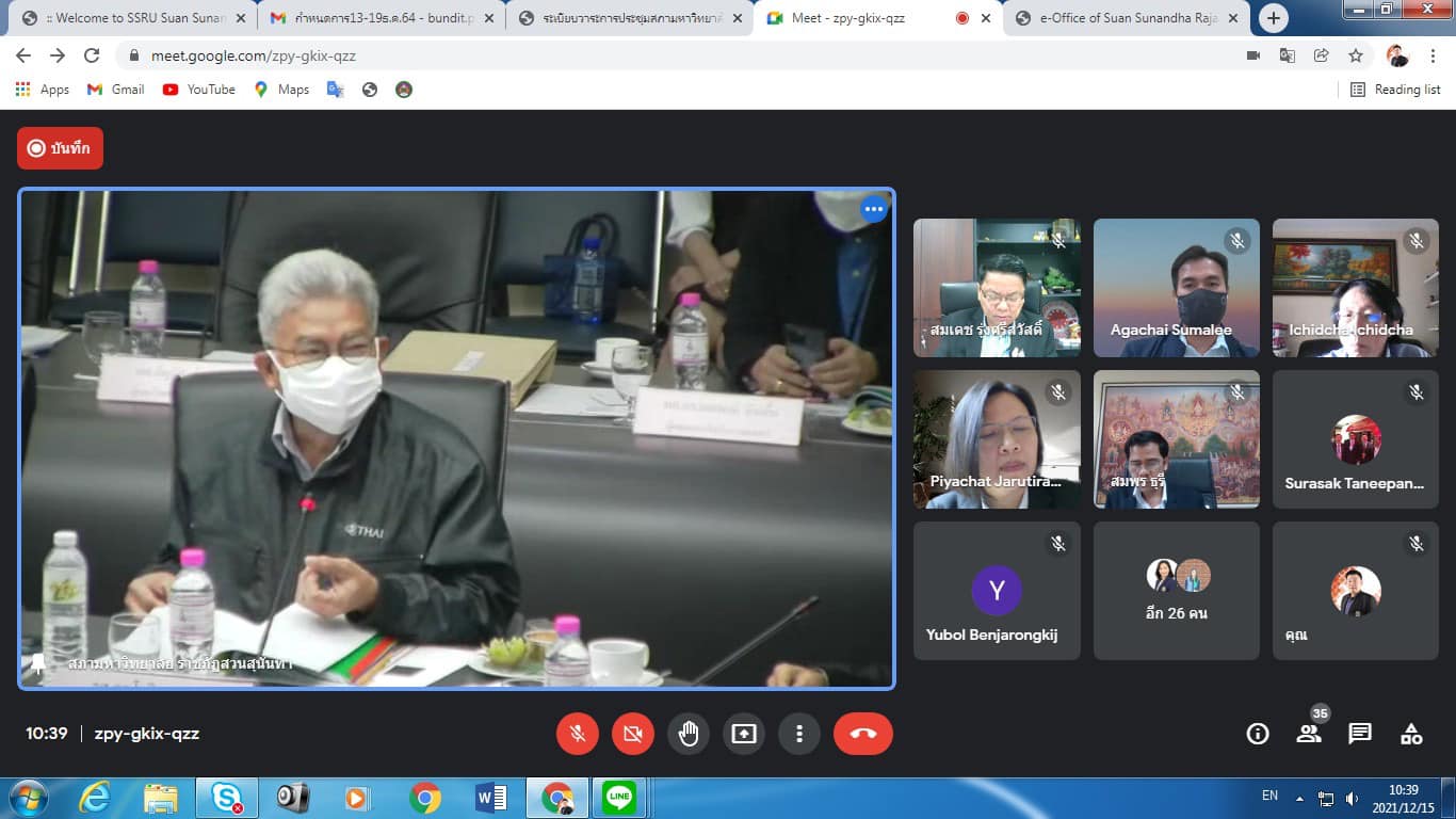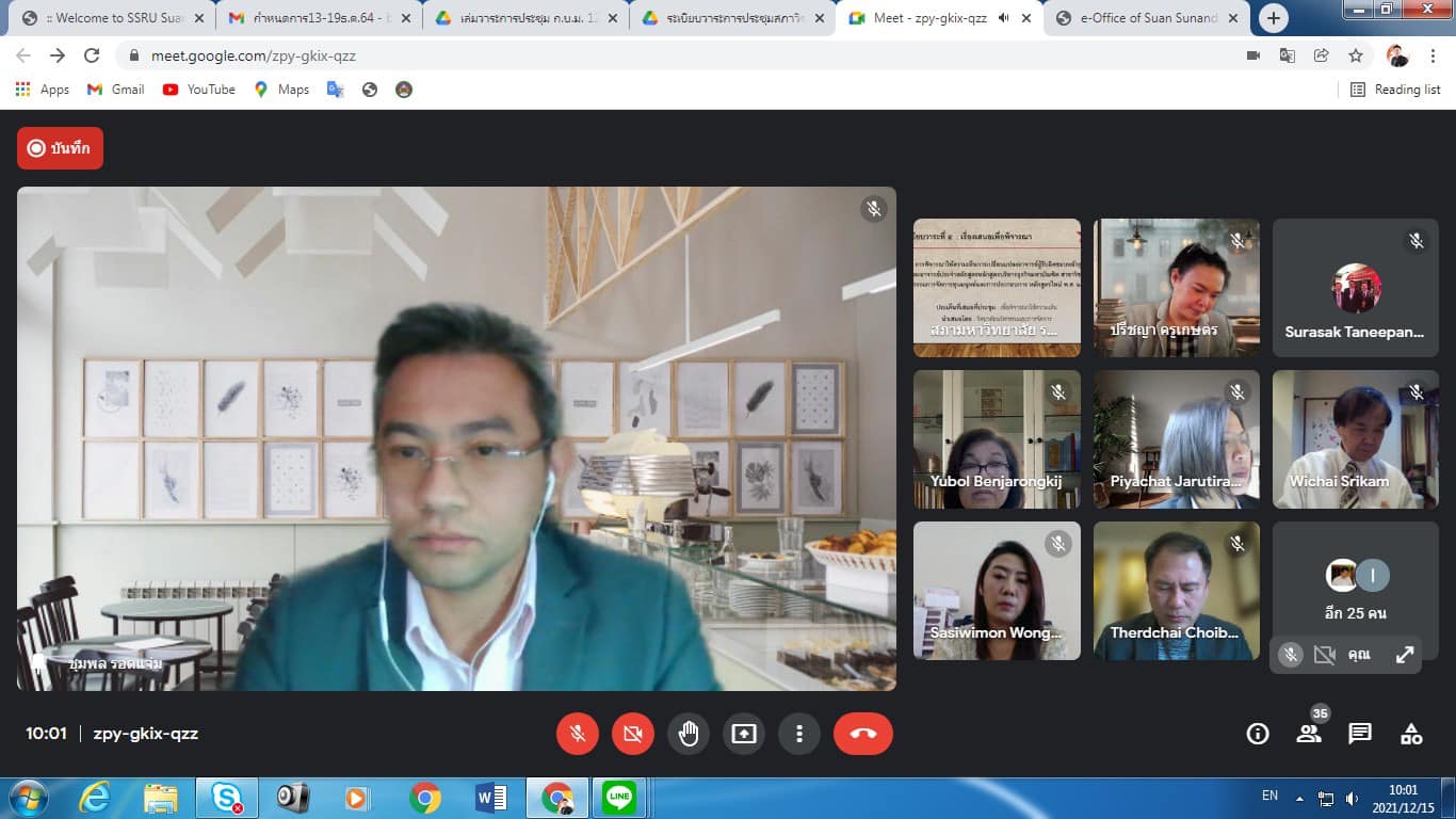 December 15, 2021 Assoc.Prof.Dr.Bundit Pungnirund, Dean of the College of Innovation and Management Attended the Academic Council Meeting of Suan Sunandha Rajabhat University No. 12/2564 with Assoc.Prof.Dr.Chutikarn Sriviboon, President of Suan Sunandha Rajabhat University as the chairman at the University Council Meeting Room, Floor 5, Building 31 and online system Google meet