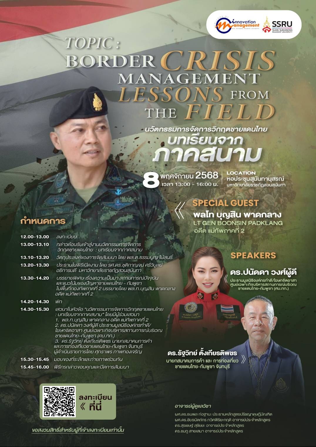 โครงการสัมมนาหลักสูตรปรัชญาดุษฎีบัณฑิต เรื่อง นวัตกรรมการจัดการวิกฤตชายแดนไทย