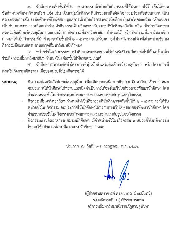 > ปฏิทินกิจกรรมนักศึกษาและเกณฑ์การเข้าร่วมกิจกรรมนักศึกษา ภาคปกติ ประจำปีการศึกษา ๒๕๖๑