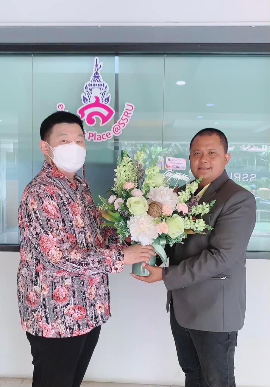 รศ.ดร.บัณฑิต ผังนิรันดร์ คณบดีวิทยาลัยนวัตกรรมและการจัดการ พร้อมด้วย ผศ.ดร.สุพัตรา ปราณี รองคณบดีฝ่ายแผนงานและประกันคุณภาพ ร่วมมอบแจกันดอกไม้แสดงความยินดี กับ นายวิชา ขันคำ บุคลากรฝ่ายอาคารสถานที่และบริการ กองกลาง สำนักงานอธิการบดี นักศึกษาปริญญาเอกหลักสูตรปรัชญาดุษฎีบัณฑิต สาขาวิชานวัตกรรมการจัดการ ในโอกาสที่ได้ผ่านการสอบป้องกันวิทยานิพนธ์ 5 บท ประสบความสำเร็จเป็นที่เรียบร้อย ในนามของหลักสูตรปรัชญาดุษฎีบัณฑิต สาขาวิชานวัตกรรมการจัดการ วิทยาลัยนวัตกรรมและการจัดการ มหาวิทยาลัยราชภัฏสวนสุนันทา จึงขอแสดงความยินดีมา ณ โอกาสนี้